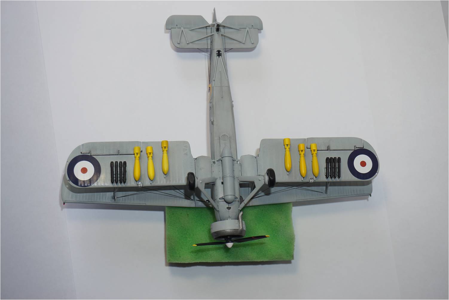 Борис, благодарю за обзор бомб, выходит, что они действительно могли быть жёлтого цвета, а не оливкового (на фотографиях суордфишей я видел и оливковые такого подобного формата). С цветом бомб я немного промахнулся, надо было ещё бледнее сделать, хотя вот сейчас самолёт стоит на полке за стеклом у меня перед глазами - в принципе желтизна не сильно в глаза бросается, но на будущее обязательно учту.