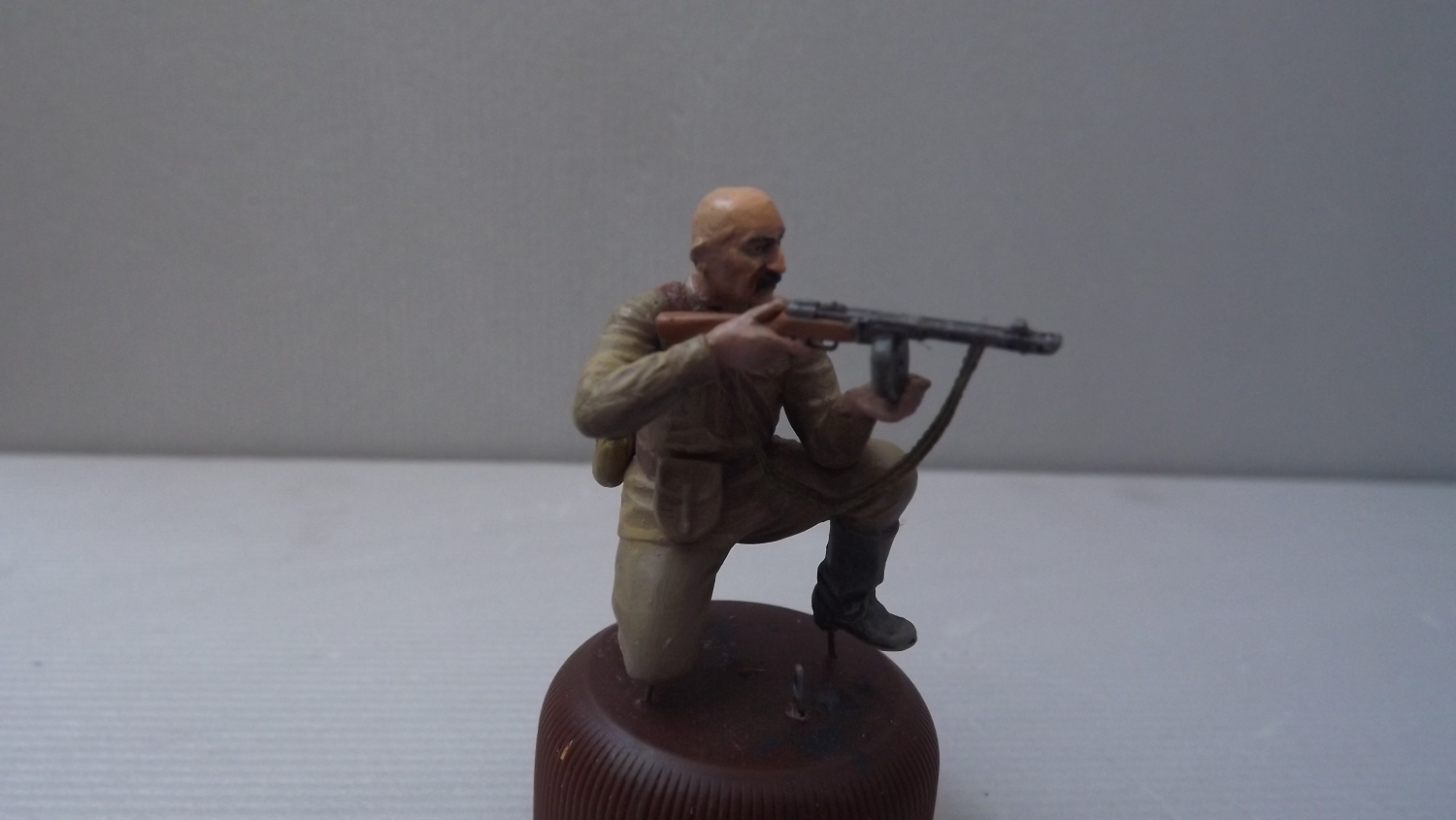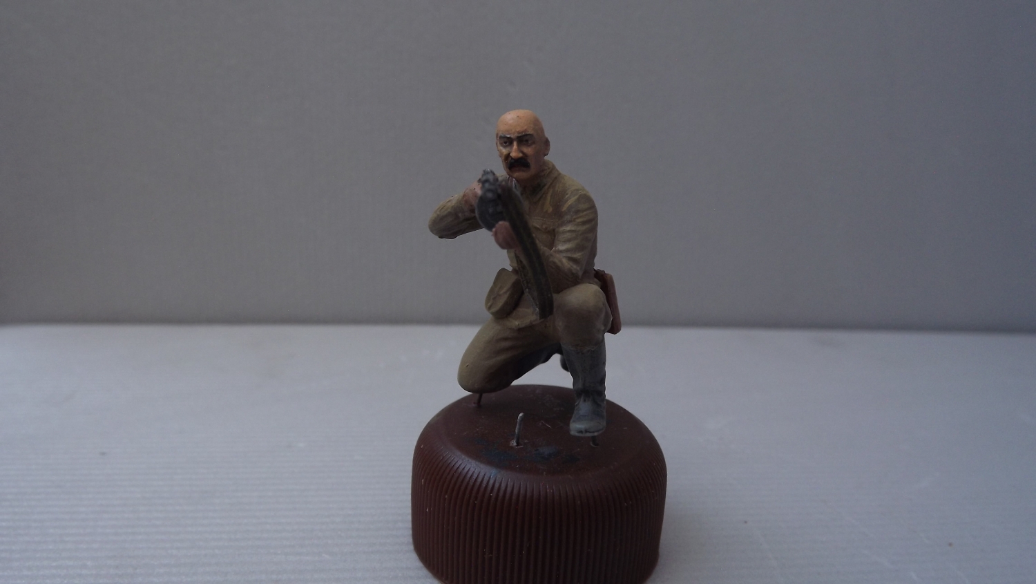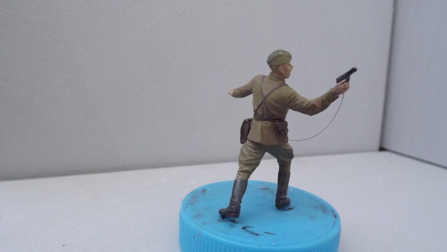Мастер Бокс, заменена штатная рука с наганом на руку с ТТ и голова (что б в пилотке), как раз для большего соответствия фото (портупею переделывать не стал)