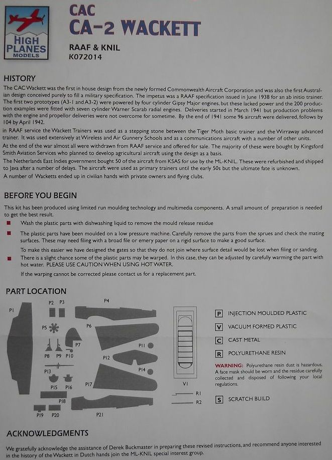 Модель интересная. Главные плюсы -информативная инструкция с фото и схемами прототипов ( черта , характерная для австралийских и новозеландских изготовителей) и интересный пластик- твердый и вязкий одновременно , шикарно обрабатывается . И главный сюрприз - когда убрать дефекты литья модель будет выглядеть немногим хуже тамигавы. Проверено на нескольких моделях этой фирмы.