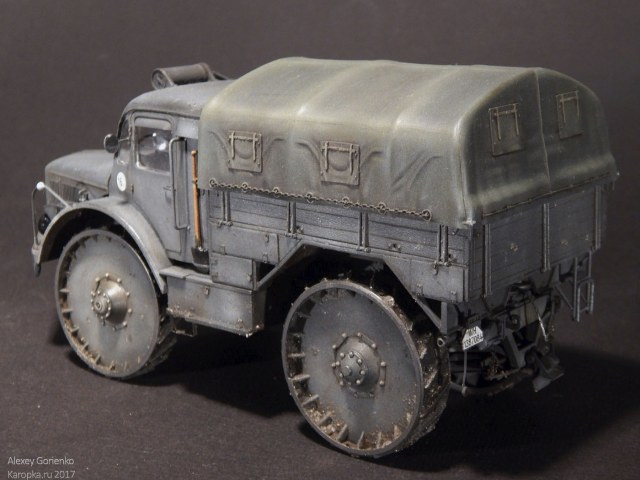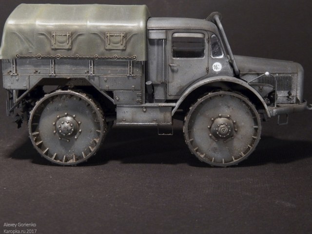 Да, косяк с лебедкой тоже заметил, но не стал ничего делать, потому что, несмотря на интересную детализацию, при финальной сборке под кузовом все равно ничего не видно. В общем, так же как и со спальником вышло бы.