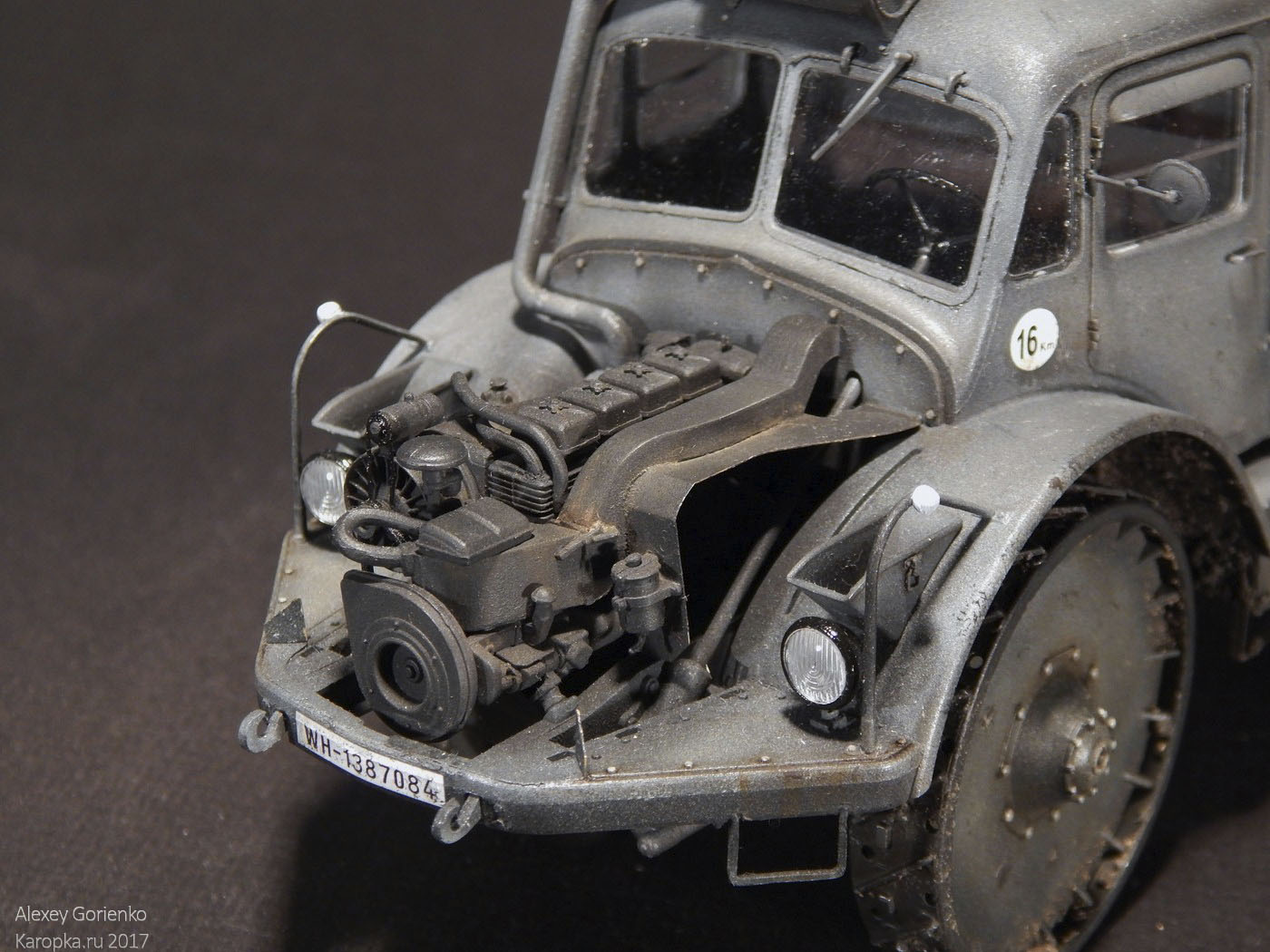 В наборе дается неплохая деталировка двигателя, было жалко прятать ее под капотом, поэтому я сделал капот съемным. Двигатель определенно можно было еще доработать всякими мелочами, но меня остановило две вещи: 1) я в принципе не знаю его устройство и не понимаю, что куда должно идти, и какого оно должно быть цвета 2) у меня в доступе было всего 2 фотографии, по которым, опять же, сложно было понять какие дополнительные доделки требуются.
