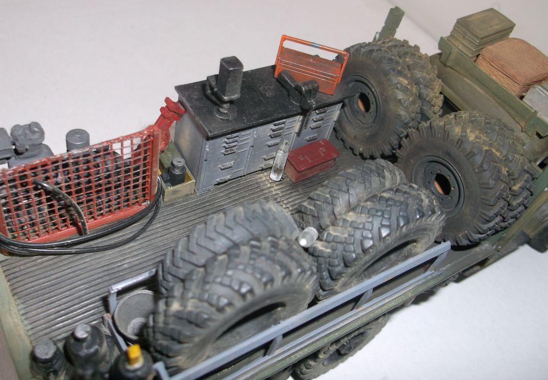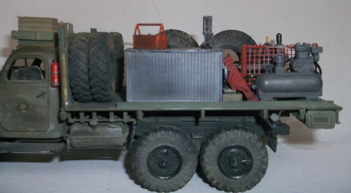Наконец то дошли руки до русского исследовательского каравана. Первым был КрАЗ-250 для окончательной зачистки трассы. Сейчас выставляю мобильную шиномонтажную мастерскую на ЗиЛке. Будка взята из ICMовского набора Рено-санитарный и немного укорочена. Верстак из кунга 131 ЗиЛа ICM. Компрессор от Италери. Баллоны от Академи. Шины из разных наборов техники (Урал, ГАЗ-66, ЗиЛ-131). Остальное самодел. Покраска кистью. Акрил Тамия, Звезда. Пигменты ZIP maket.