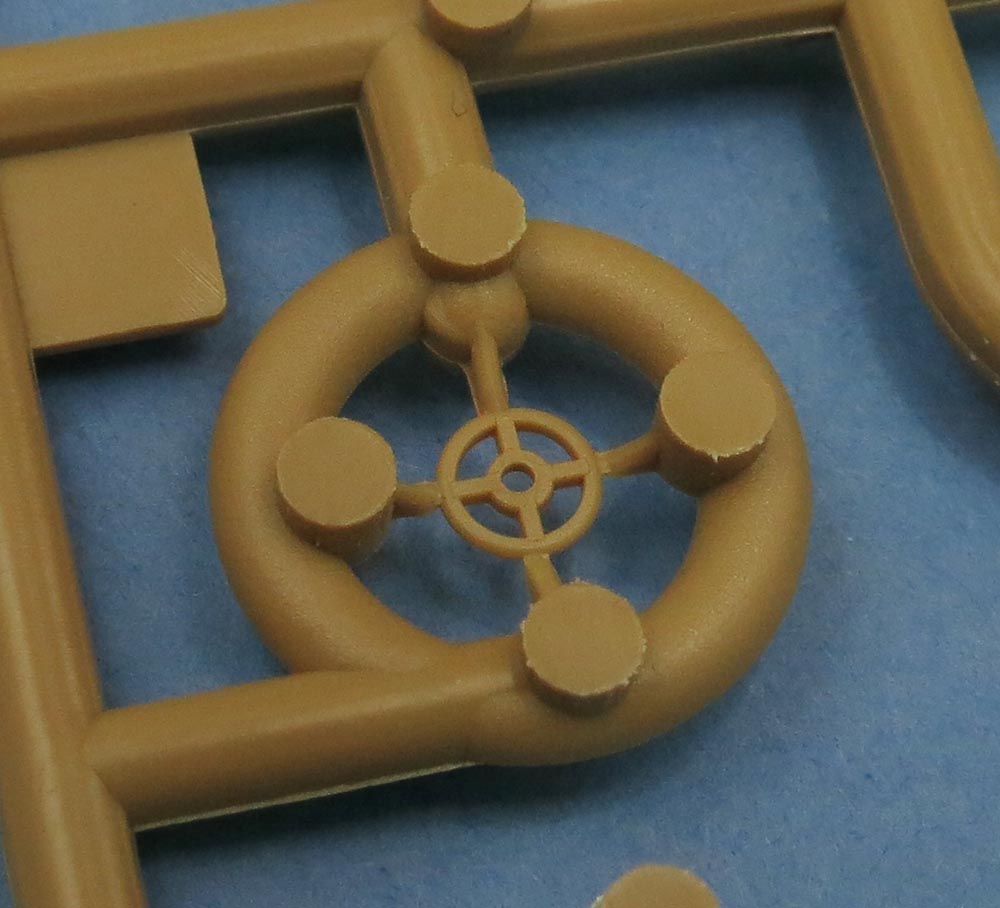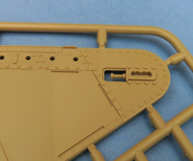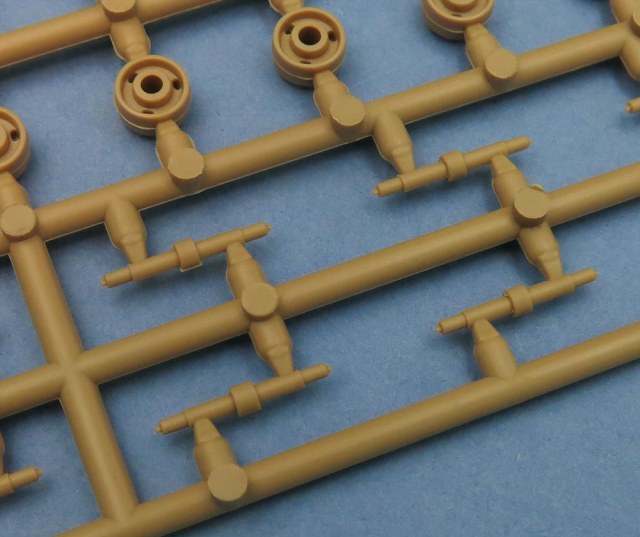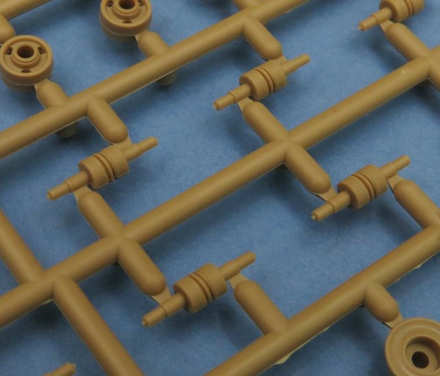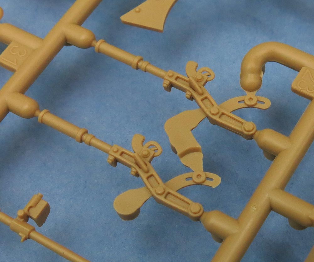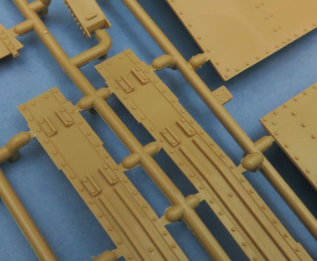 Последний большой литник - крупные детали каких-то "рельс" и выхлопа. В выхлопе дырка наличествует. Как и заклепки. И увы стык пресс-форм тоже есть чутка.