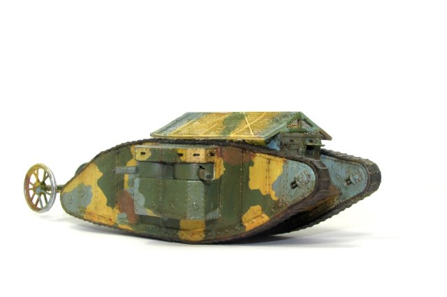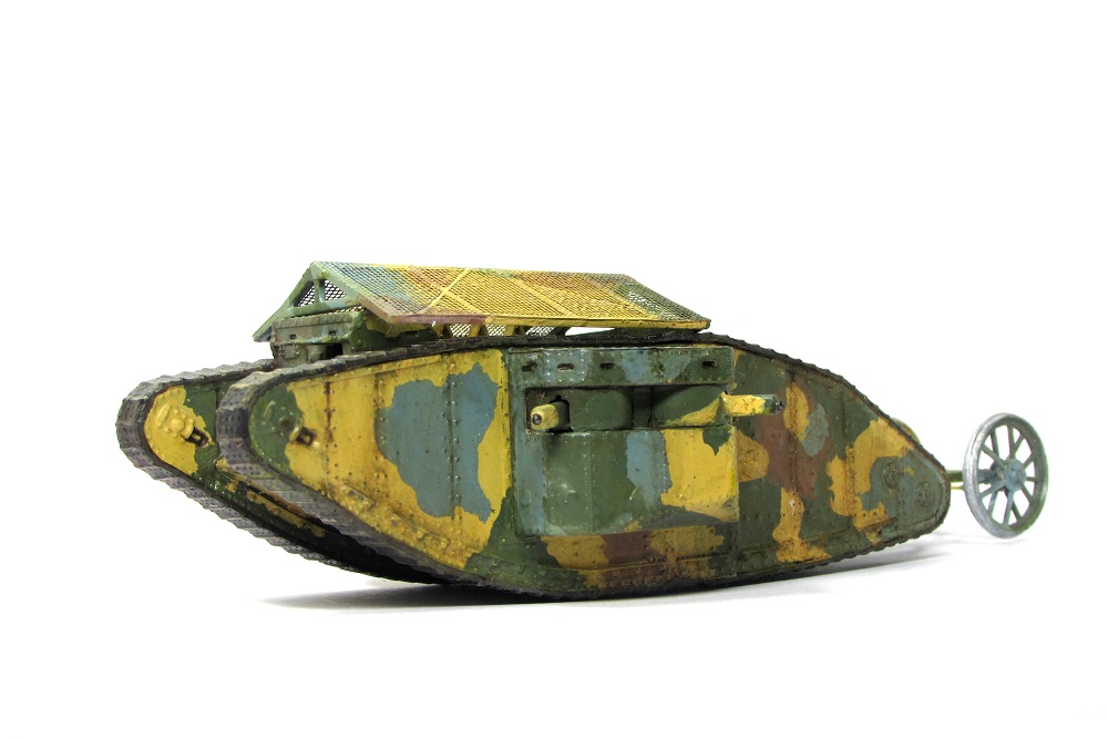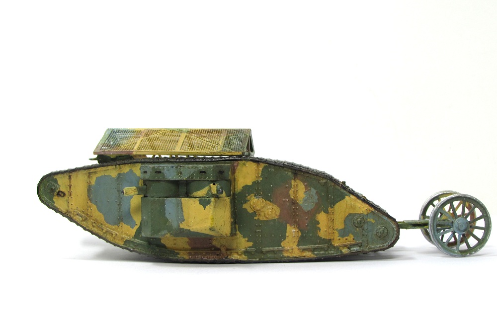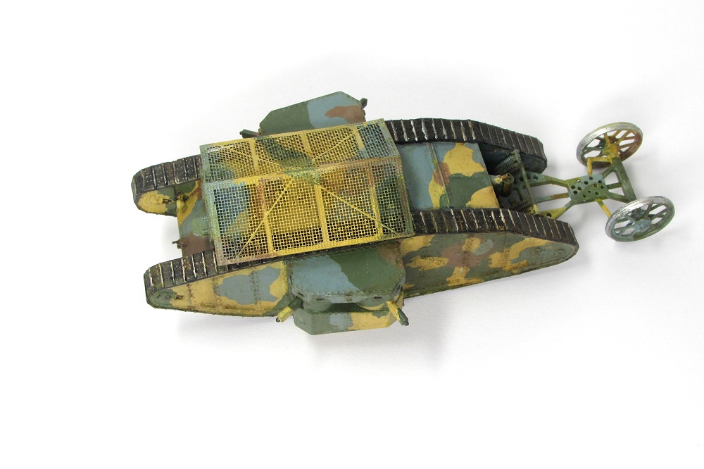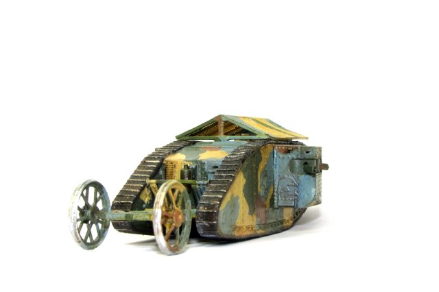 Модель искоробочная. Изображает один из первых танков, примененных в битве при реке Сомме. Окраска акрилом марки "Акан", масляная краска - "Невская палитра".