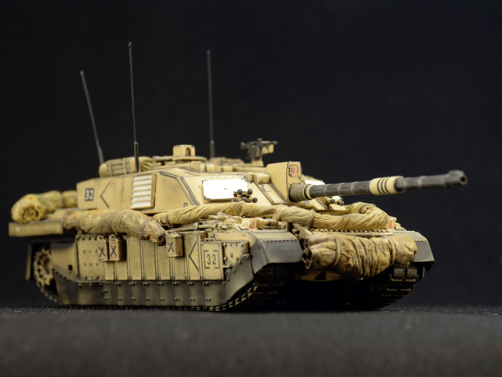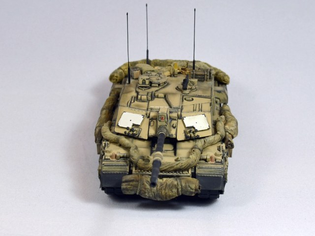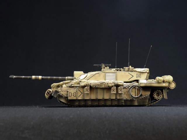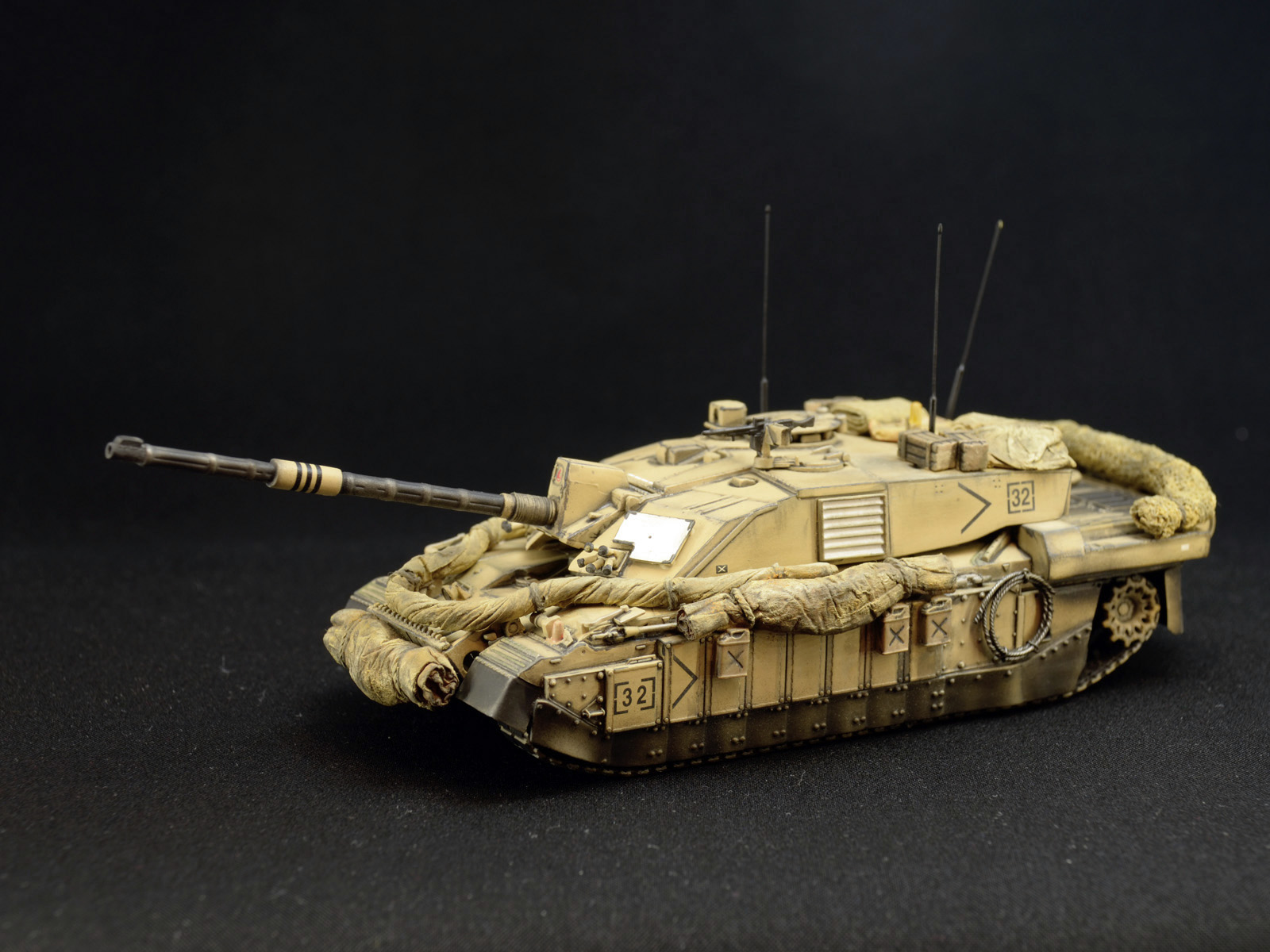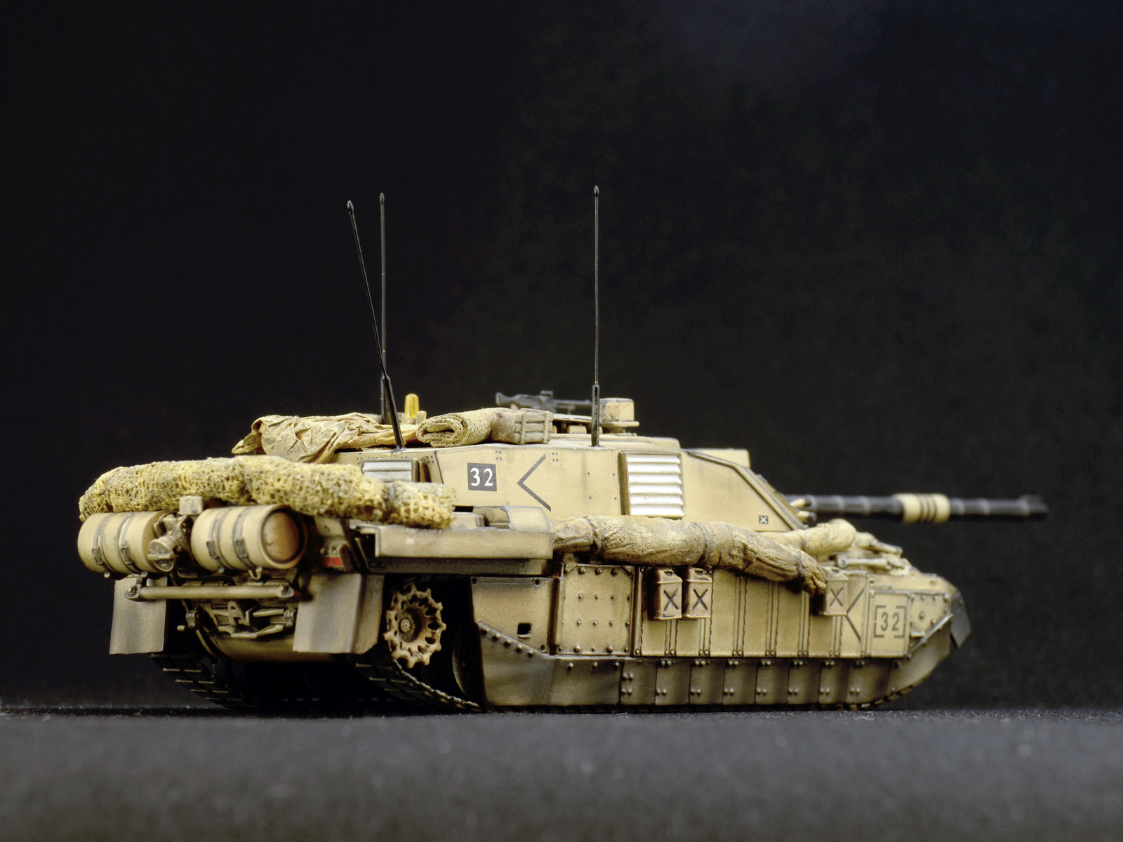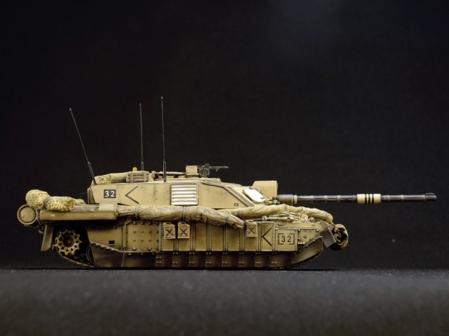 В конце навесил кучу разных чехлов и маск сетей, которыми англичане любили обвесить свои Челенджи в Ираке. Их сделал из туалетной бумаги и ПВА.