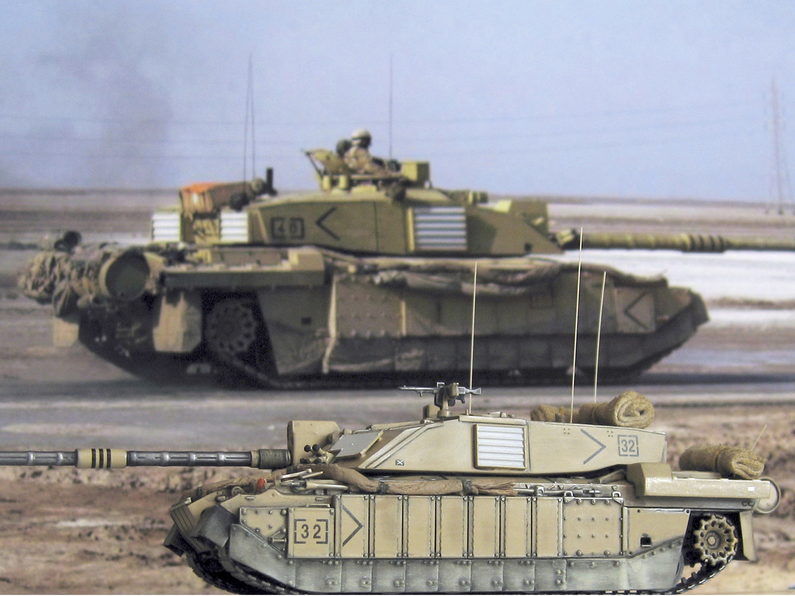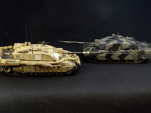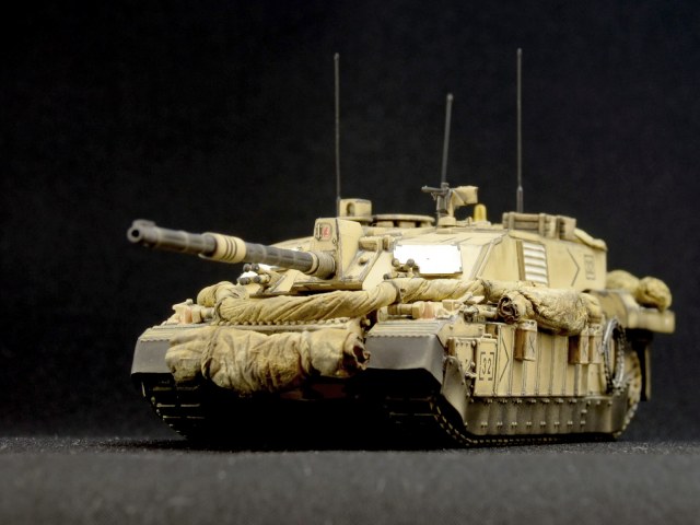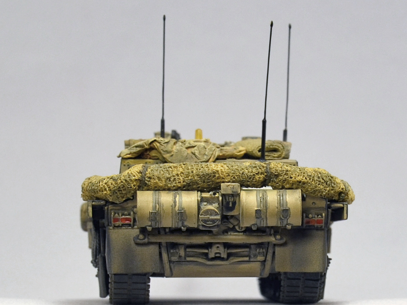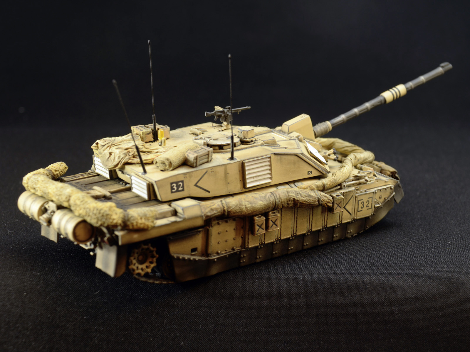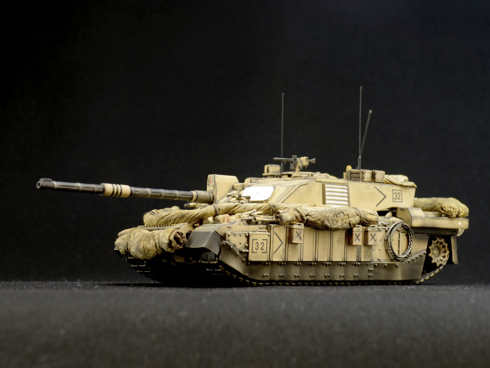 В конце навесил кучу разных чехлов и маск сетей, которыми англичане любили обвесить свои Челенджи в Ираке. Их сделал из туалетной бумаги и ПВА.