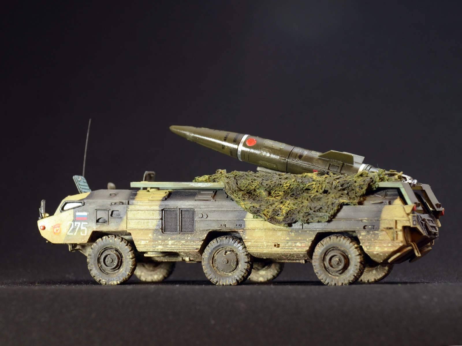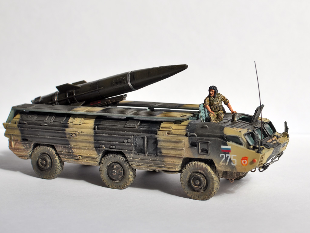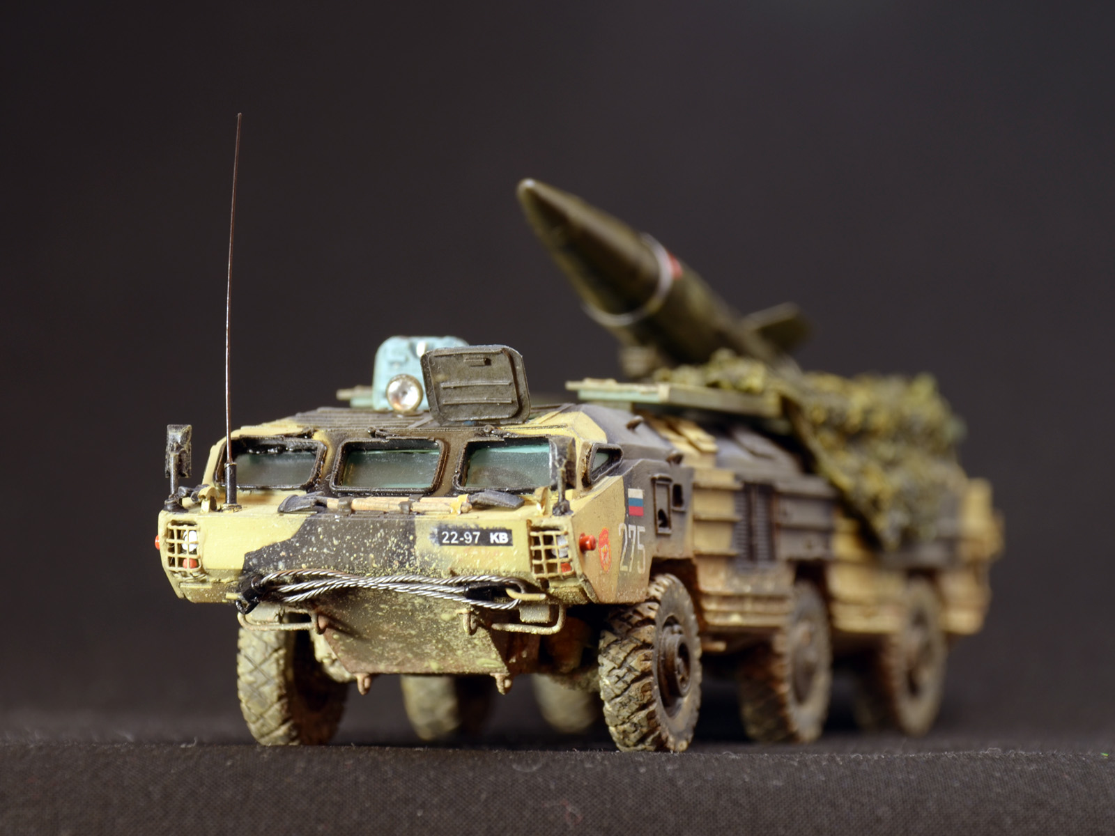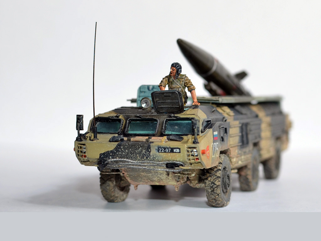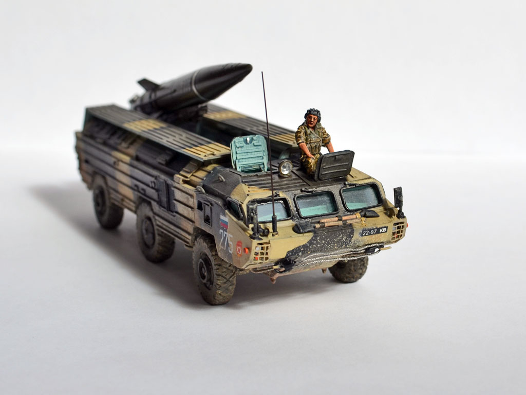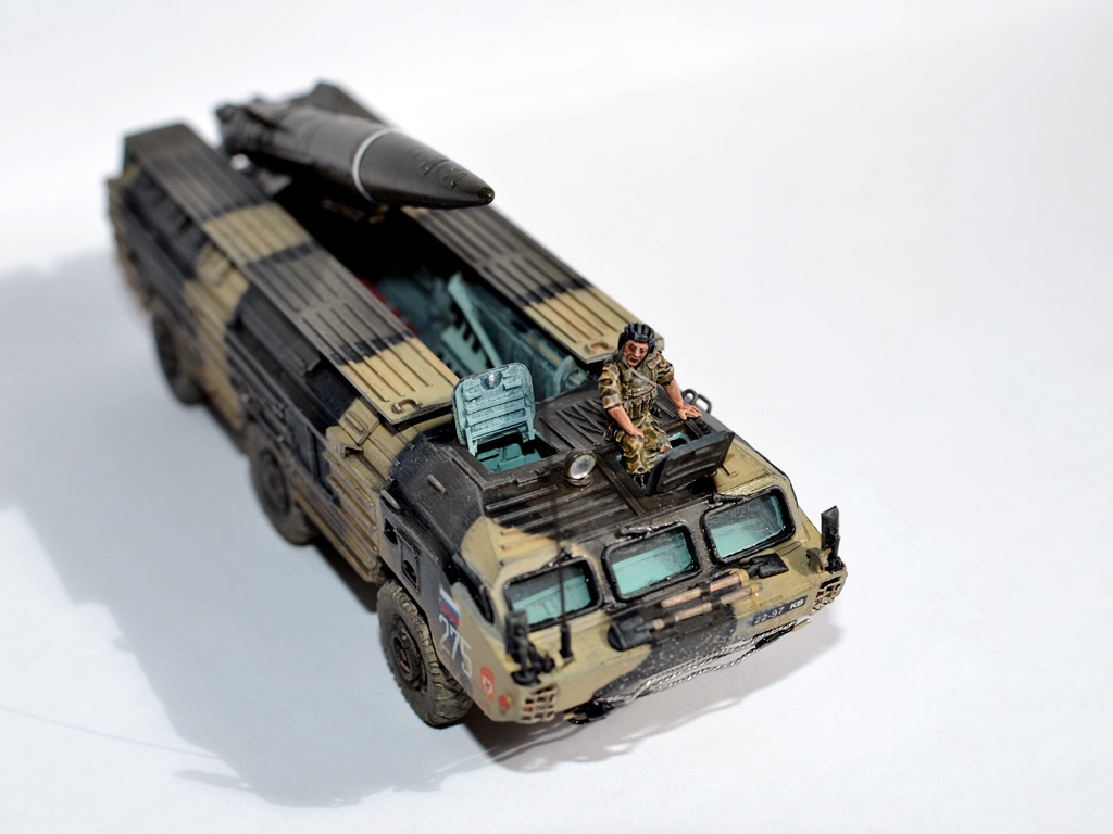 На ракете смотровые лючки из метализированного скотча. Фара-искатель от Эльф. Сетка ограждения передних фар - травление из запасов. Антенна -ус от домашней шиншиллы. Ну вот и всё. Окраска эмалями Revell. Тонировка, смывка, пигменты MIG.