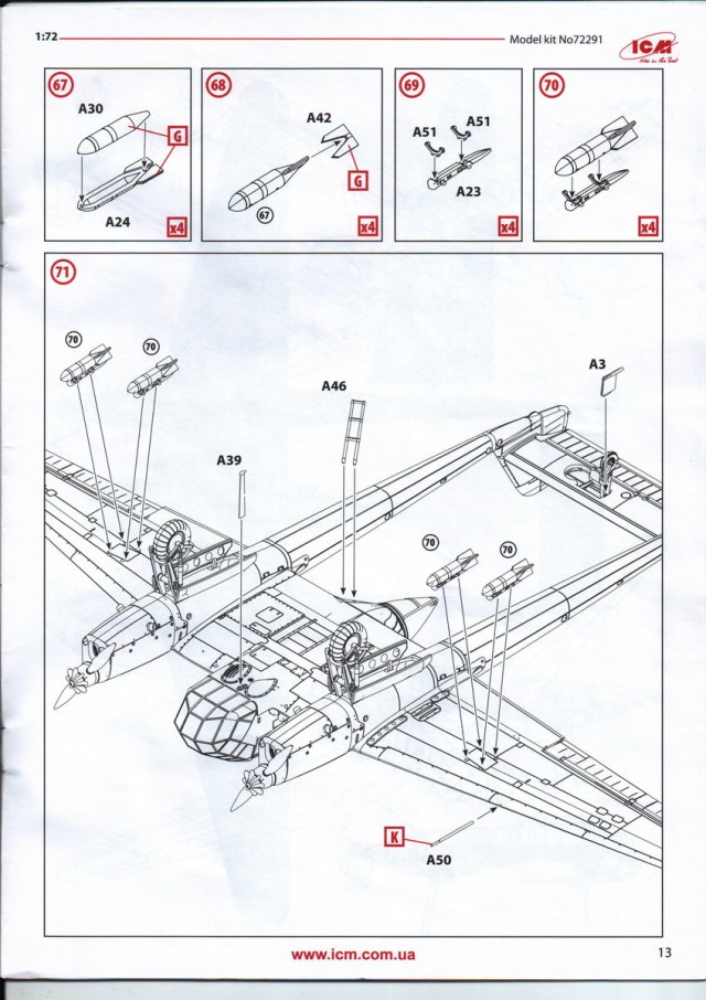 Ну и бонус. Традиционная экономия ICM на дополнительных пресс-формах дарит моделисту полный набор пулеметов MG-81 и патронных ящиков от модификации А2. Остекление в комплекте также обеспечивает оба варианта.