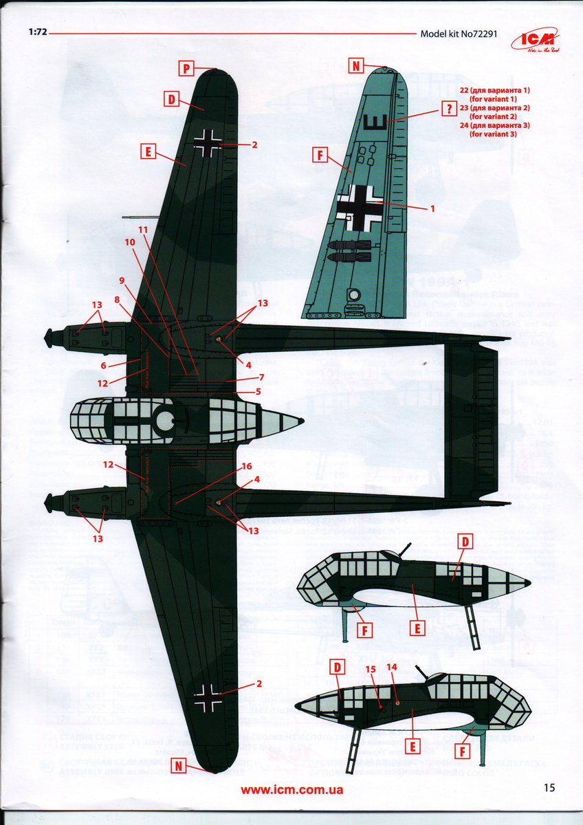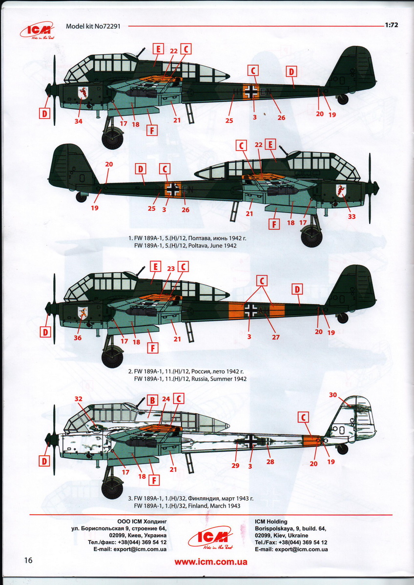 Декаль позволяет сделать один из трех вариантов бортов, причем эти варианты имеют фотографическое подтверждение в "Squadron Signal Fw-189 - In Action".