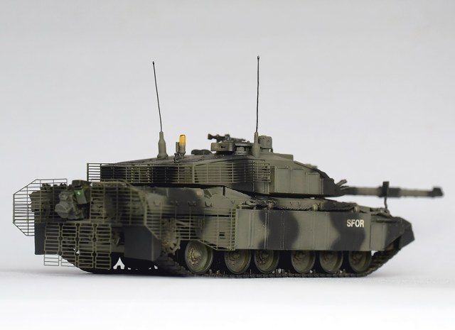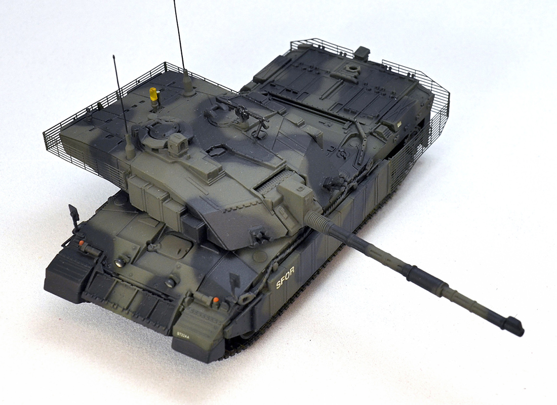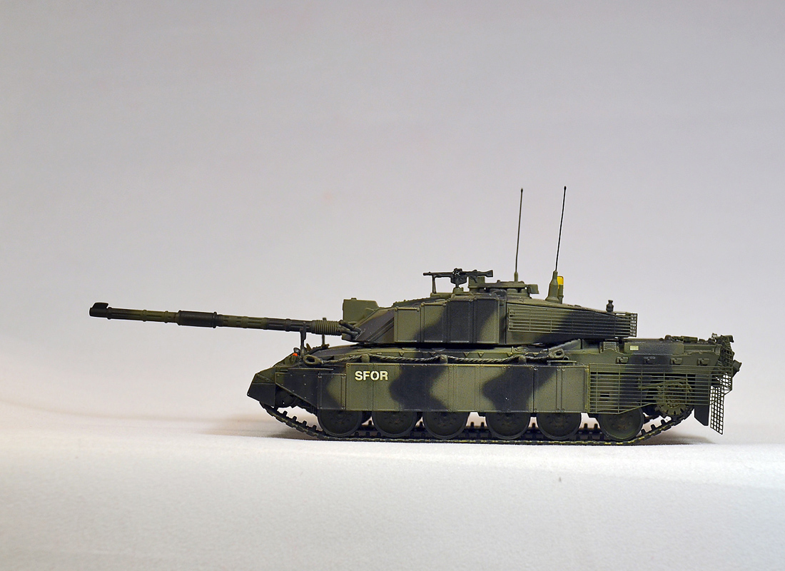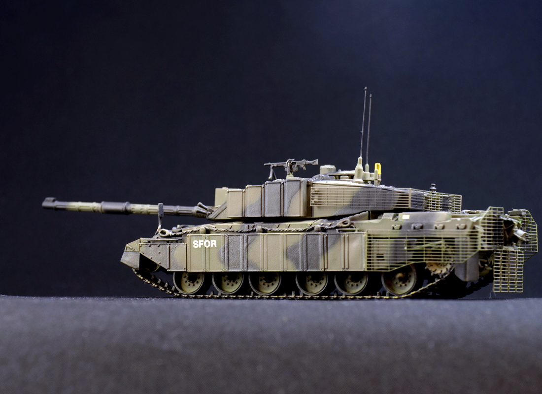 Эмали Revell. Немного смывки. Обгаживать модель не стал. В принципе сильно то они там и не воевали. Скарба на танки никакого не навешивали, всё-таки центр Европы - всё под рукой: супермаркеты, базы и т.д. Не то, что в Ираке и Афгане. Пустыня, нужна и вода и дополнительное топливо и навесы от пыльных бурь.