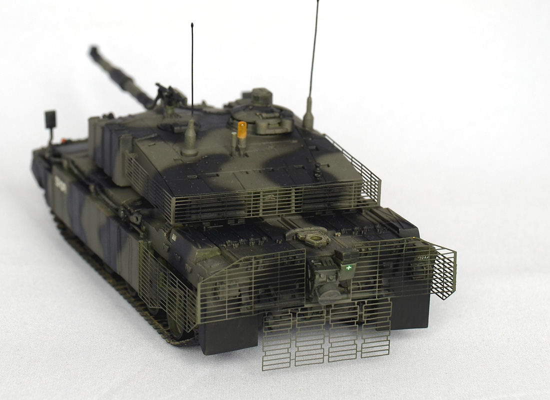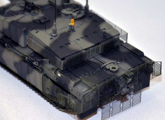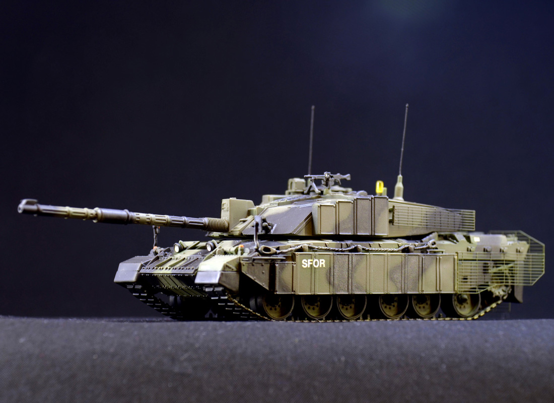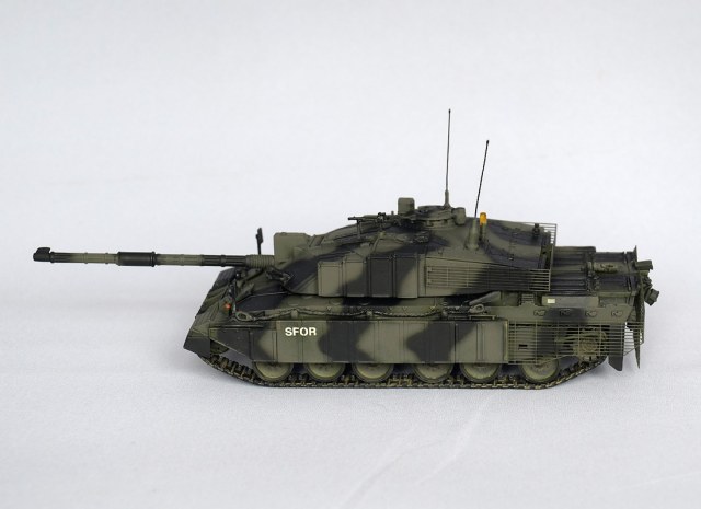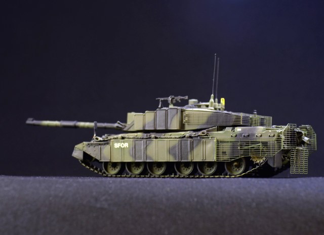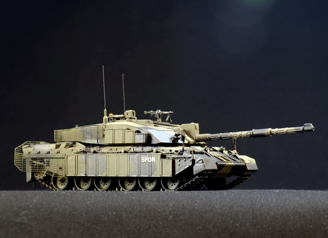 Эмали Revell. Немного смывки. Обгаживать модель не стал. В принципе сильно то они там и не воевали. Скарба на танки никакого не навешивали, всё-таки центр Европы - всё под рукой: супермаркеты, базы и т.д. Не то, что в Ираке и Афгане. Пустыня, нужна и вода и дополнительное топливо и навесы от пыльных бурь.