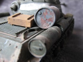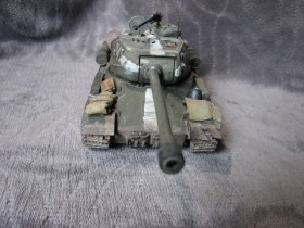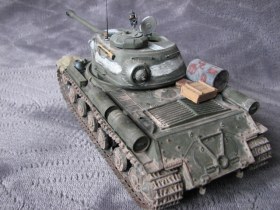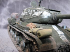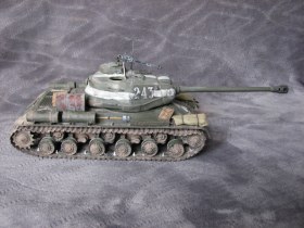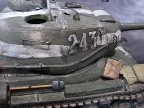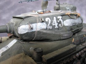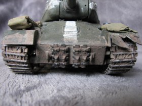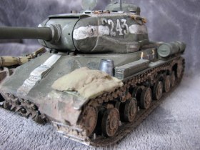 Изначально, сей объект, собирался для будущей диорамы посвящённой встрече на Эльбе. Но по ходу работы я не обнаружил присутствия данных машин в районе городка Торгау. Поэтому ИС отправился в "свободное плаванье". Собирался из "коробки", доработок минимум, красил всё акрилом, "загрязнил" окрашенным гипсом (пигментами назвать это язык не поворачивается), с гусеницами пришлось повозиться.