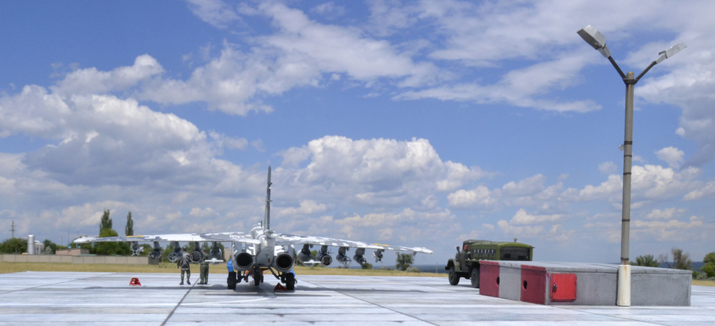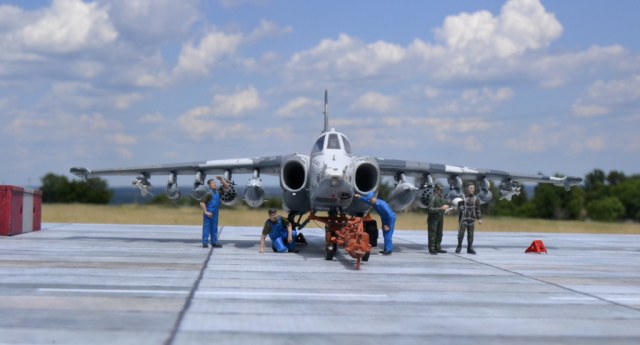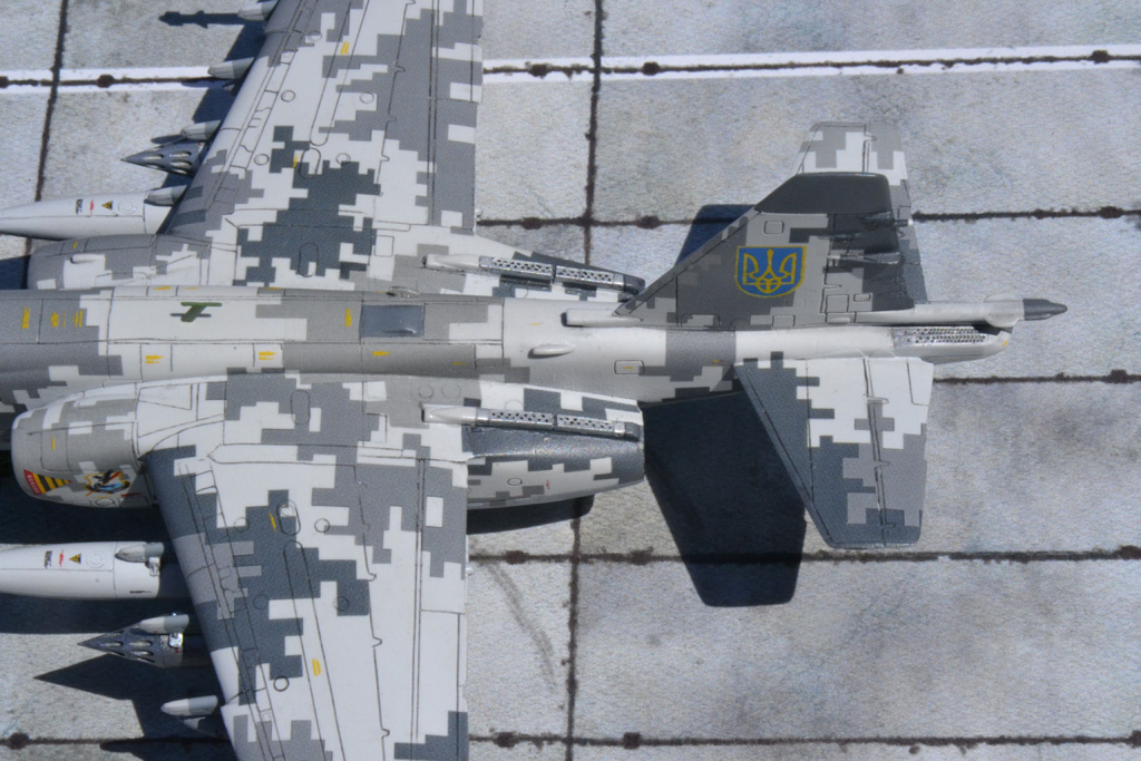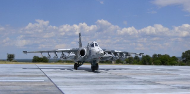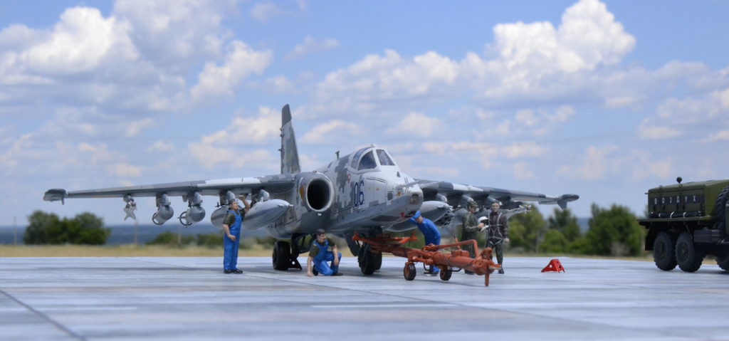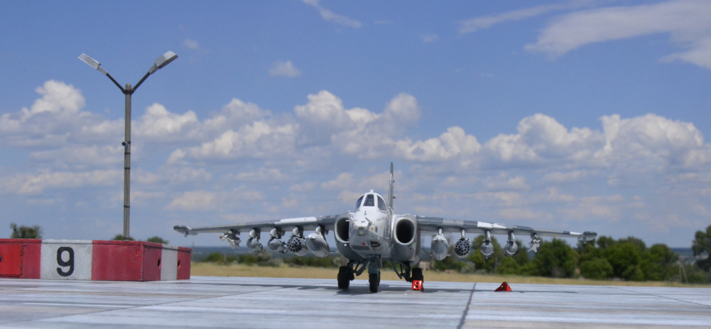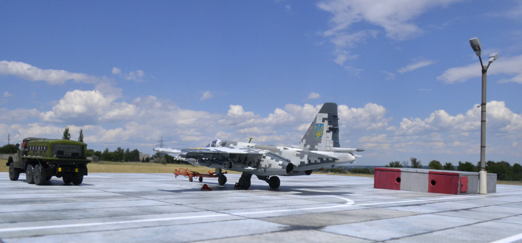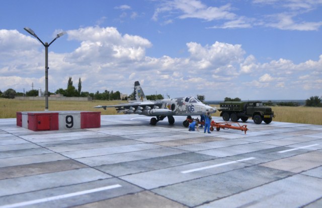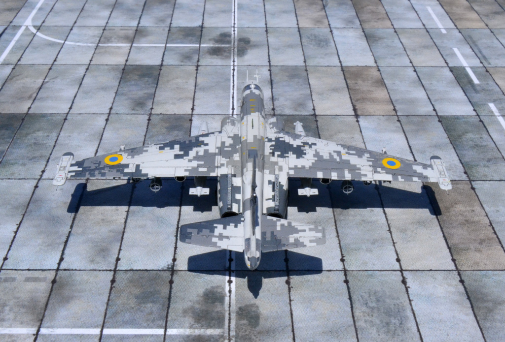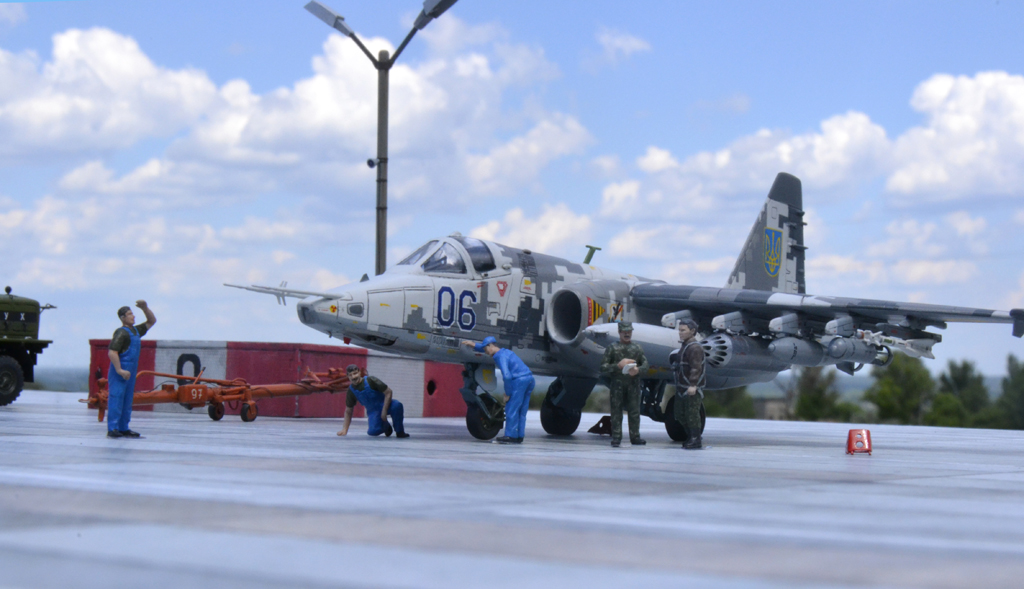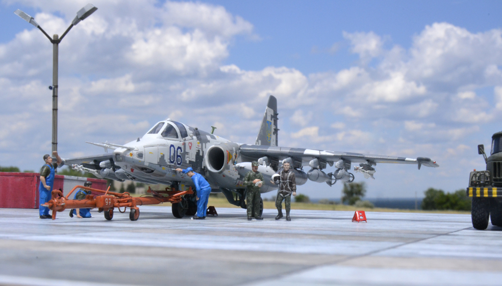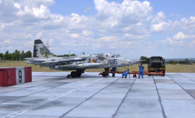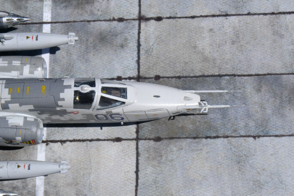 Всем привет! Представляю Вашему вниманию свою крайнюю работу – долгожданный Су-25М1 борт «№ 06 синий», который базировался в 299-ой авиабригада Кульбакино г. Николаев. Выбор пал именно на этот борт, поскольку именно он является первым в Украинских ВС самолетом окрашенным в пиксельный камуфляж и вступил в строй в 2012 году. Теперь о модели: сам набор мне не очень понравился, пришлось с ним повозится.