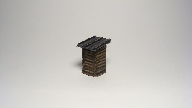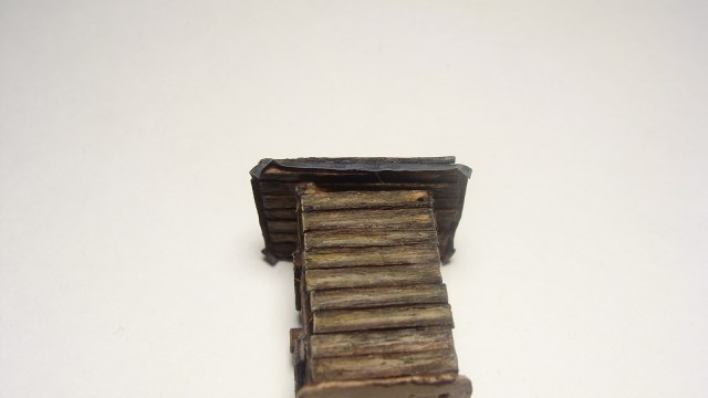 Тут двоякий момент. С одной стороны, бруски по задумке именно что держат куски рубероида, чтобы он не улетел. Но, тут еще влезает эстетичская составляющая - так как это все таки игрушка, то хотелось покрасивше, а вариант с тупо закрыть стыки брусом мне не так понравился. Да и про гудрон я если честно не думал, я просто тонировал, чтобы швы были виднее и смотрелось приятнее (но спасибо за хорошую легенду, теперь оно будет "пролитое гудроном, ну потому что осталось разогретым, почему-бы и нет, и поверх горбылями, чтоб не сдуло)