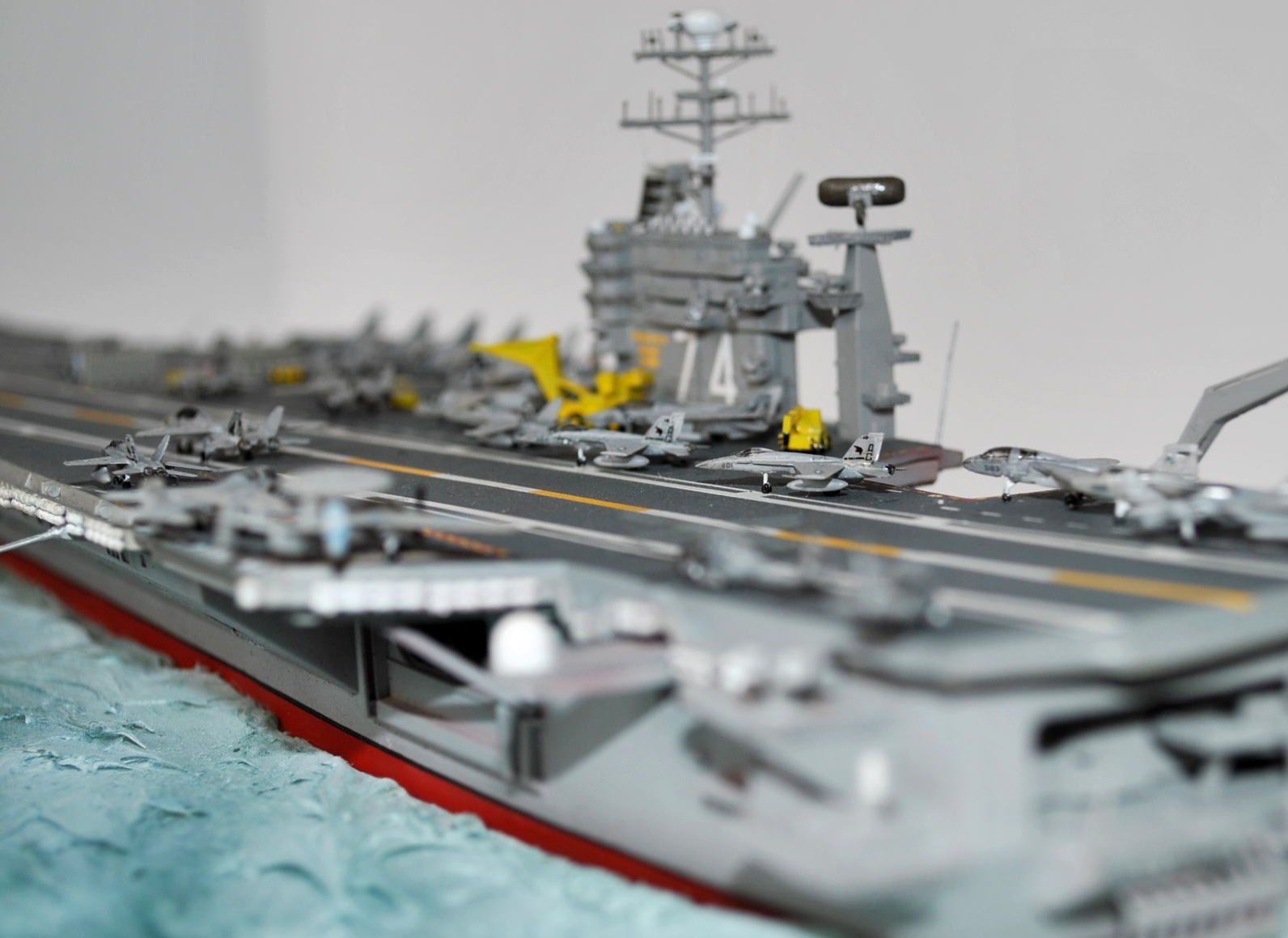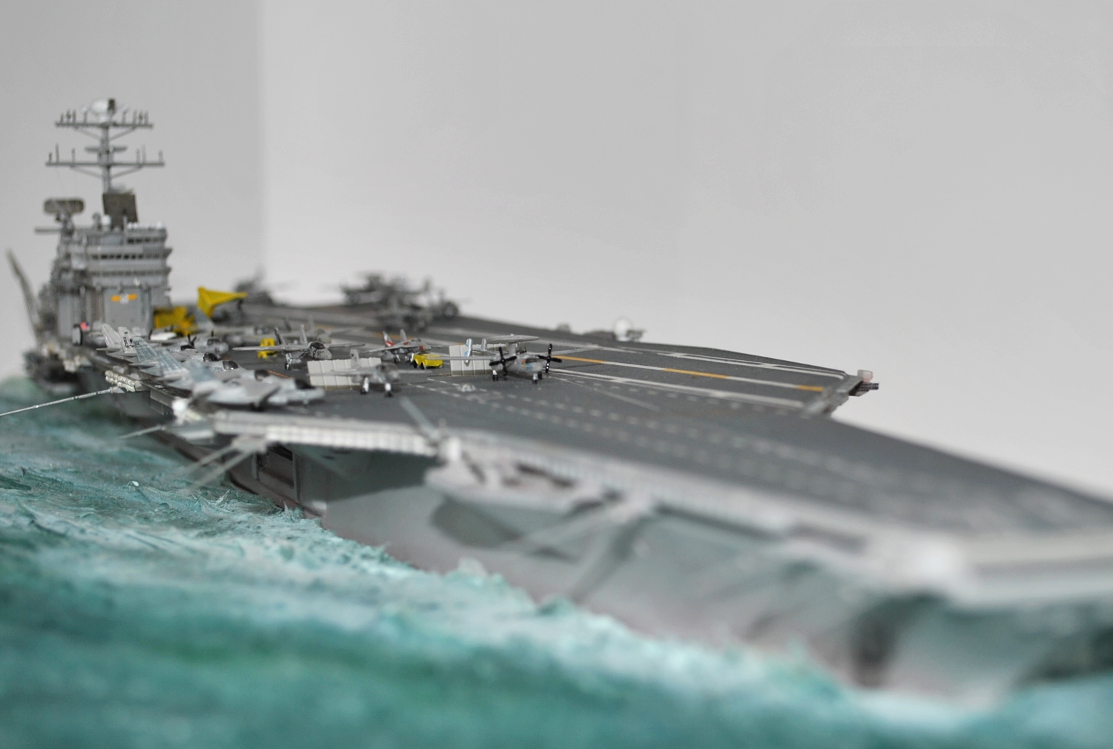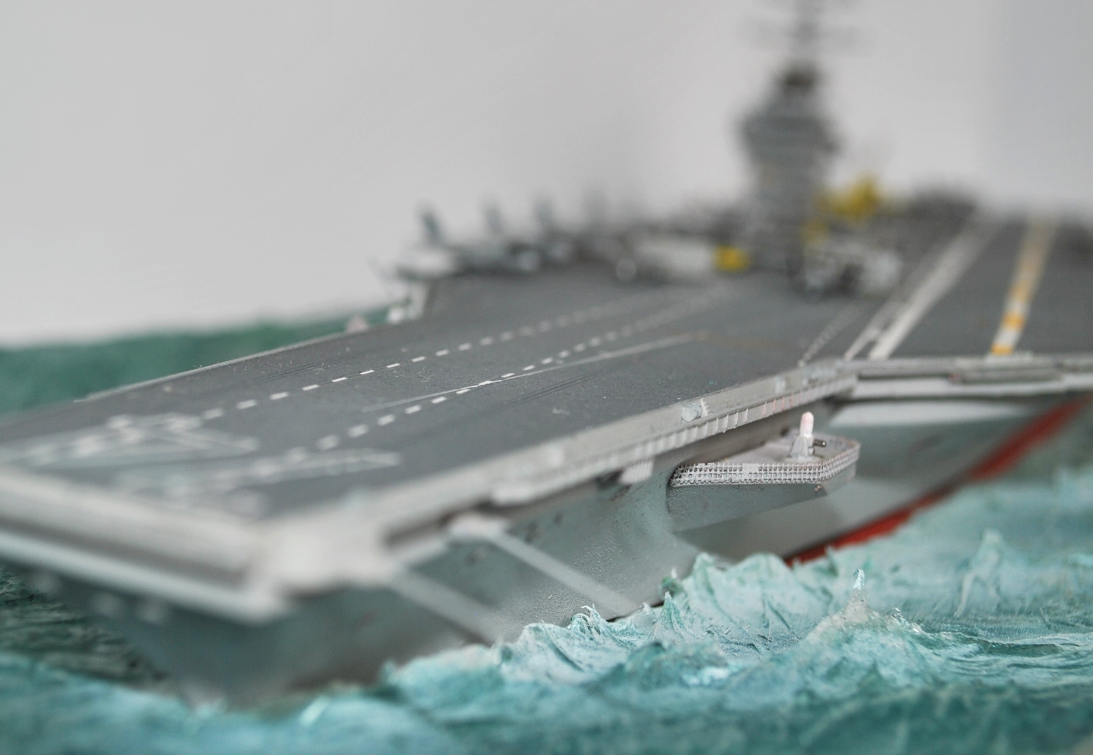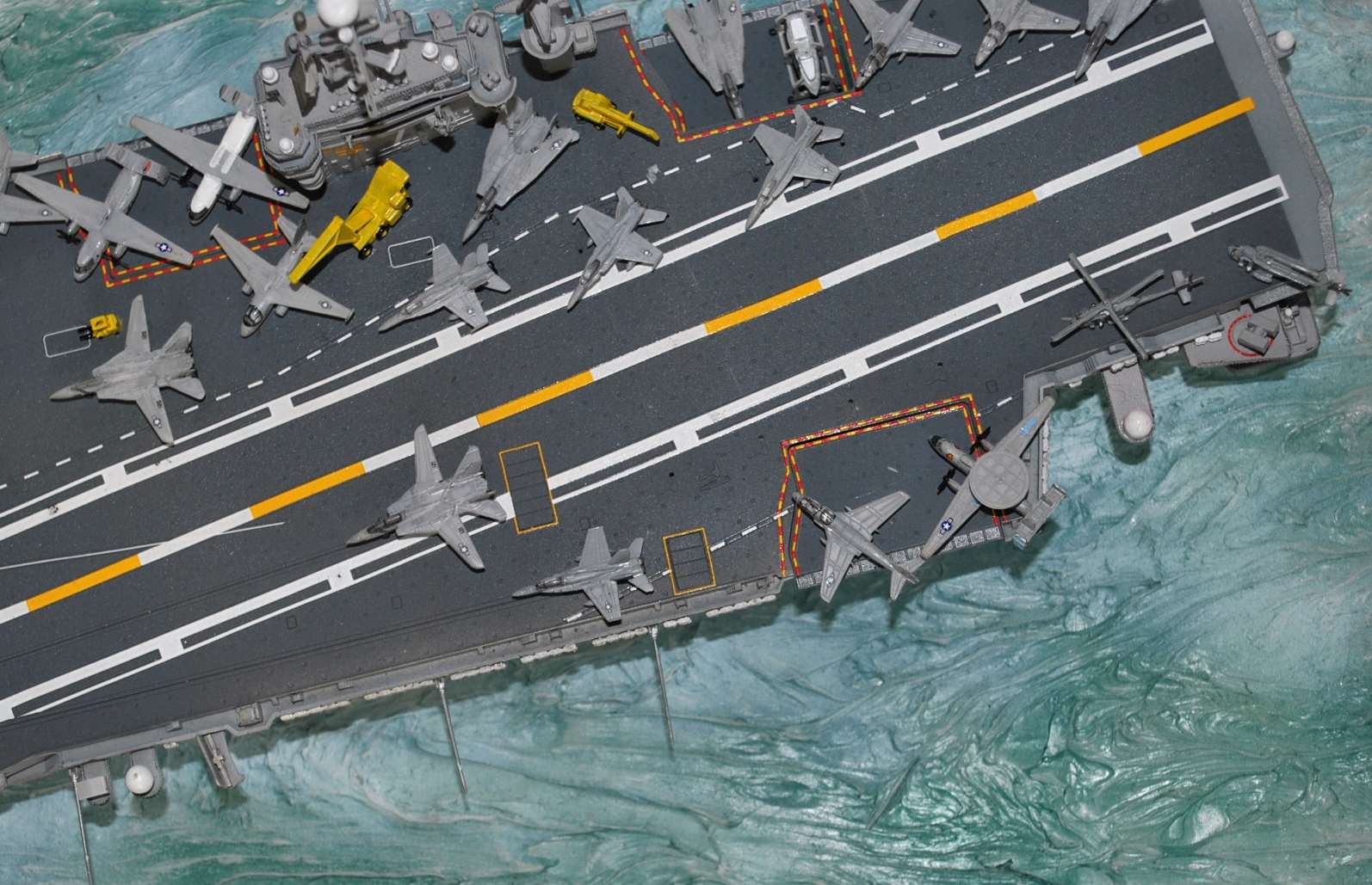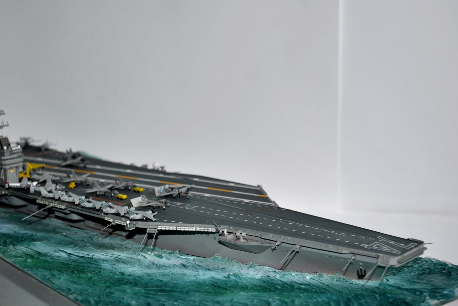 Сам авианосец неплохо получился. Леера из сетки получились неудачно - не смотрятся. Вода, на мой взгляд, "неживая" вышла. Согласен, что работа