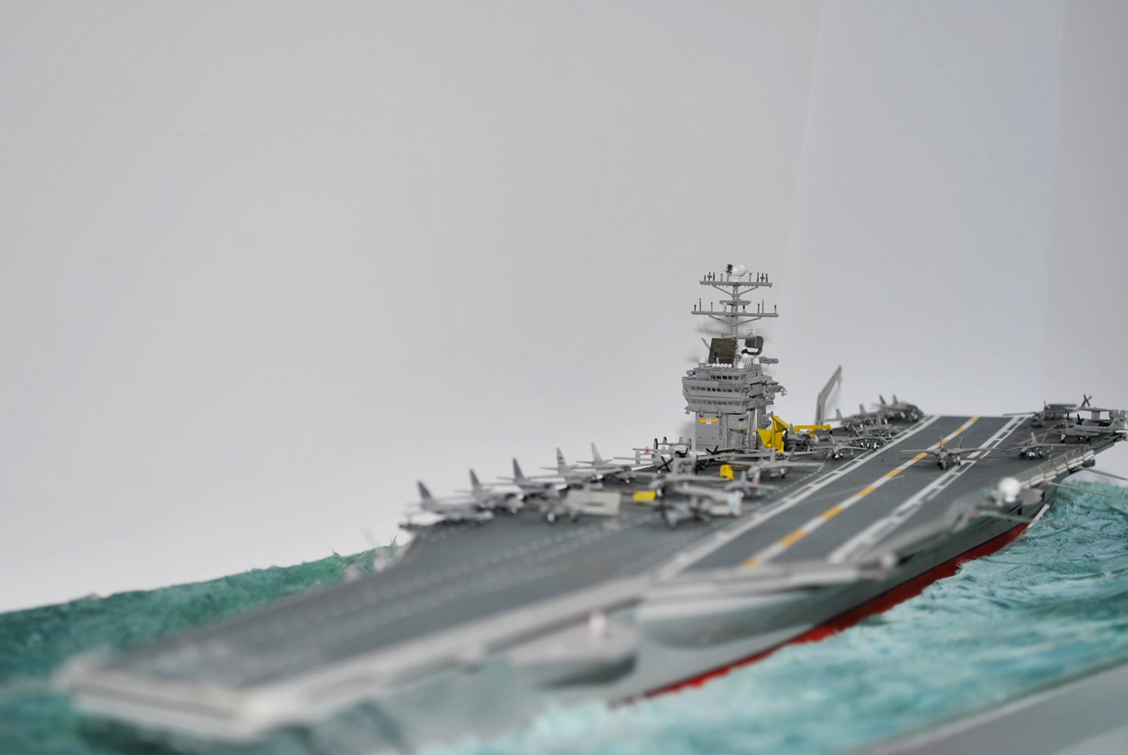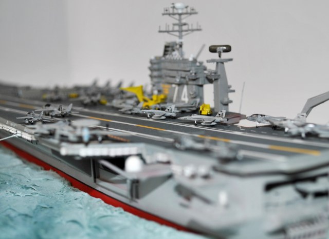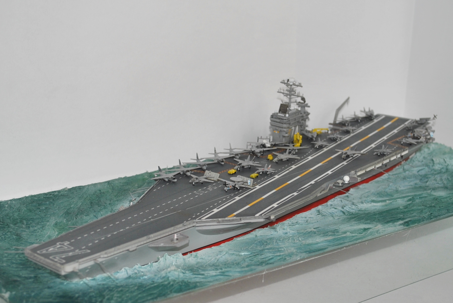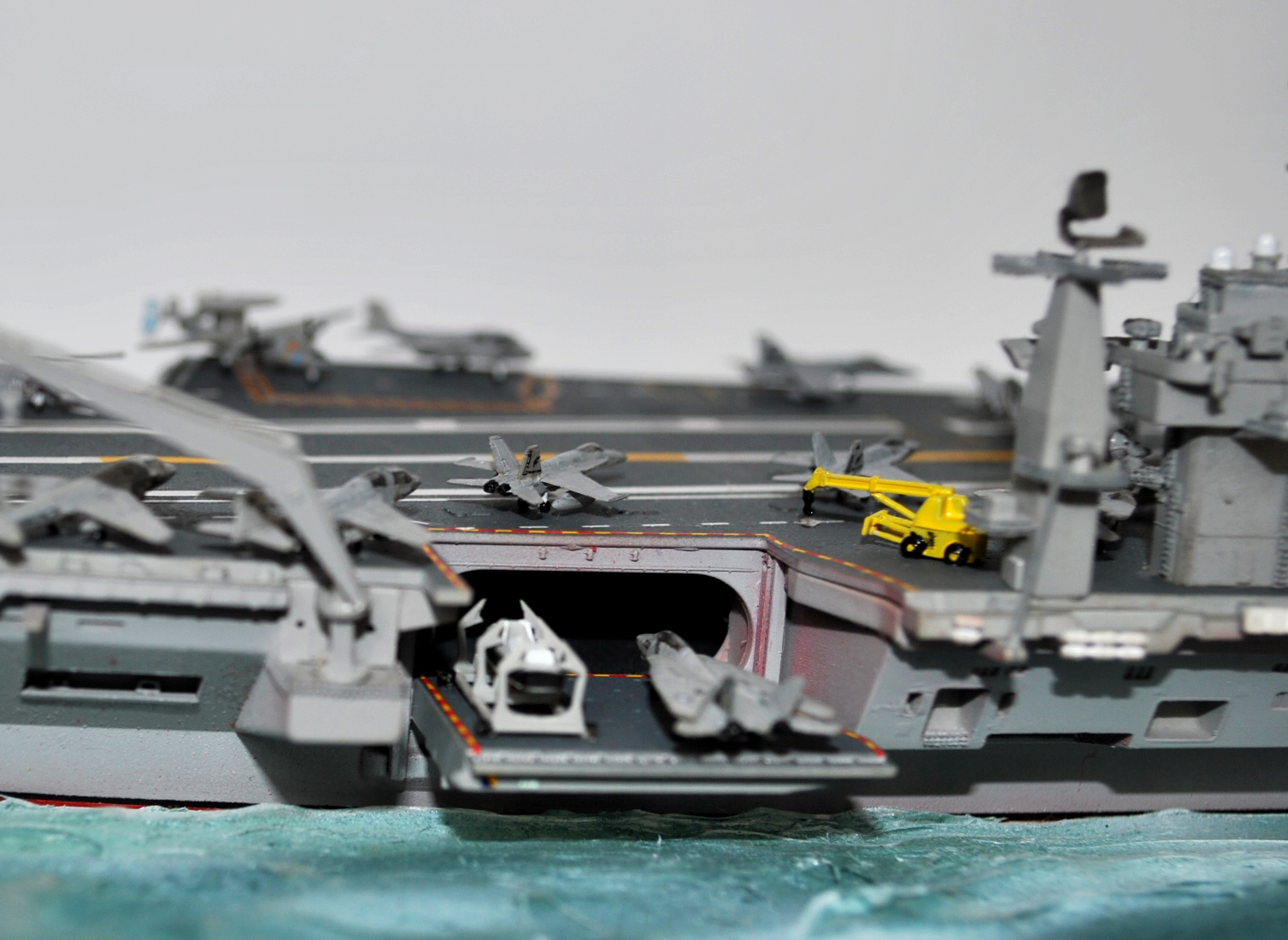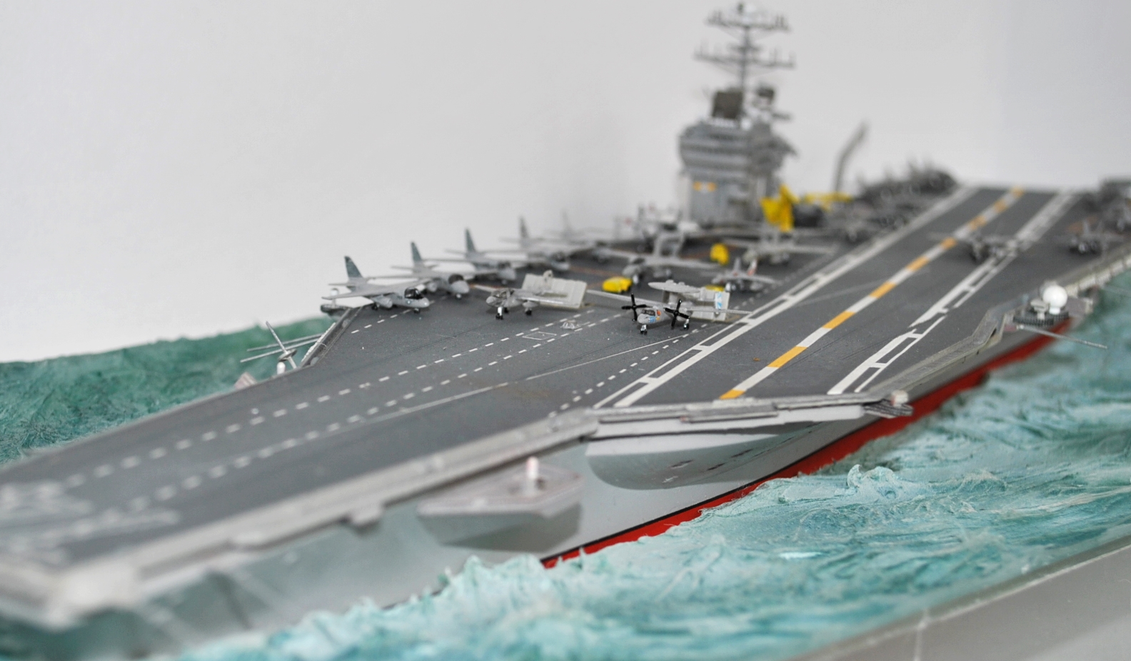Сам авианосец неплохо получился. Леера из сетки получились неудачно - не смотрятся. Вода, на мой взгляд, "неживая" вышла. Согласен, что работа