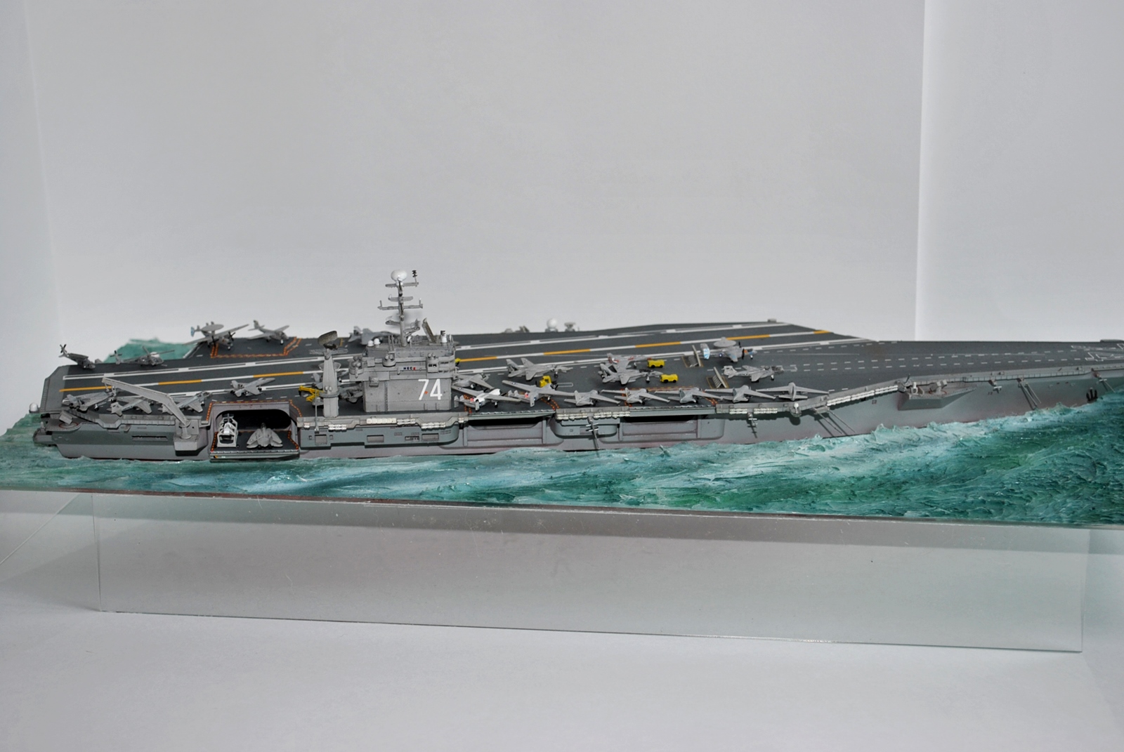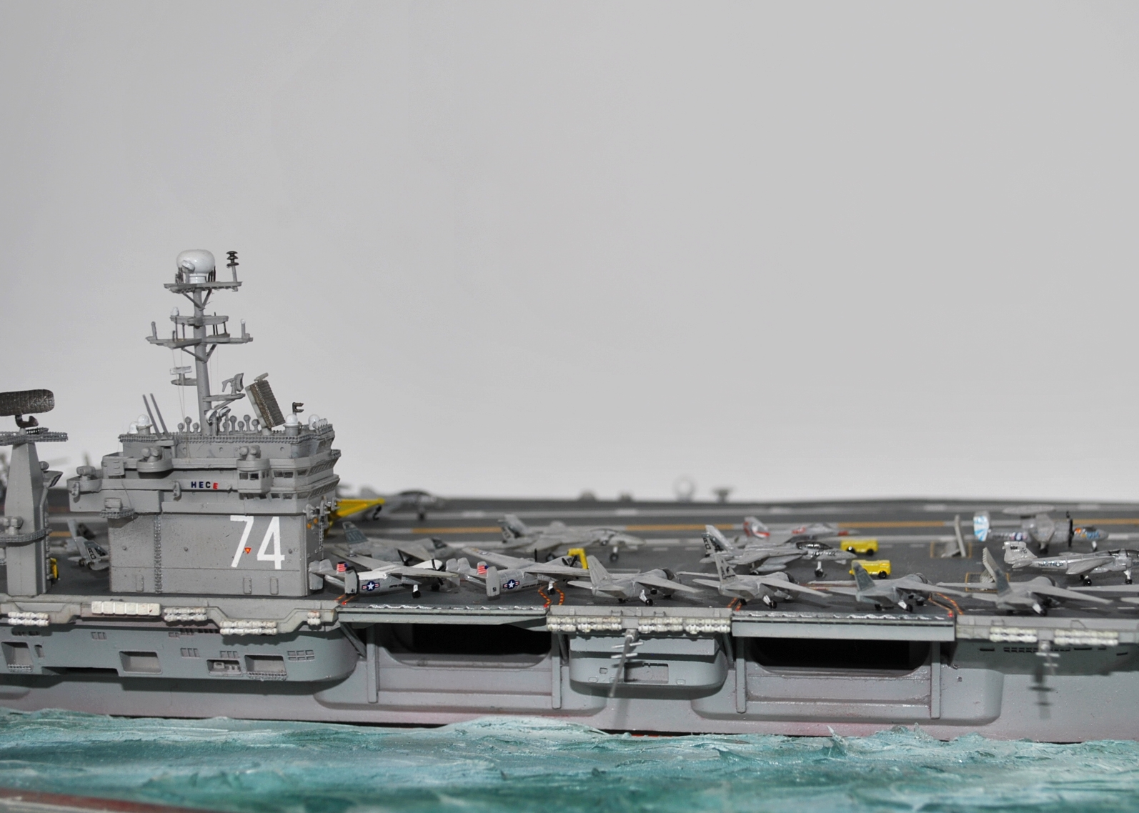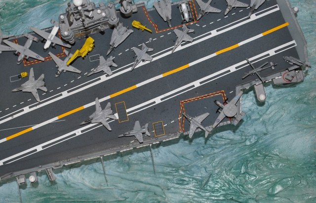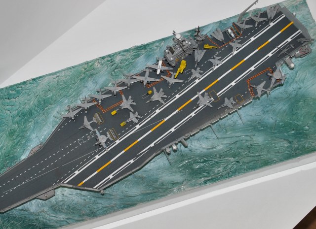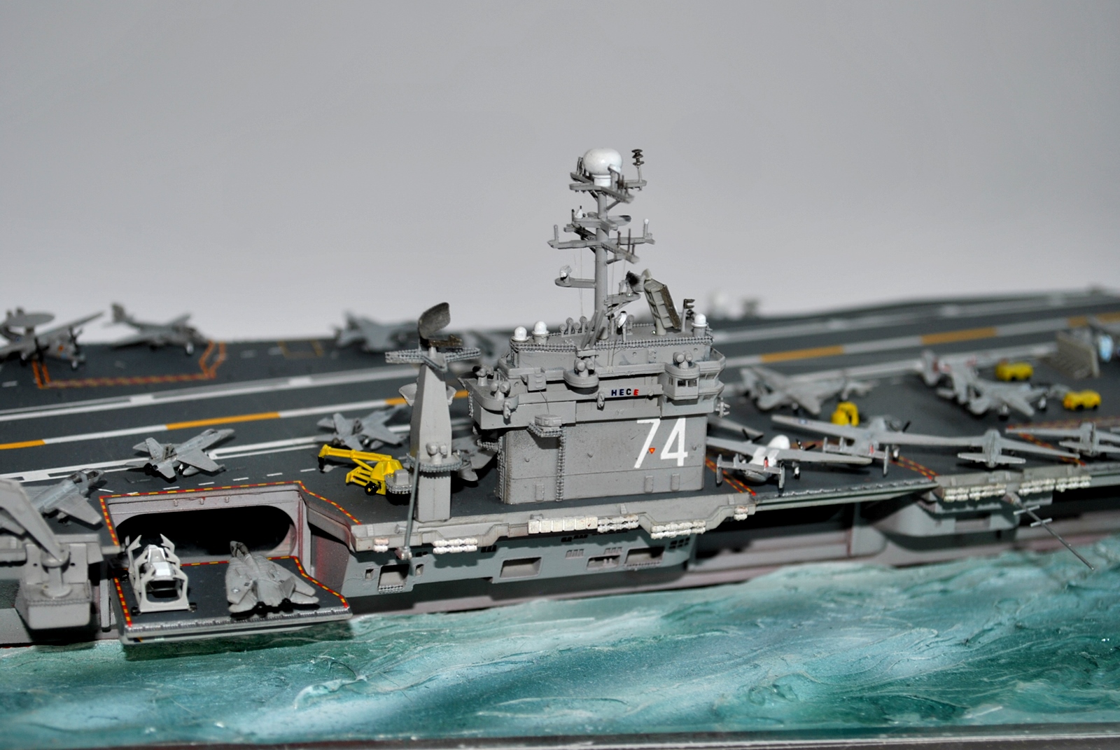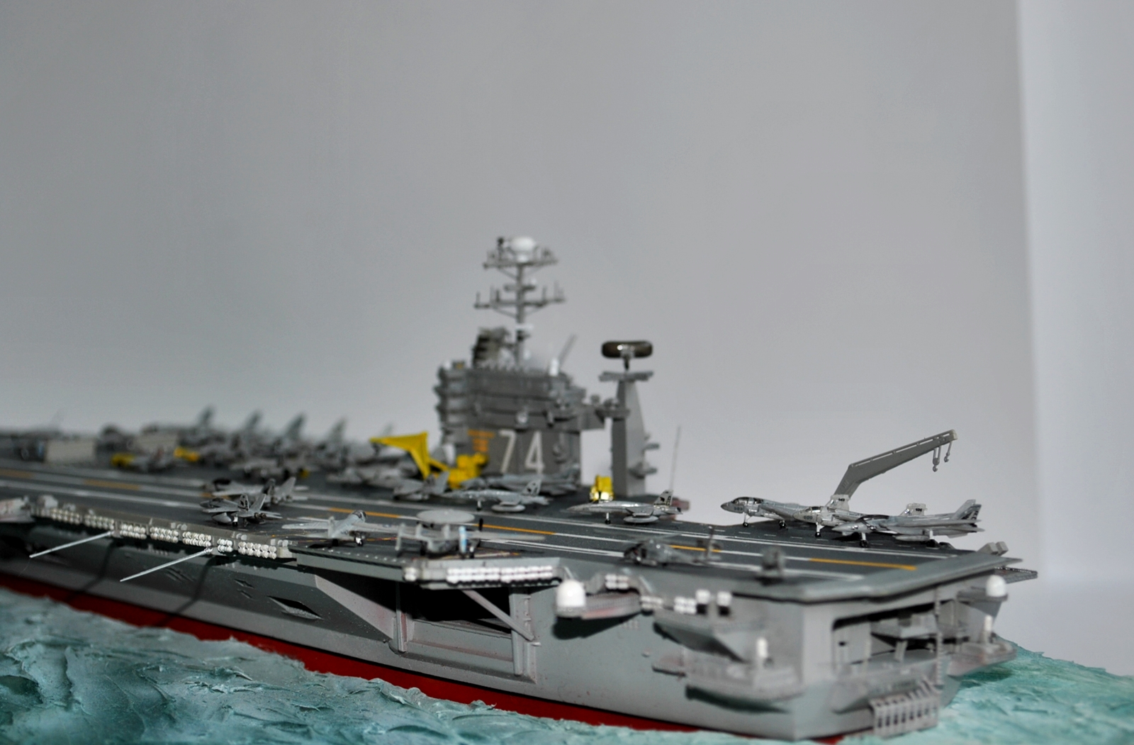 Сам авианосец неплохо получился. Леера из сетки получились неудачно - не смотрятся. Вода, на мой взгляд, "неживая" вышла. Согласен, что работа