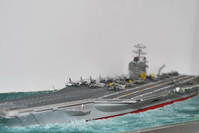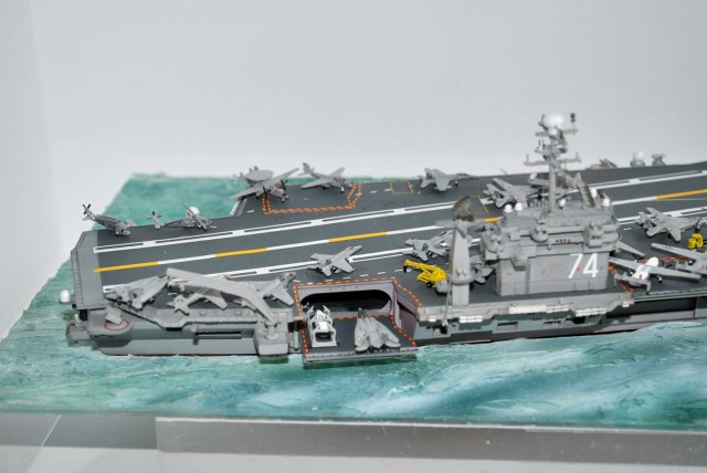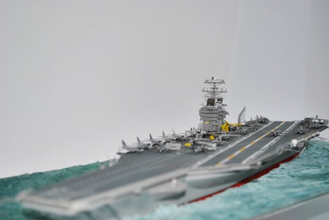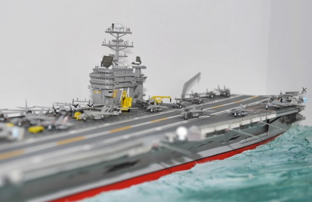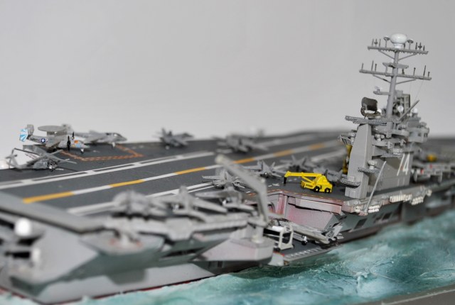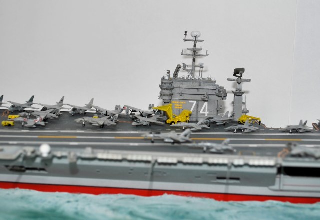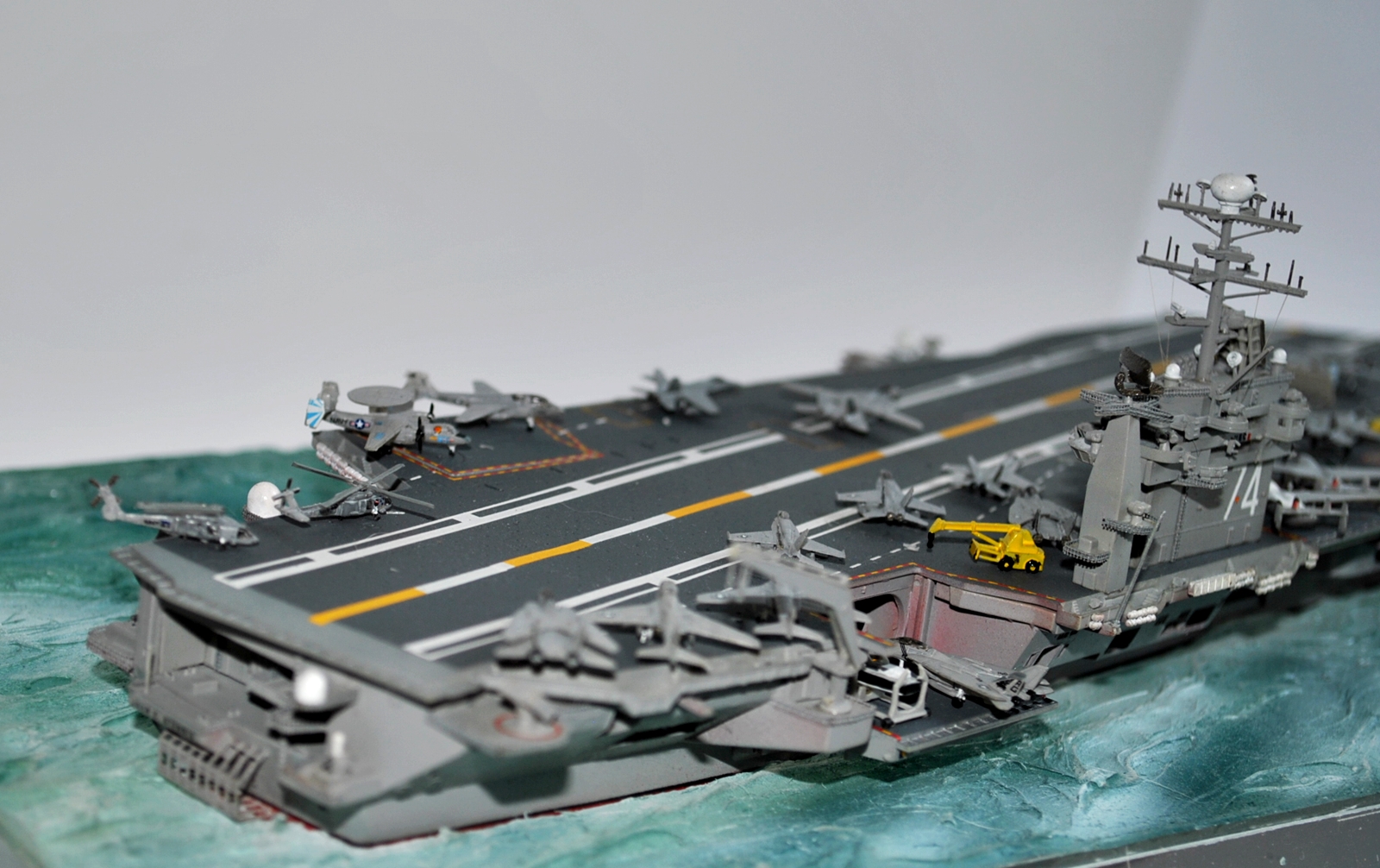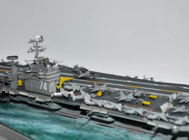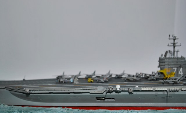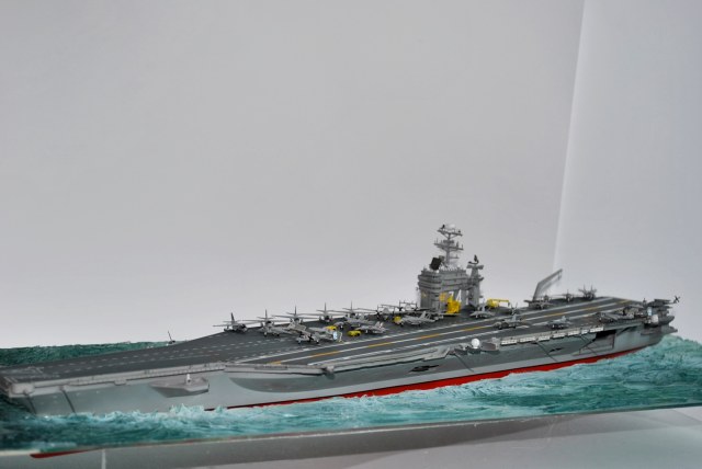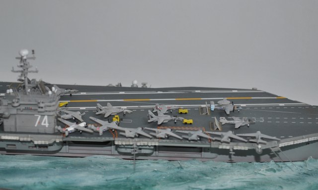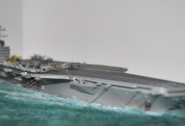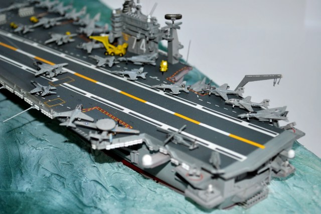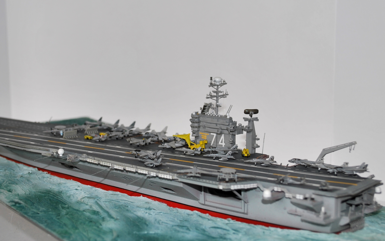 Сам авианосец неплохо получился. Леера из сетки получились неудачно - не смотрятся. Вода, на мой взгляд, "неживая" вышла. Согласен, что работа