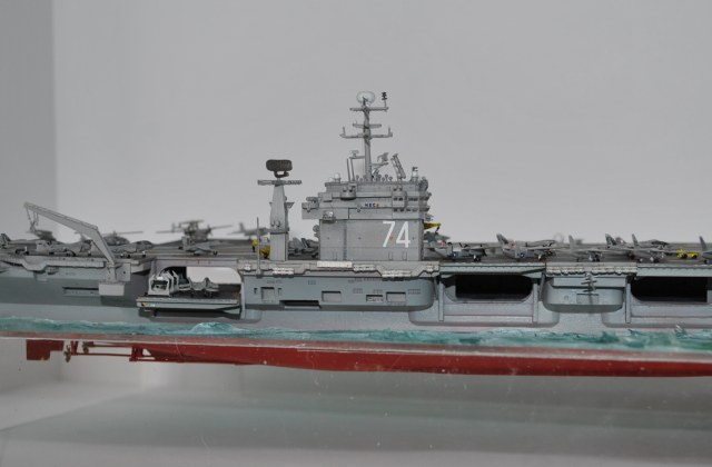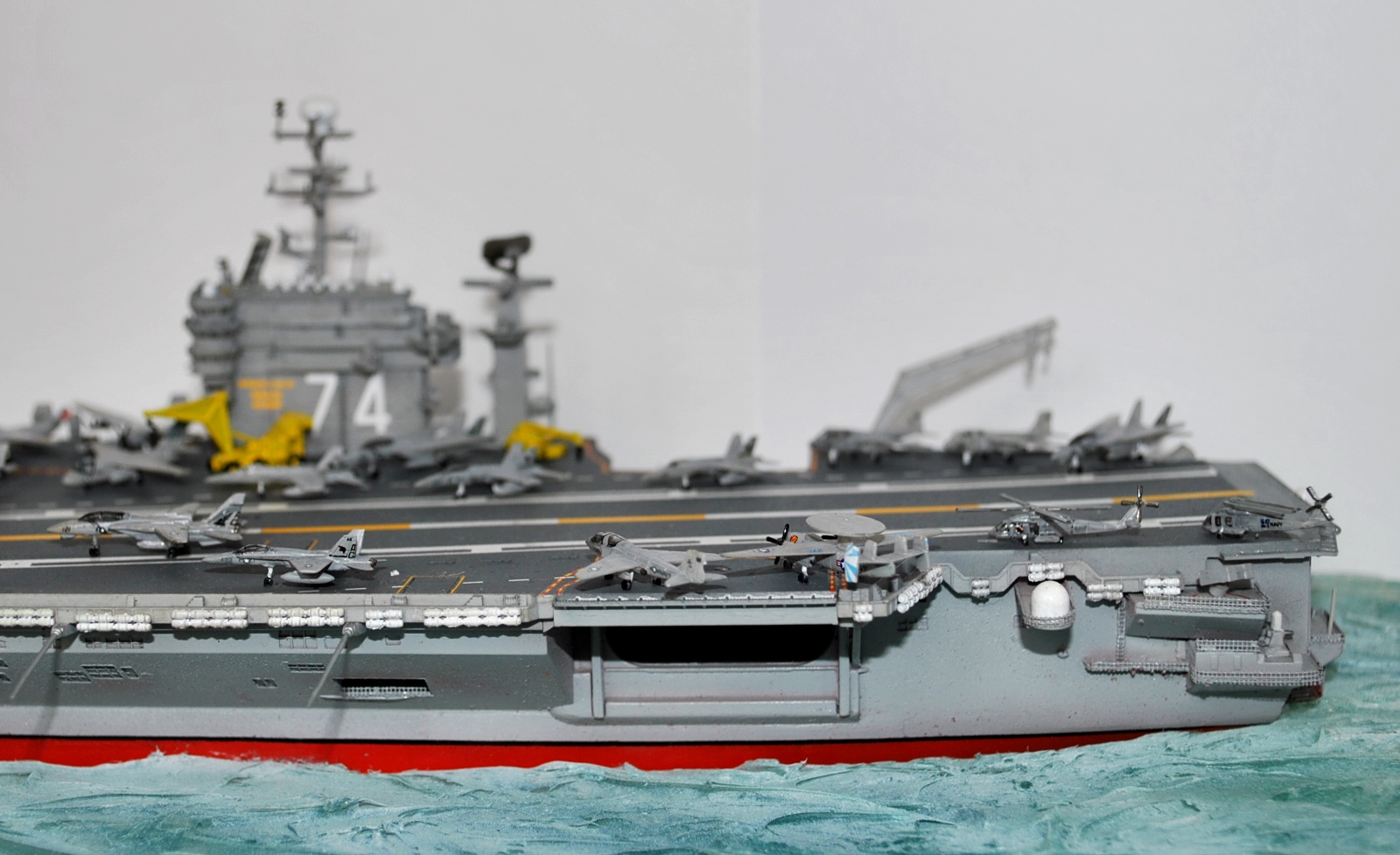 Да, работы много проделано. Самолёты понравились. Но покраска с леерами, действительно, подпортили впечатление. Море не обсуждаю, хотя волны не получились, а вот с осадкой непонятно. Модель на ровном киле, правый борт сидит по ватерлинию (как на фото прототипа) зато левый борт с большим недогрузом.