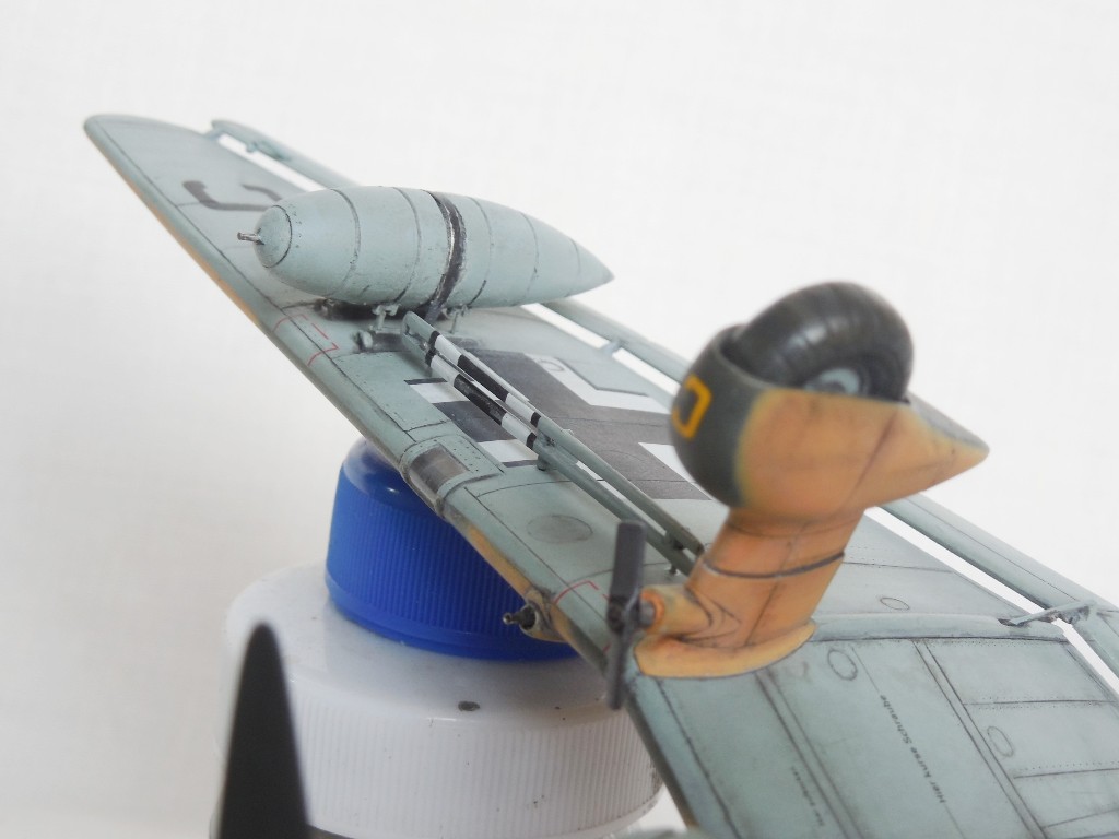 3. Сами же в описании даете, что "Sand Gelb наносился "свободно" поверх стандартной камуфляжной схемы". А покрасили с точностью до наоборот: сначала Sand Gelb и только потом RLM. И это очень бросается в глаза, потому как если сначала красить более темным цветом, а потом более светлым, то на выходе получается совсем другой камуфляж, чем красить когда красишь по канонам: сперва светлый, потом темный.