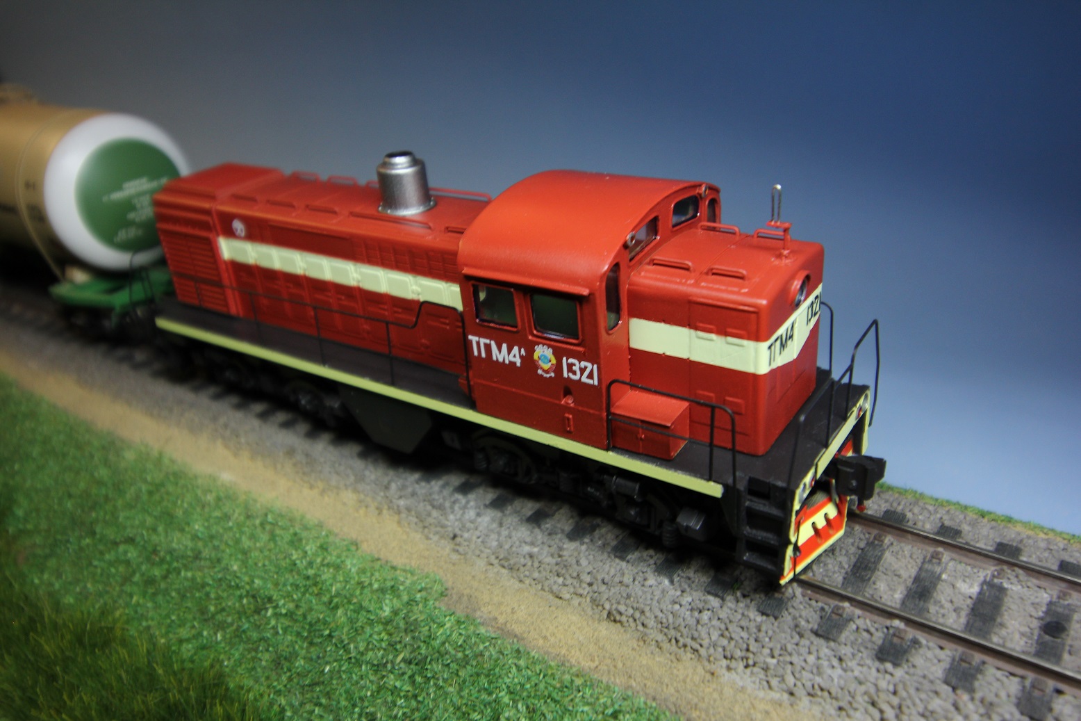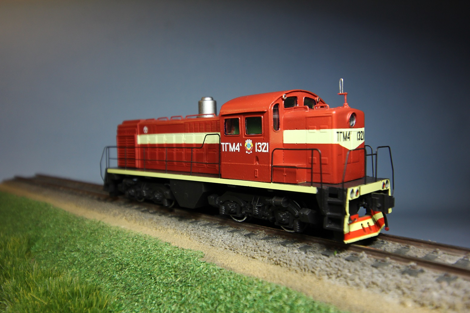 Материал - смола. Окраска автоэмаль. Поручни - травленка, из доработок только антенна.