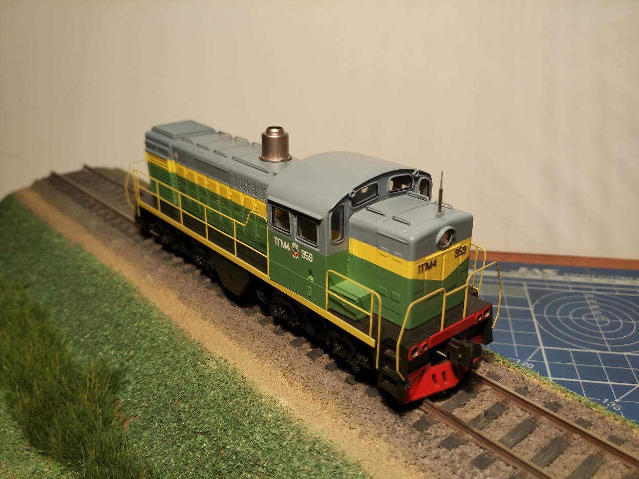 Материал - смола. Поручни с боку - травленка, на крыше проволока, антенна - игла шприца. Окраска автоэмаль.