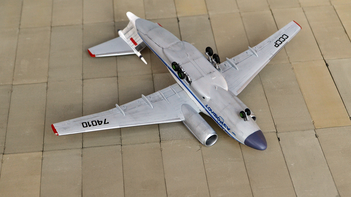 По итогу расшивку на крыле и стабилизаторе вообще резал с нуля, рассверлил выхлоп ВСУ, и немного укоротил переднюю стойку, хотя она даже так выглядит угрожающе высокой. Декаль от Алексея Бацких.