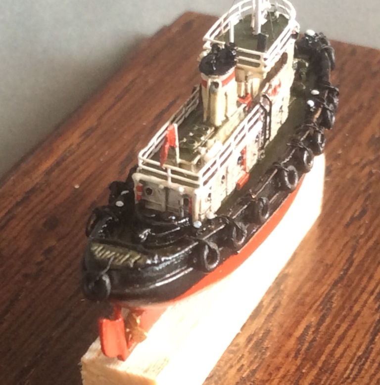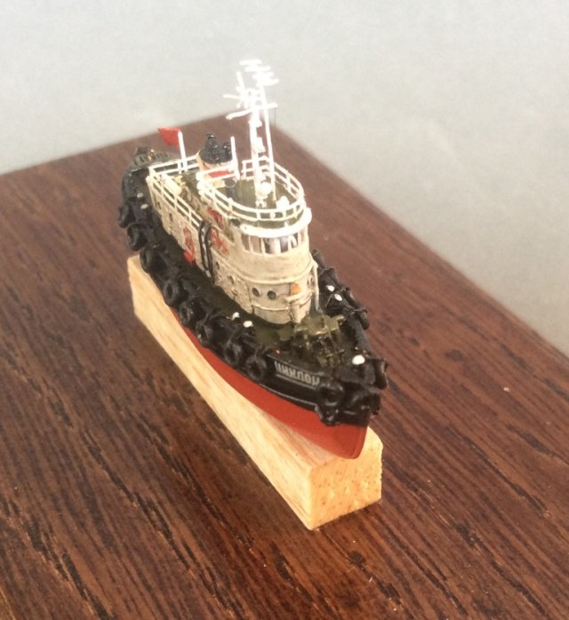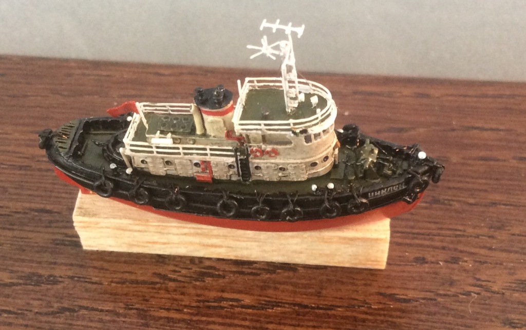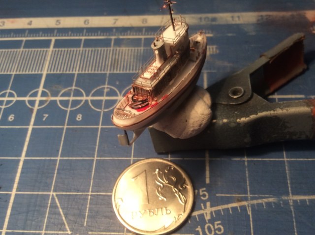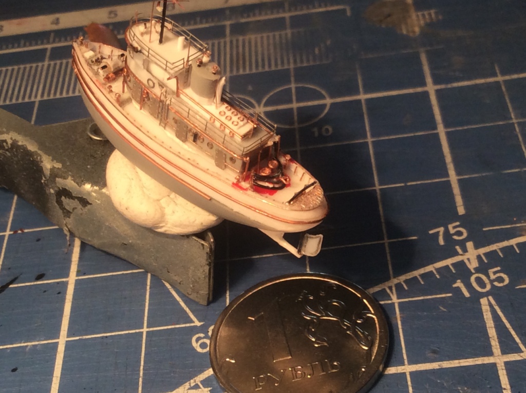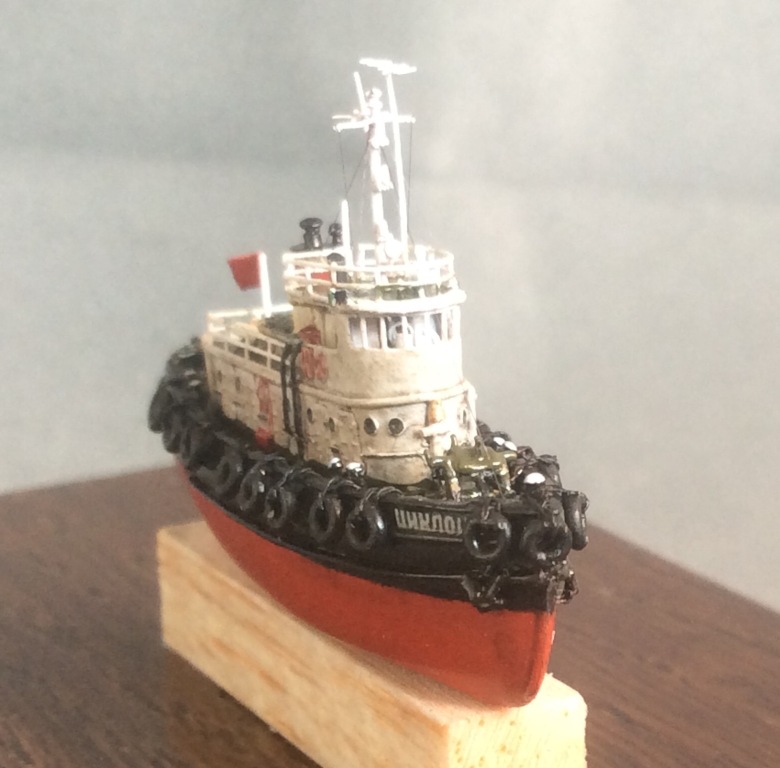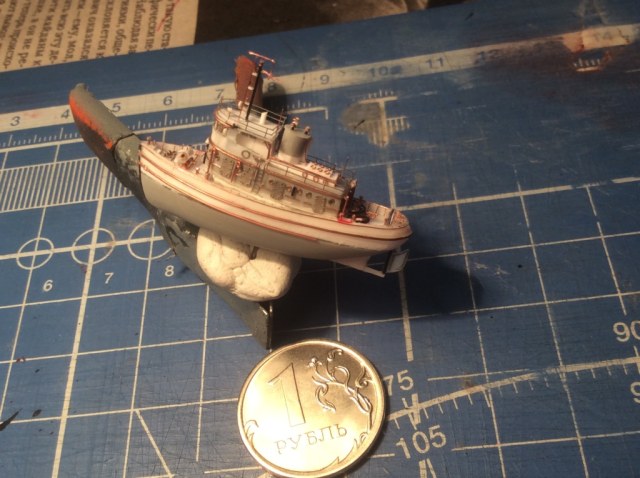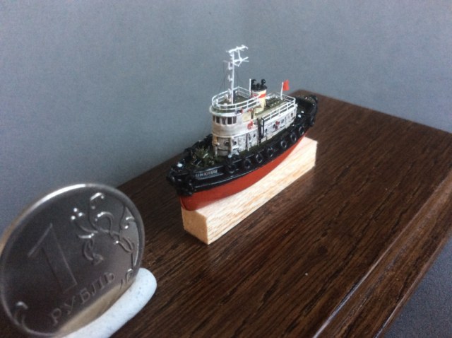 Вроде все перечислил. Да,пока подставка до ума не доведена. Деревяшка,на которой корпус буксира стоит-рабочая и после прибытия со стажировки я постараюсь Ее заменить на что-то приятнее.