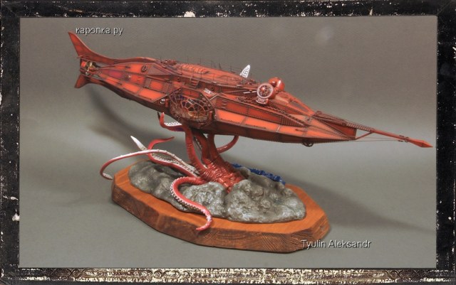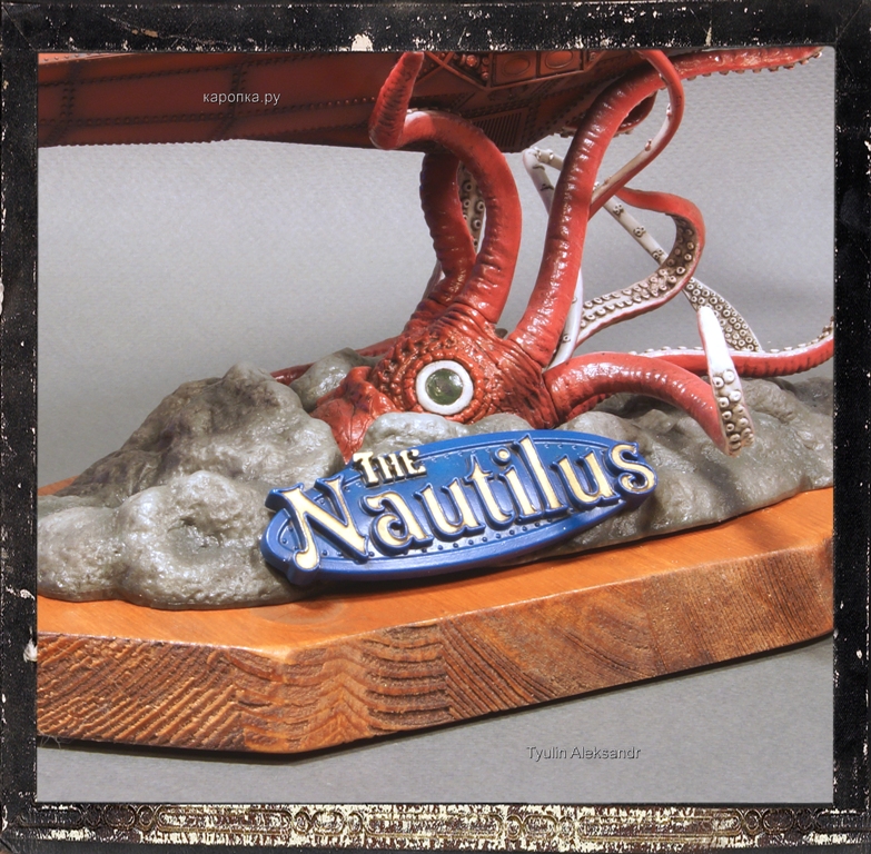Основание и гигантский спрут изготовлен из эластичного полимера, при последующий тонировки основание выгнуло дугой, к подставке пришлось крепить саморезами.