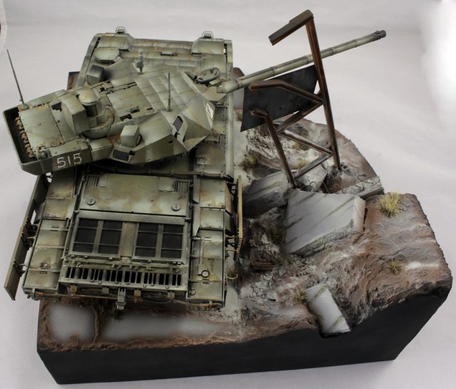 Смотрится очень круто, прямо кадр из фантастического фильма или скриншот из какого-нибудь Battlefield. Облезлость и "полинялость" танка может и несколько чрезмерны но здесь выглядят весьма уместно и добавляют атмосферы.