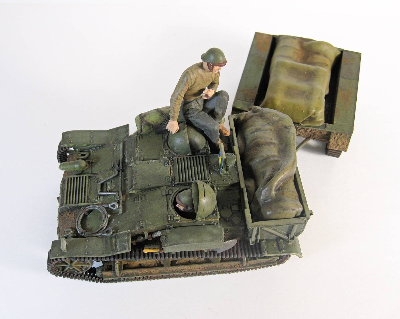 Здравствуйте. Вот после долгого перерыва, решил смастерить нечто ездящее. На антресолях есть еще коробочки. Выбрал эту. К ней добавил травленки от Voyager PE35227, мехвод - обрубок из коробки, второй номер - конверсированный MiniArtовский танкист. Головы у обоих заменены на Hornetовские.