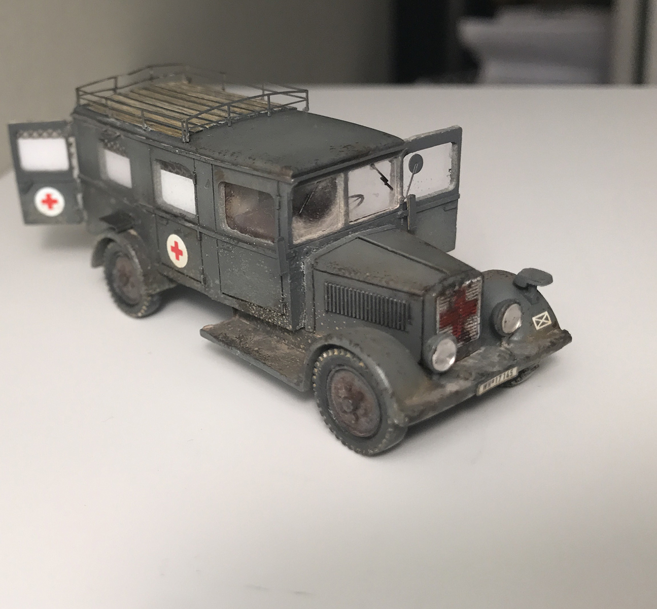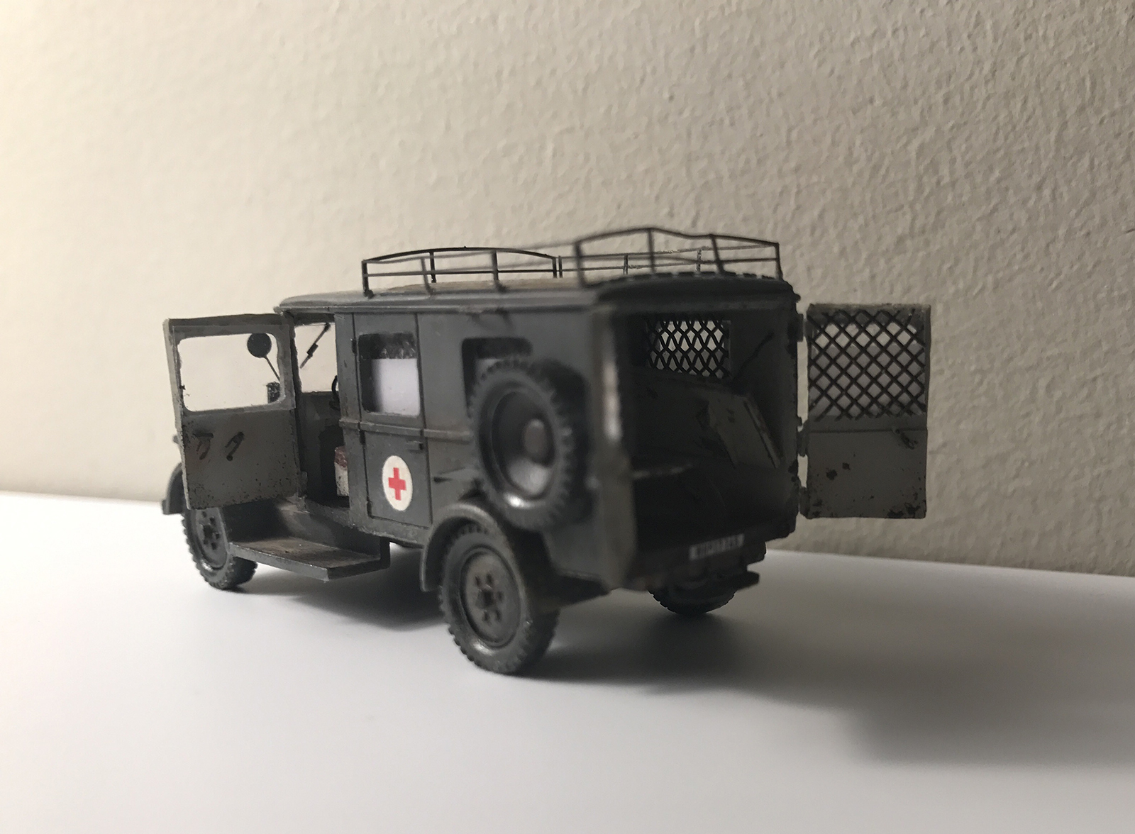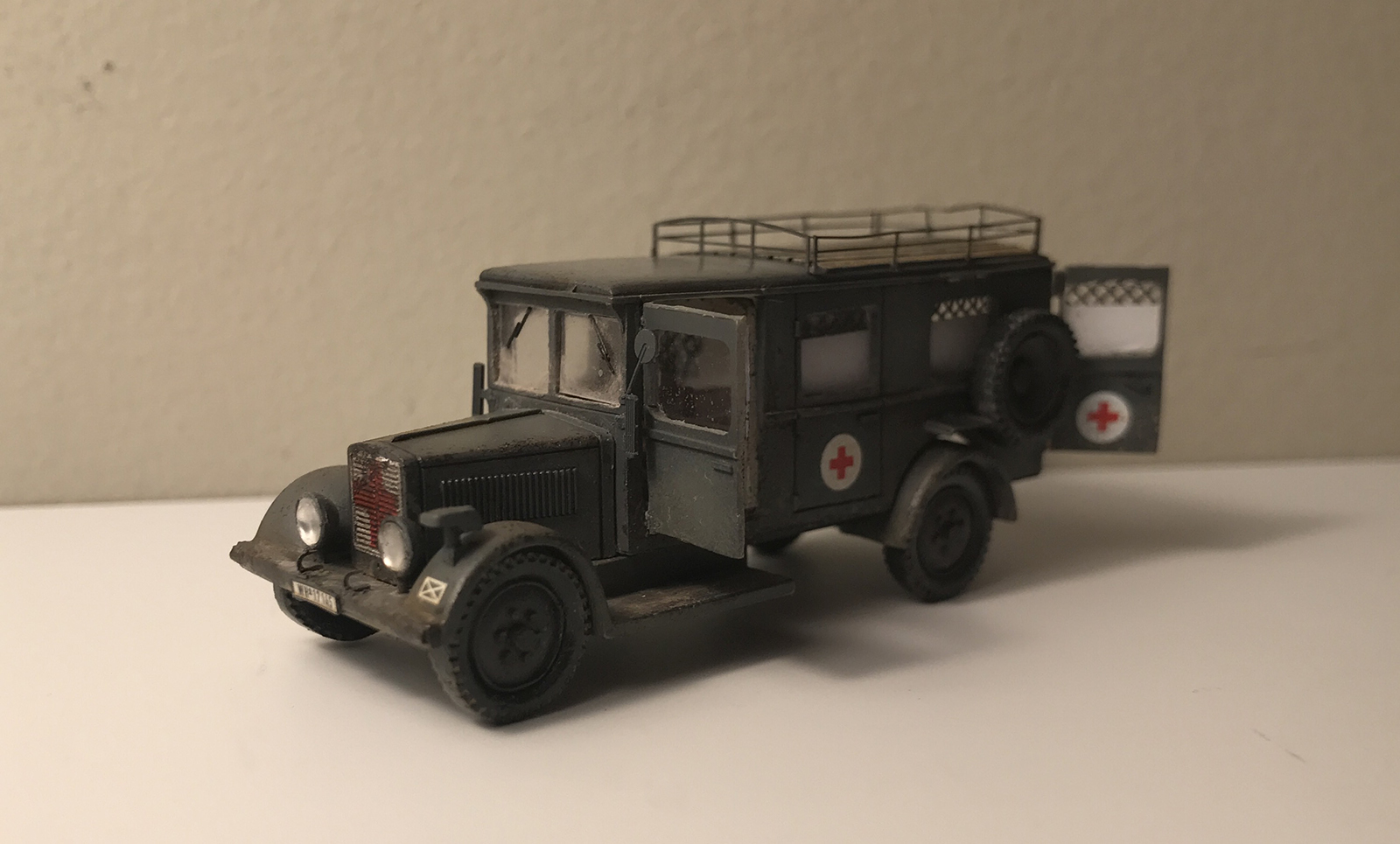 Простенькая модель легкого грузовика Phanomen Granit 25 из смолы от Hauler, в армейском медицинском-эвакуационном варианте. Доделывал по мелочам, открывал двери, сделал всю внутрянку, старался по фотографиям, может где-то в масштаб не попал. Красил тамией, грязь от mig