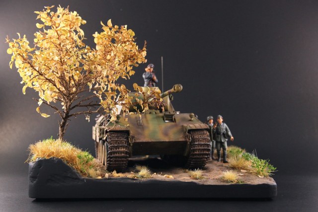 Очень красиво получилось-прям ляпота.Понимая,что не всё можно сделать идеально-обратил внимание на переразмереные листья по отношению к танку.Матчасть на диорамном исполнении-думаю не самое важное требование.Целостность композиции и качество-вызывают восторг и уважение-работа-на 5 баллов.