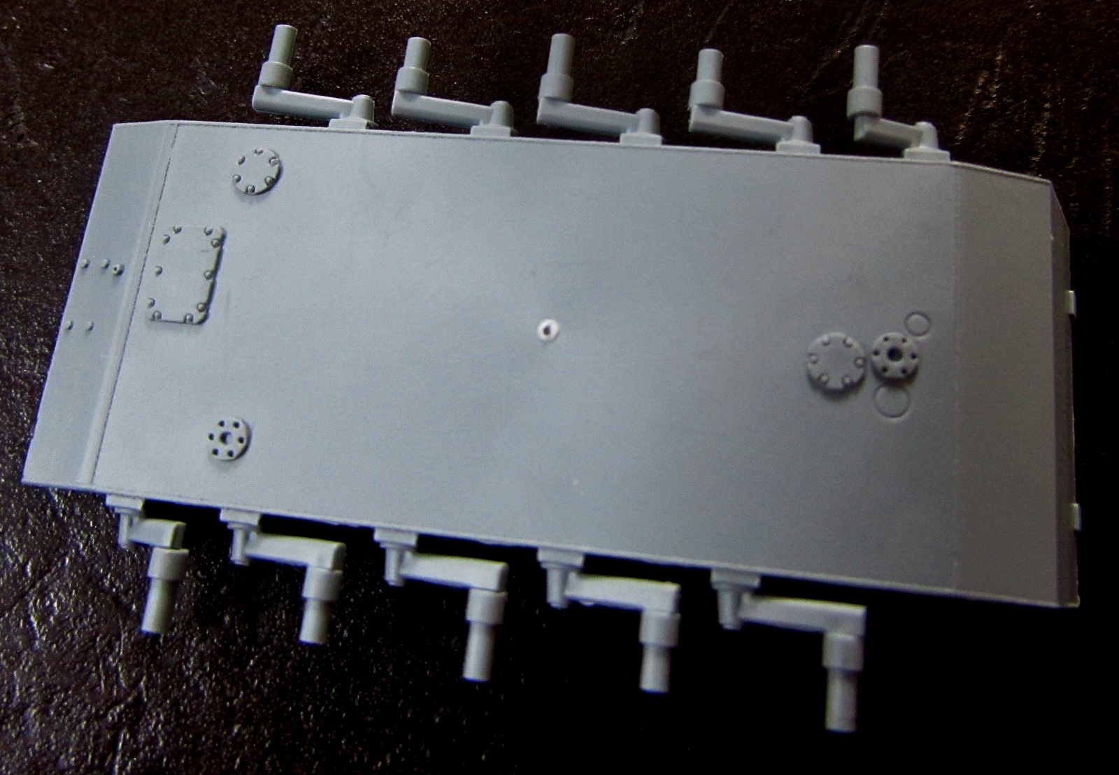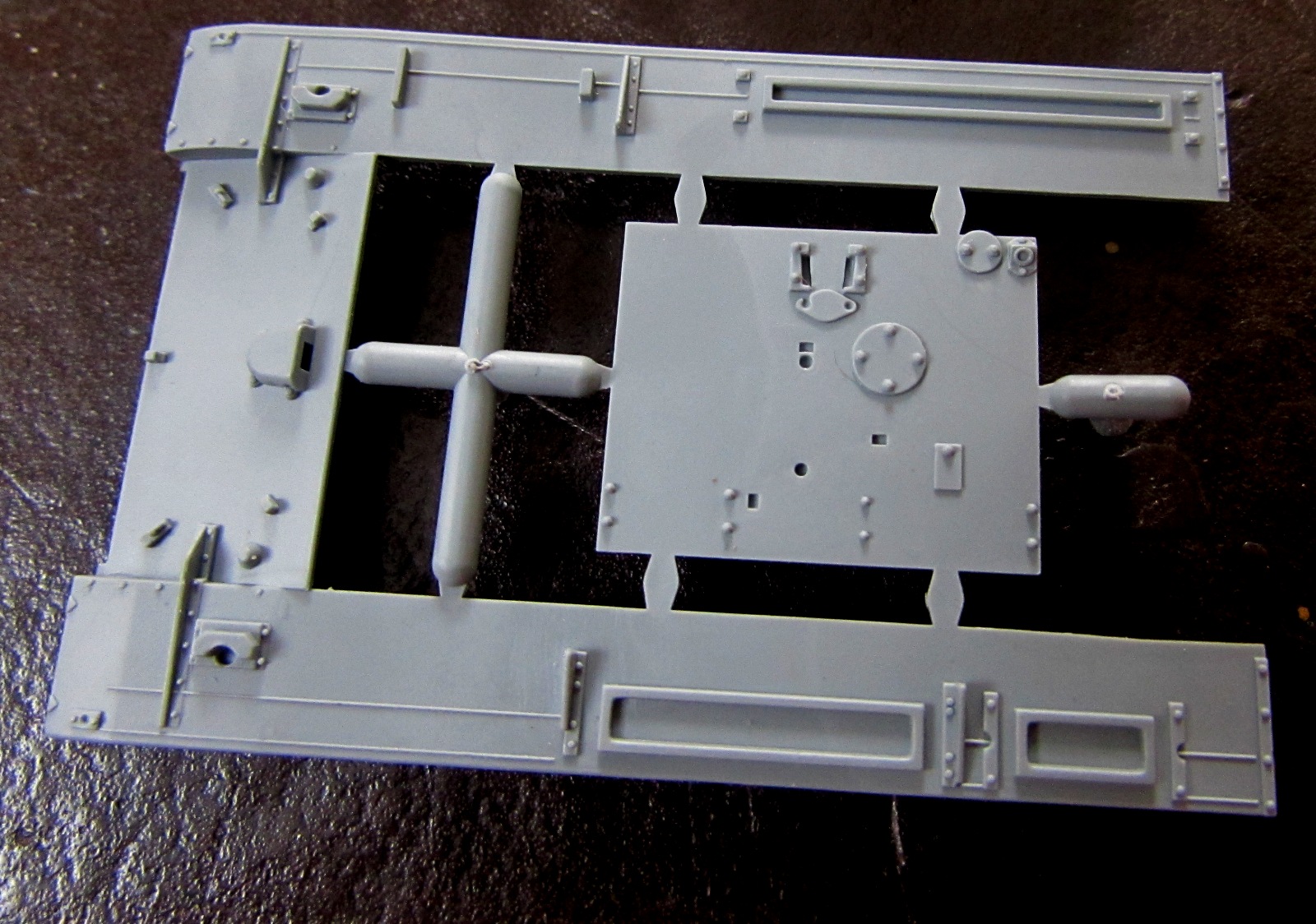 Травления прилично - здесь и пазы для канистр, и "метелка" для антенны (впрочем, лентяи могут собрать и из пластика), и крепления под гранатометы, и прочая лабуда, большую часть которой можно спокойно задвинуть (уж с таким-то качеством можно было и в пластике эти детали продублировать, как антенну).