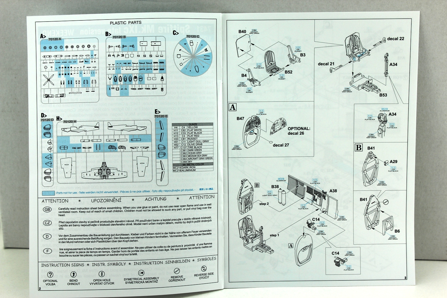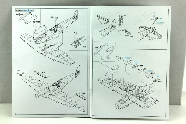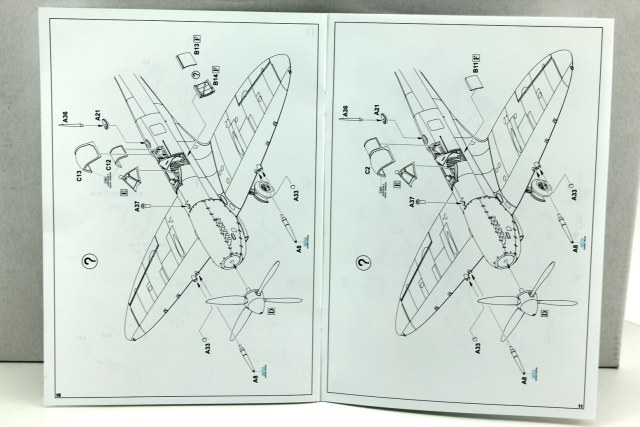 За исключением литника с фюзеляжем и крылом, остальные литники - универсальные. В инструкции видно, как много деталей не используется. И это радует, оставшиеся можно будет использовать для сборки "Спитов" других производителей. Даны даже бомбодержатели и сами бомбы, чего нет практически ни у одного производителя. Еще бы пивные бочонки, был бы полный комплект.