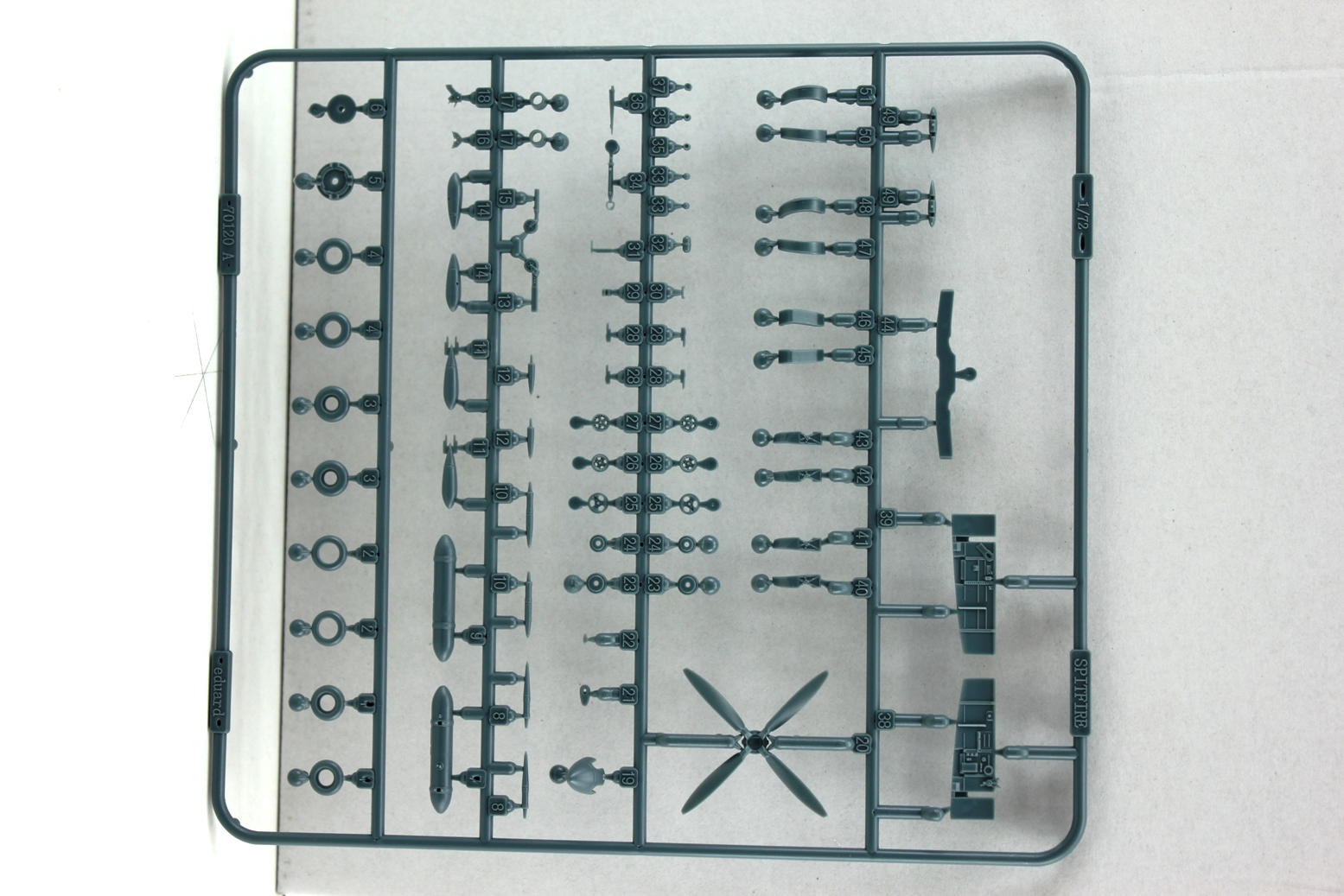 Отличие в плате травления и масках. Ну, и декаль на большее количество вариантов. Декалей с интересными вариантами у меня хватит еще на десяток "Спитов", красивое травление в кабине почти и не видно. В шкафу одна полка заставлена только "Спитфайрами", чтобы закрыть всю линейку, надо собрать еще штук восемь.