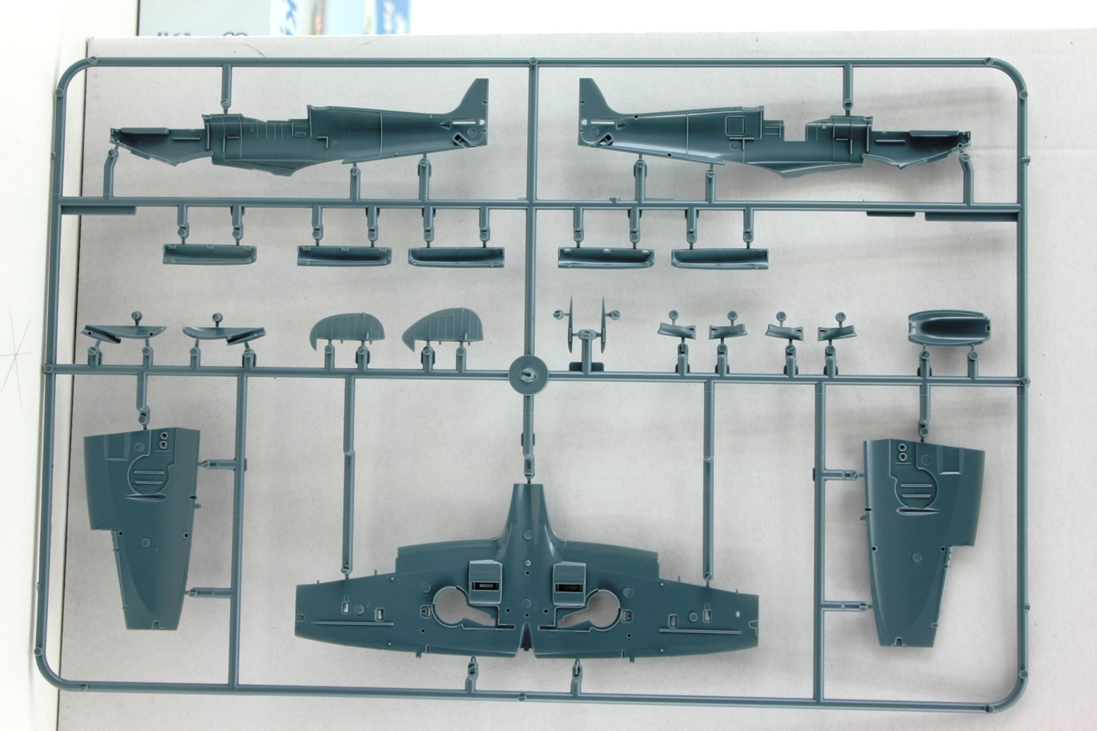 Итак, начнем: коробка. Она большая . Очень большая, болье подходящая к 48-му или даже 32-му масштабу. Литники внутри выглядят не то, чтобы сиротливо, но как-то неубедительно.