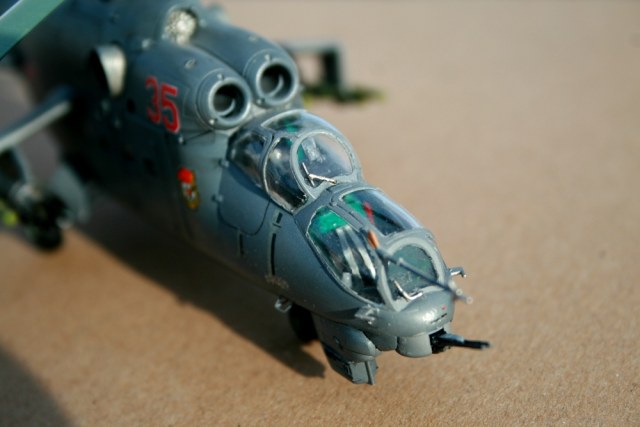 Почти на всех Ми-24ВП присутствует обтекатель в корне пушки.