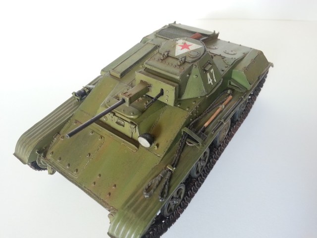 Трос конечно надо заменить - вообще ни на что не похож. По матчасти: выштамповки (ребра жесткости) на надгусеничных полках должны быть не выпуклыми, а вогнутыми вниз; пулеотбойник перед люком мехвода не имел скошенных углов (в т.ч. и на экранированных танках) и угол сгиба у него больше 90 градусов; немного длинноват ввод для кривого стартера (может на фото так кажется). А в целом очень симпатичный Т-60 получился.