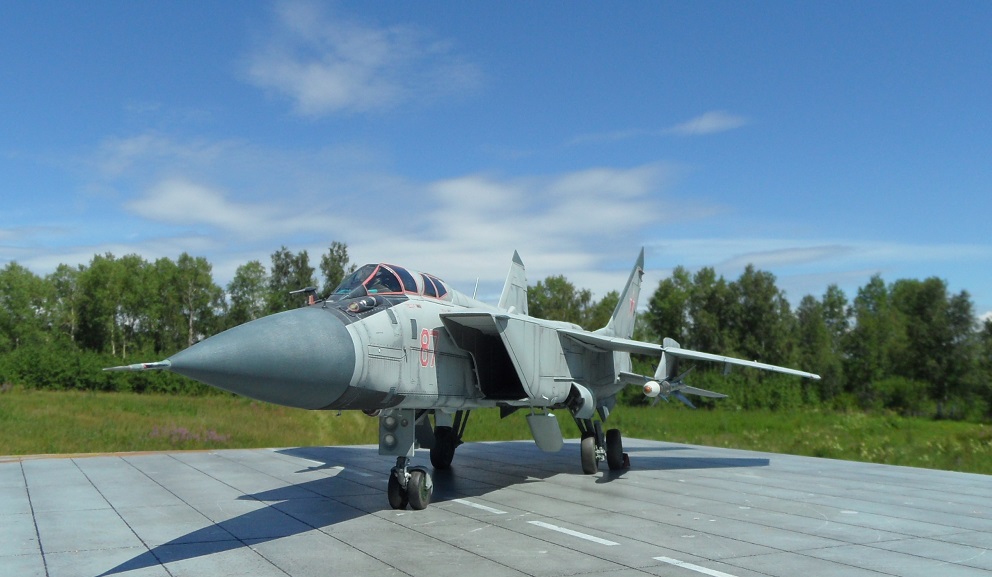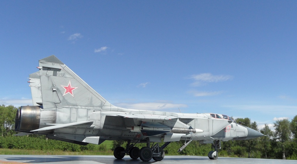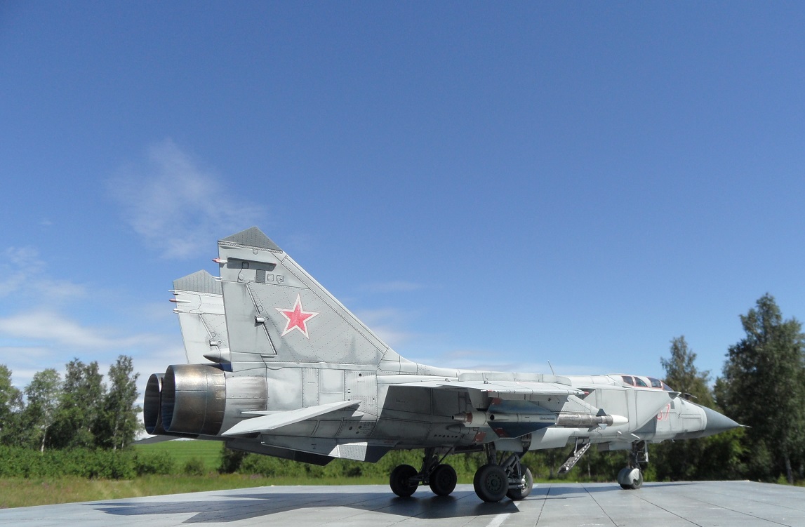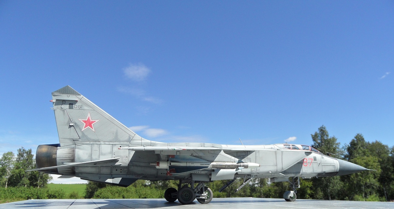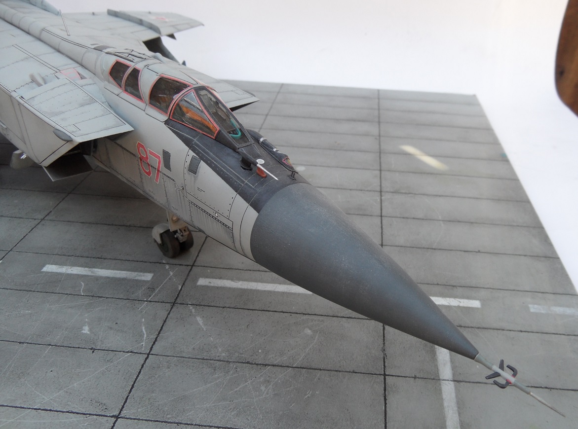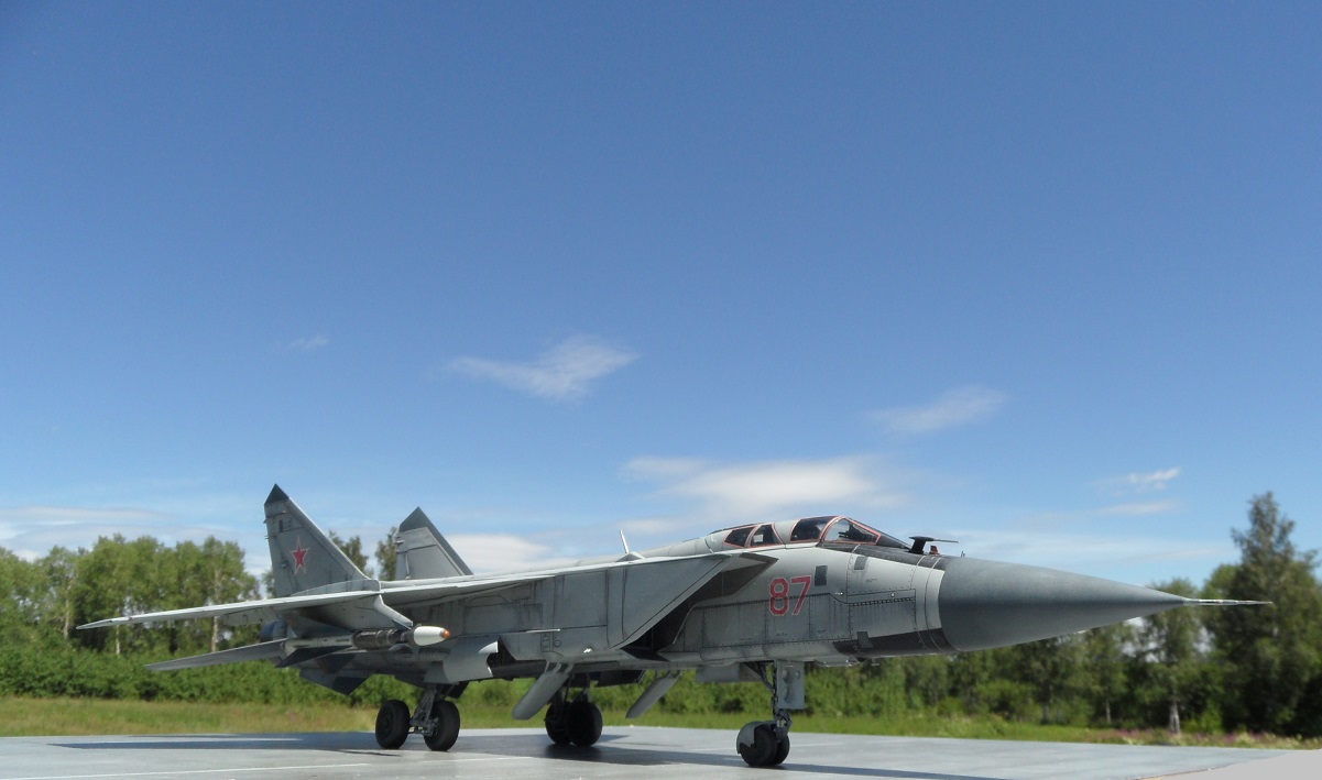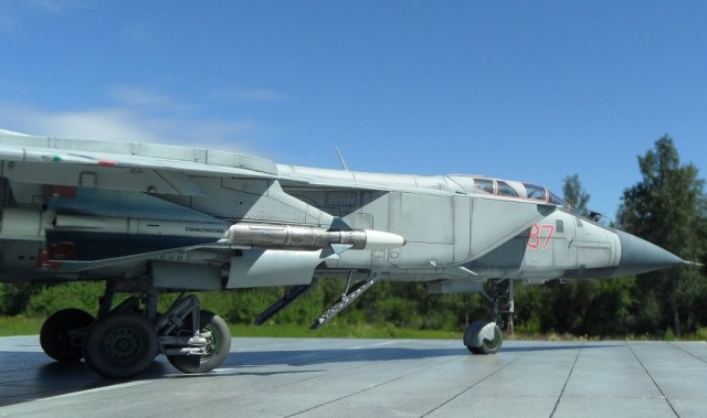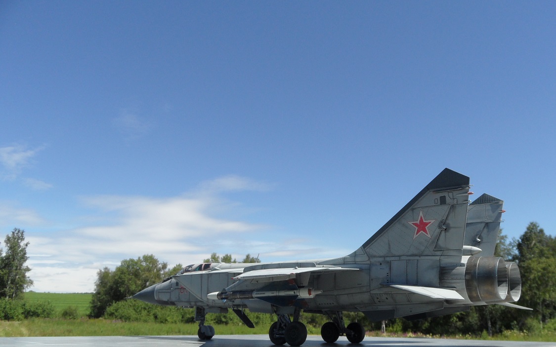 Привет всем! Представляю вам свое видение самолета Миг 31 в 48 масштабе от фирмы АМК. Модель просто потрясная, лучше ничего я не собирал, чудо а не модель ! Сборка ,детализация , качество просто супер! Этот набор примечателен тем что даны деколями герметик фонаря, два вида остекления( белое и желтое) я использовал желтое, платой фототравления(ремни, радар нчф, и антенки). Из доработок пришлось прорезать расшивку на фонаре чтоб обозначить ее откидные части( глухое остекление почему то не имеет прорезей), а так как я не люблю открытые кабины то пришлось резать, кое где добавил клепку, антенки , теплопеленгатор АМК почему то дает в выпущеном положении, пришлось малость переделать крепеж,проводку добавил-в общем по мелочи, модель самодостаточна и позволяет собрать из коробки детализированный самолетик. Проработка воздухозаборников, сопел поражает , жаль на фото не покажеш но на полочке всегда есть возможность рассмотреть, и кабину и ниши и сопла). В общем доволен очень , работать над данным самолетом одно удовольствие. Окрашена Мотип серый из баллона, тонирована пигментом серый тамия, сопла тамиевская пудреница. Герметик накрашивал сам кисточкой. Приятного просмотра! Саня AkaR спасибо тебе за фотки , я их тогда все сохранил и они мне опять пригодились!