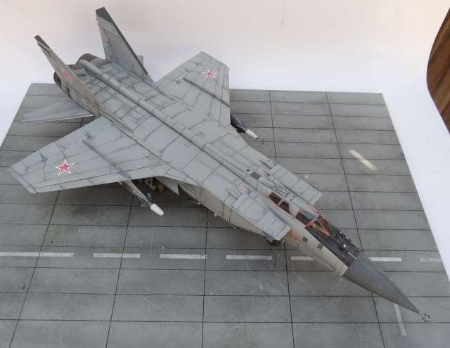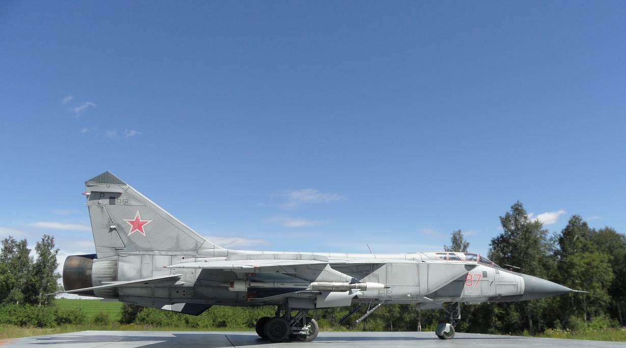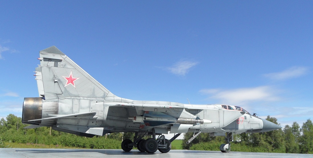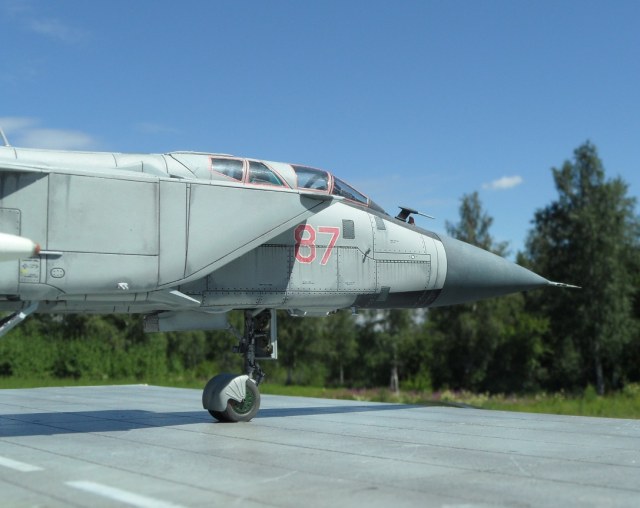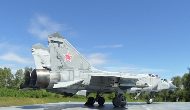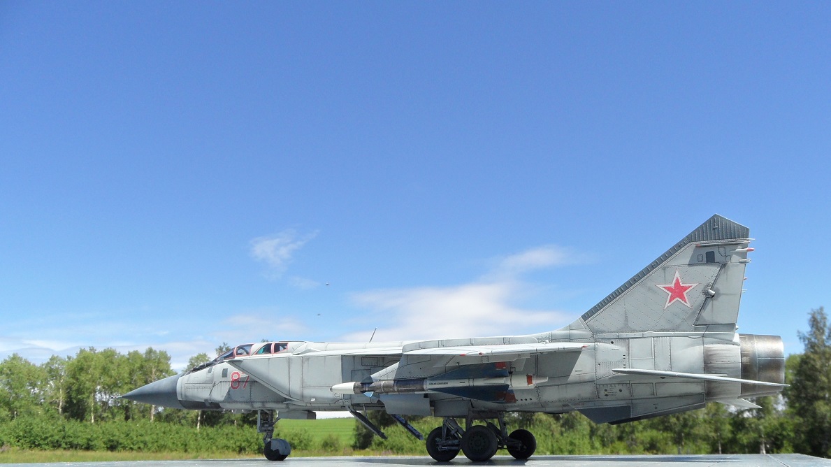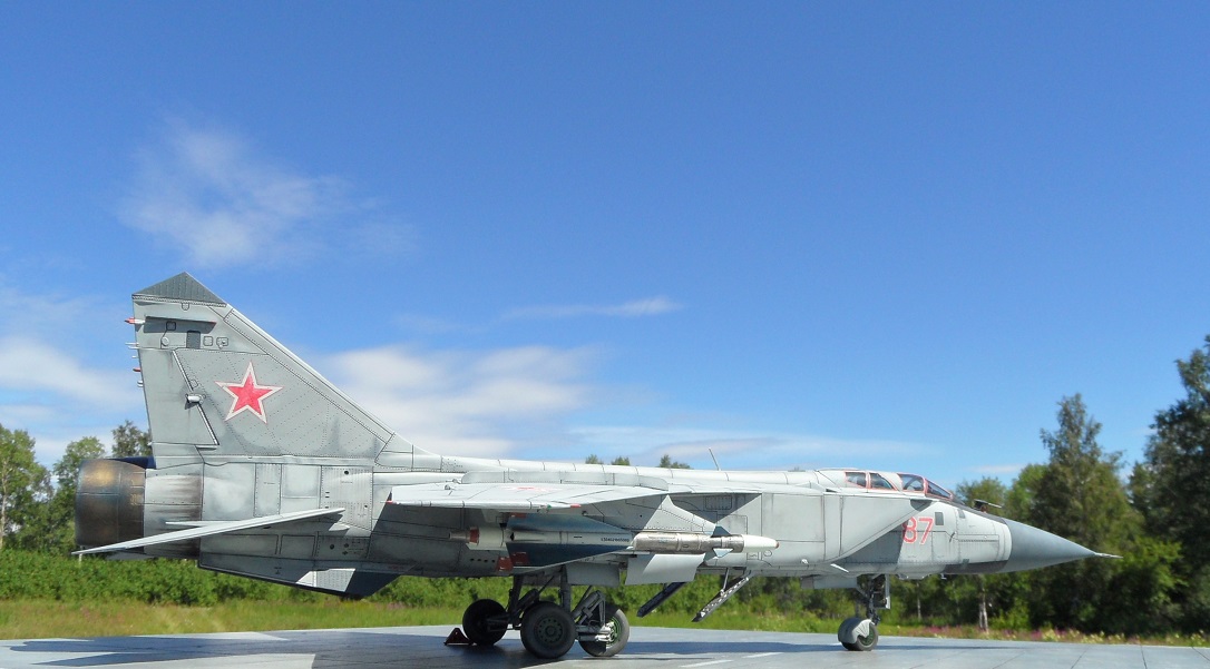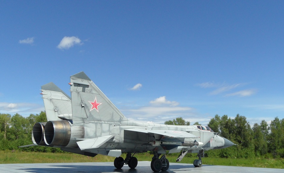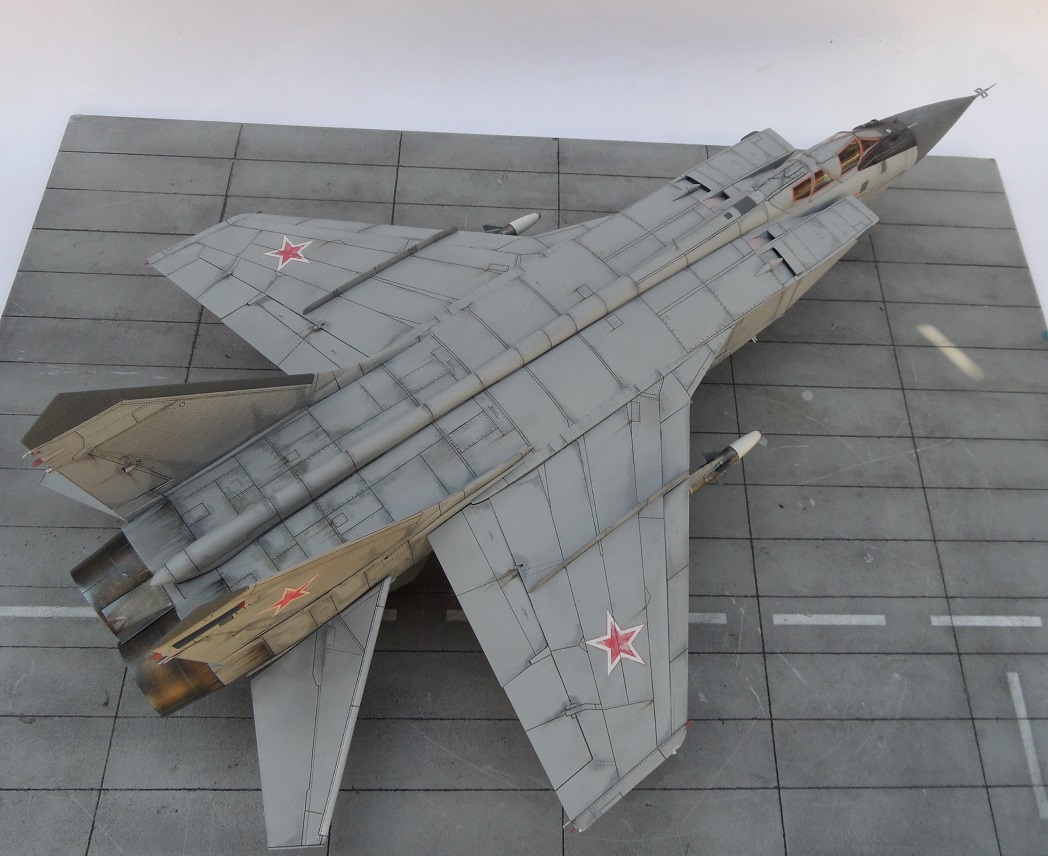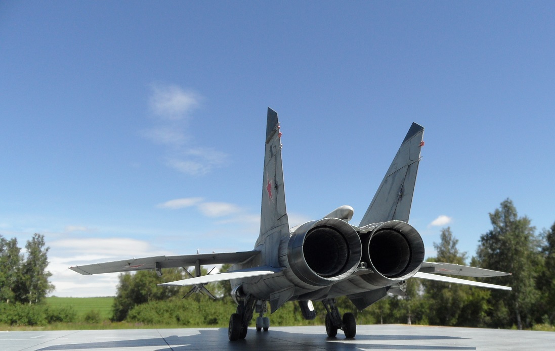 Привет всем! Представляю вам свое видение самолета Миг 31 в 48 масштабе от фирмы АМК. Модель просто потрясная, лучше ничего я не собирал, чудо а не модель ! Сборка ,детализация , качество просто супер! Этот набор примечателен тем что даны деколями герметик фонаря, два вида остекления( белое и желтое) я использовал желтое, платой фототравления(ремни, радар нчф, и антенки). Из доработок пришлось прорезать расшивку на фонаре чтоб обозначить ее откидные части( глухое остекление почему то не имеет прорезей), а так как я не люблю открытые кабины то пришлось резать, кое где добавил клепку, антенки , теплопеленгатор АМК почему то дает в выпущеном положении, пришлось малость переделать крепеж,проводку добавил-в общем по мелочи, модель самодостаточна и позволяет собрать из коробки детализированный самолетик. Проработка воздухозаборников, сопел поражает , жаль на фото не покажеш но на полочке всегда есть возможность рассмотреть, и кабину и ниши и сопла). В общем доволен очень , работать над данным самолетом одно удовольствие. Окрашена Мотип серый из баллона, тонирована пигментом серый тамия, сопла тамиевская пудреница. Герметик накрашивал сам кисточкой. Приятного просмотра! Саня AkaR спасибо тебе за фотки , я их тогда все сохранил и они мне опять пригодились!