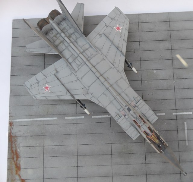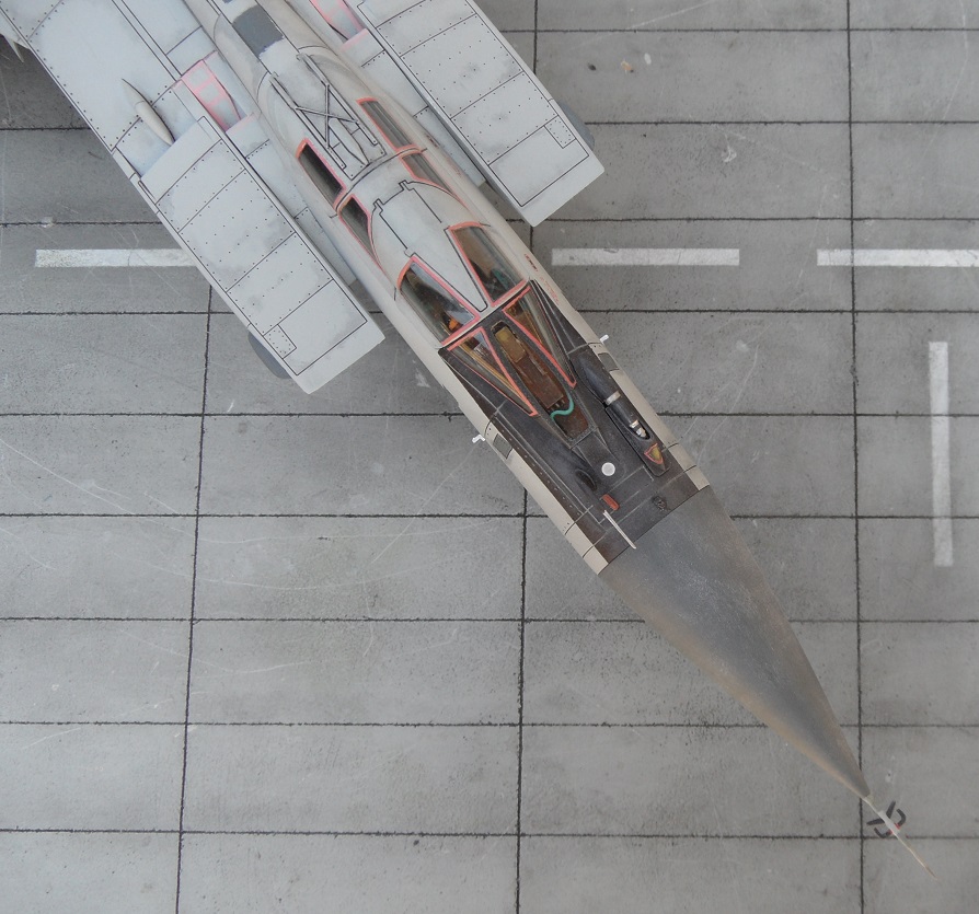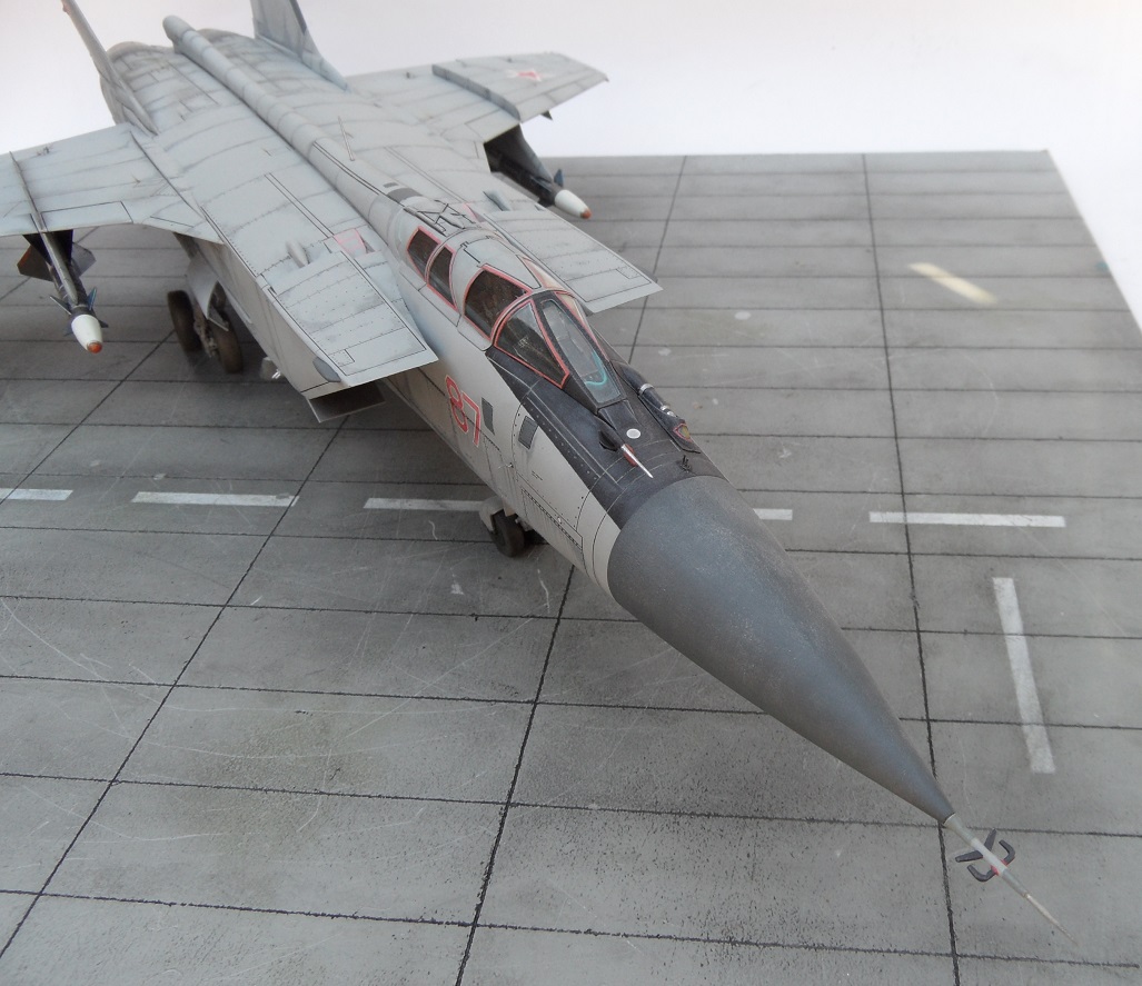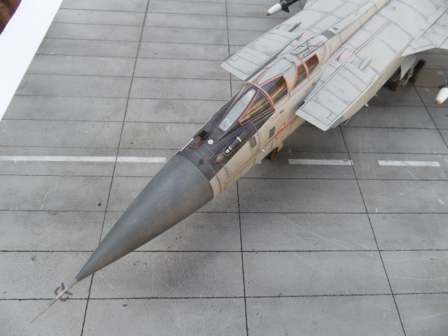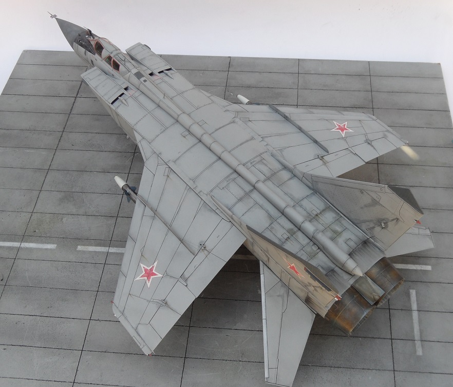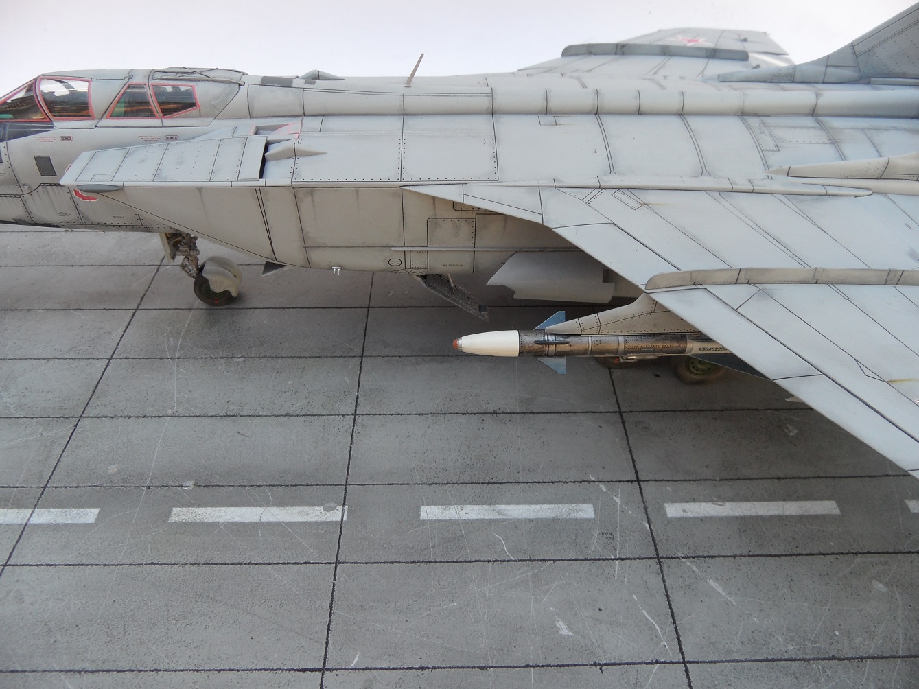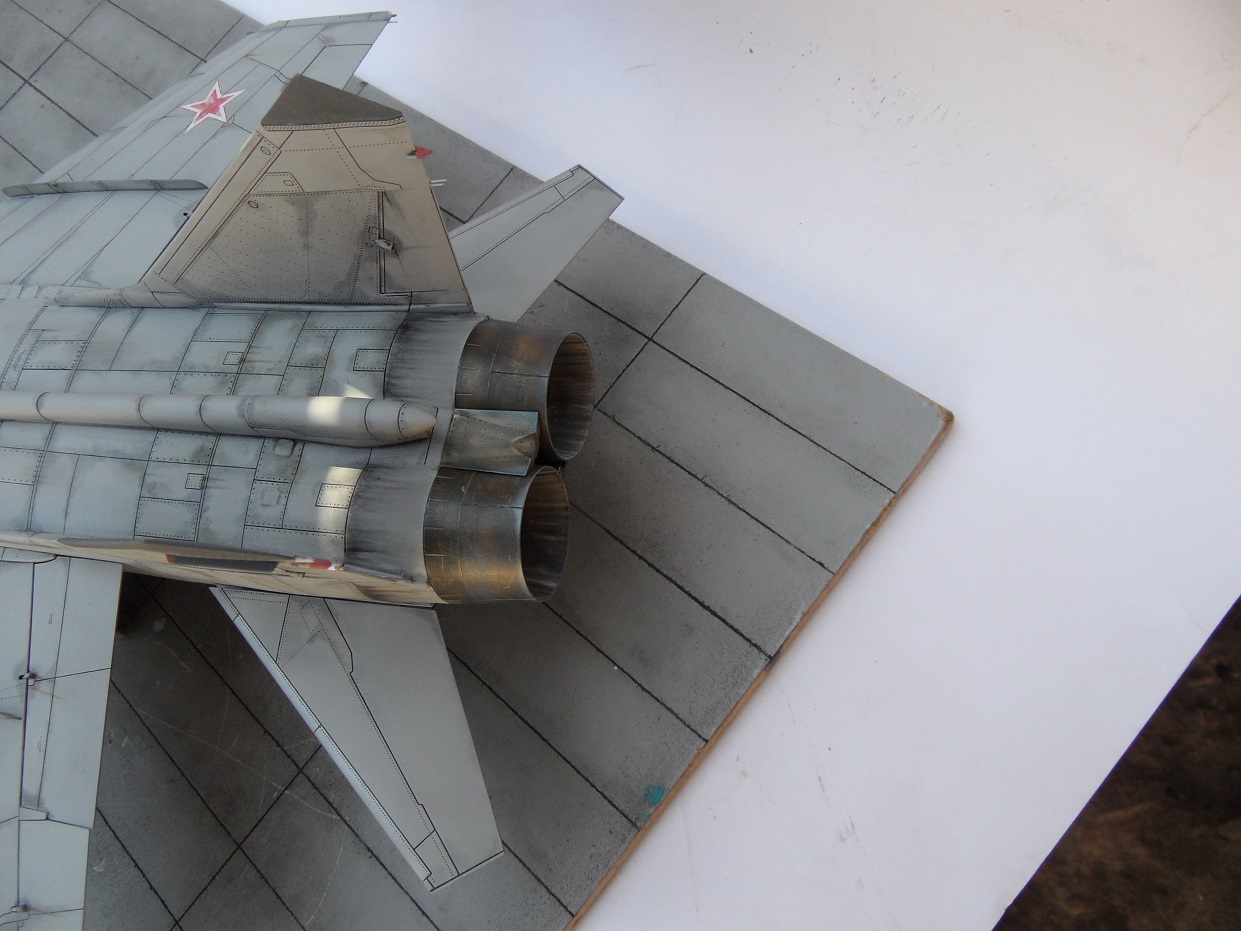 . Лежит такой же аппарат в коробке. открою, вздохну, закрою, уйду...). А Р-33 вешать планируешь? Все-таки они основное вооружение, а не крыльевые. 31й с 33ми без 40-ок или 60ток бывает. наоборот нет. Хотя нет, вру, бывает (не на БД), склероз, сам так стрелял на сборах в Угловке по САБам. Добавь вытертость верхней кромки левого воздухозаборника до грунта с металлом(при общей затертости борта штурман и техник его ботинками полируют до блеска. "основная дорога" на самолет). доведи сухой кистью. Добавлю фото "хвоста" Р-40ТД вместо комментария.