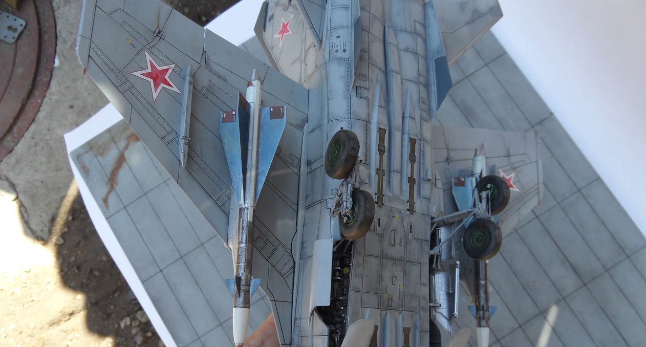 Саша спасибо за комментарий, очень ждал, все понял, Р-33 вешать честно не планировал, они под пузом не особо видны,потом Р 40 прикрепил, фото хвоста у сороковых судя по фото я неправильно покрасил, переделаю на зеленый. Блин хотел же еще тебе написать по ракетам, но все спешка. Воздухозаборник подстарю).