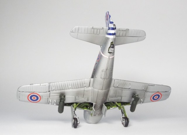 Тоже планирую собрать тайца. Вообще много непоняток с окраской данного борта. В статье, ссылка на которую есть на Вашей стройке, приводится такая фраза: "A RTAF Bearcat during a 1955 exercise. By this time, some were being repainted in air superiority grey."