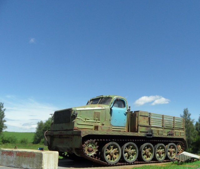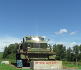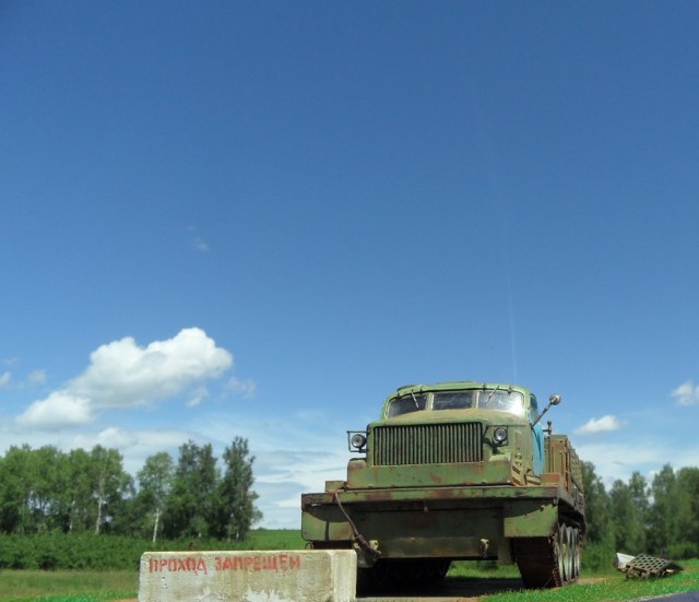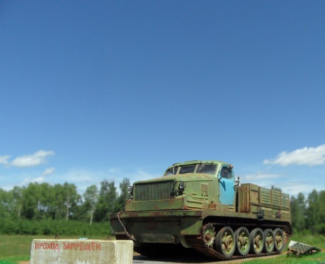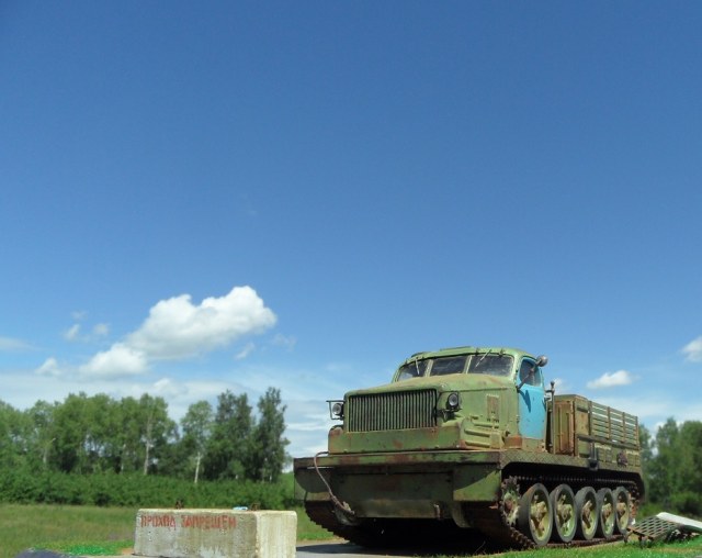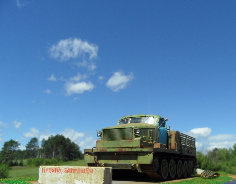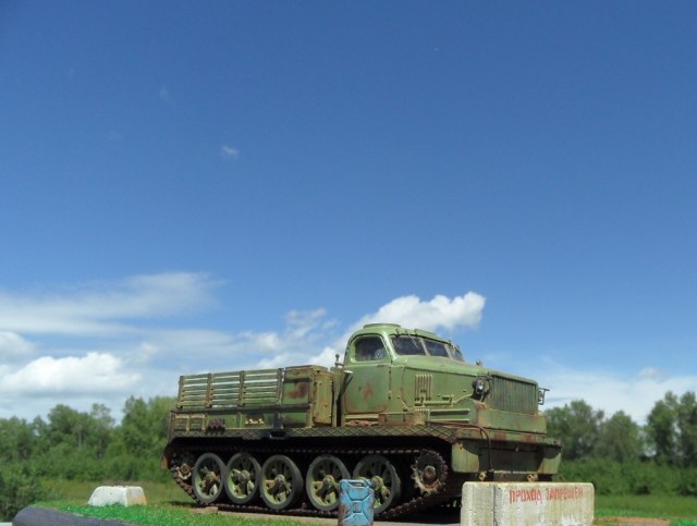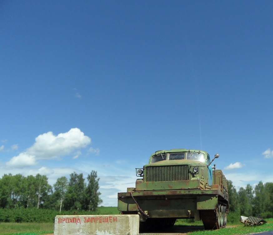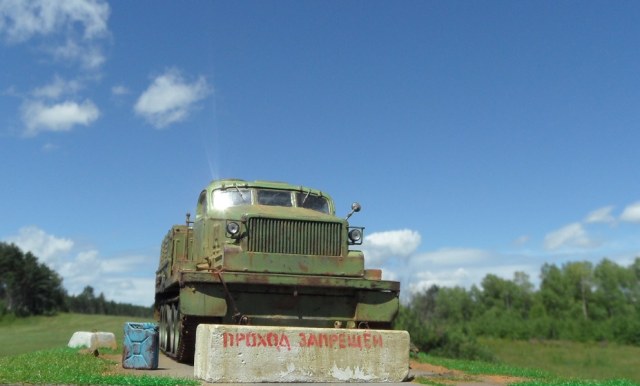 По-моему бетонный блок тут совершенно лишний! Сама внешность тягача говорит, что тут "враг не пройдёт". :-))