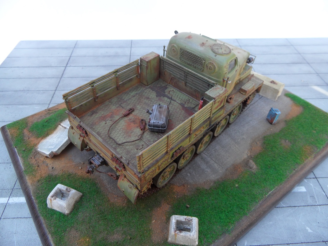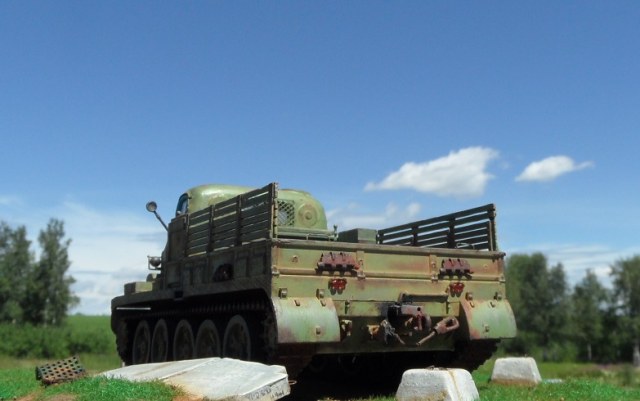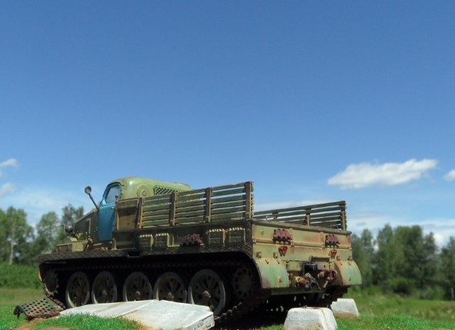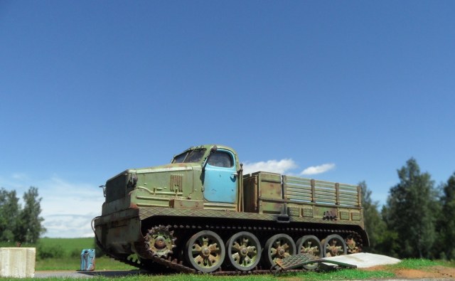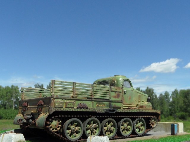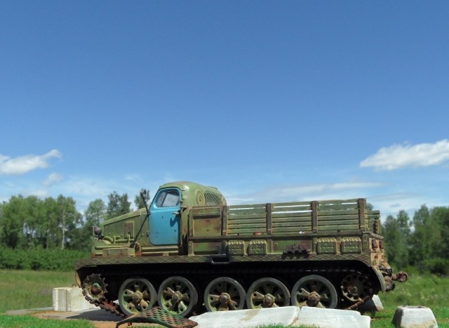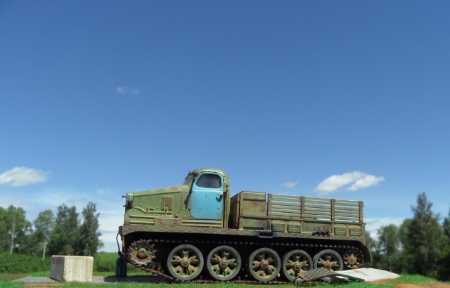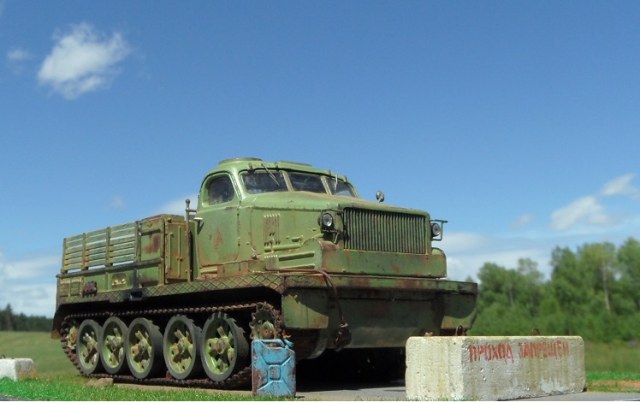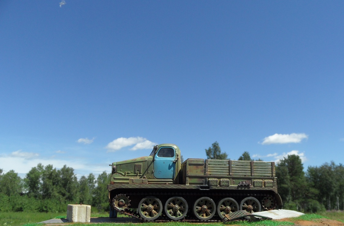 Привет всем! Еще одна моделька от AVD Models- Тягач АТ-Т. Очень ждал я выхода этого монстра, машина брутальная, даже Маз 537 не так смотрится. Сама модель изготовлена по традиции АВД, кабина металл, остальное пластик, гусеницы -резиноподобные, травленые дворники, металлическая защита фар. Собиралась модель отлично, стыковка на 5. у AVD Models это традиционно. От себя поменял тросы на металл, больше ничего не дорабатывал. Приятного просмотра!