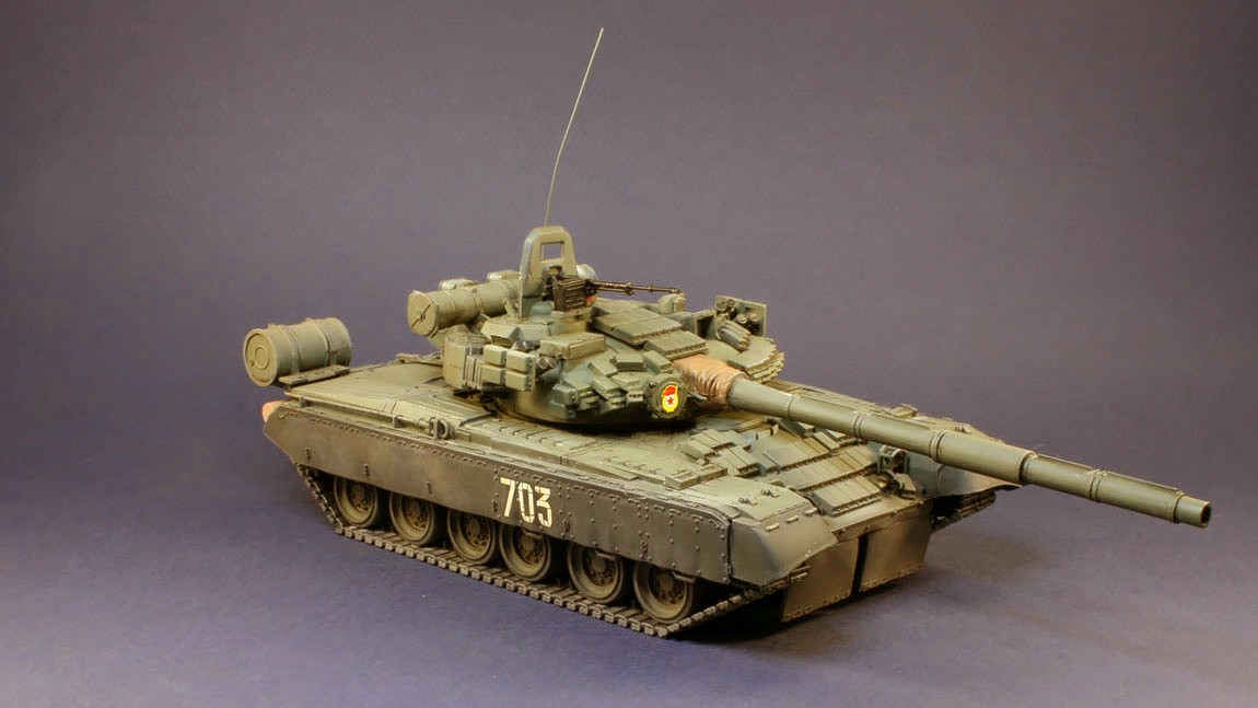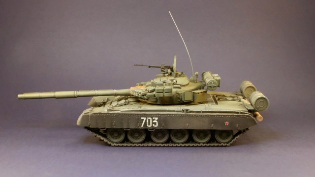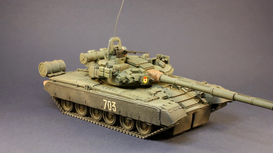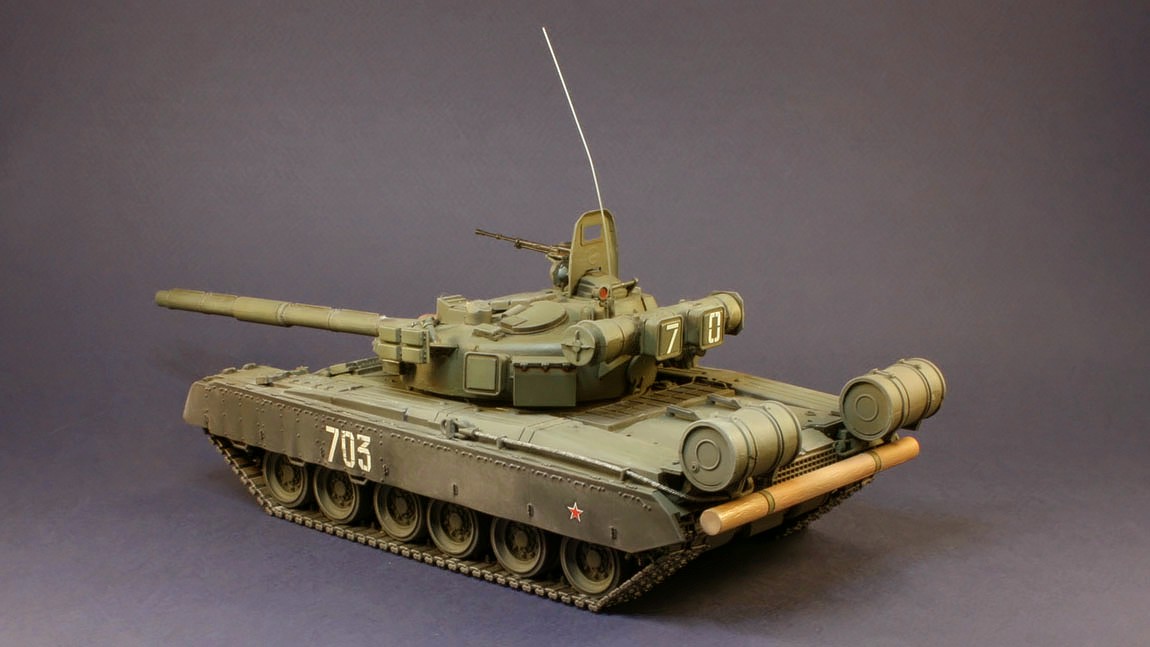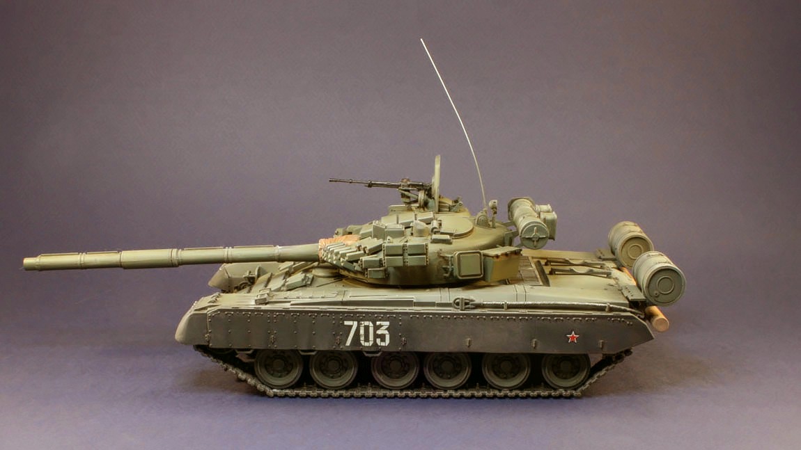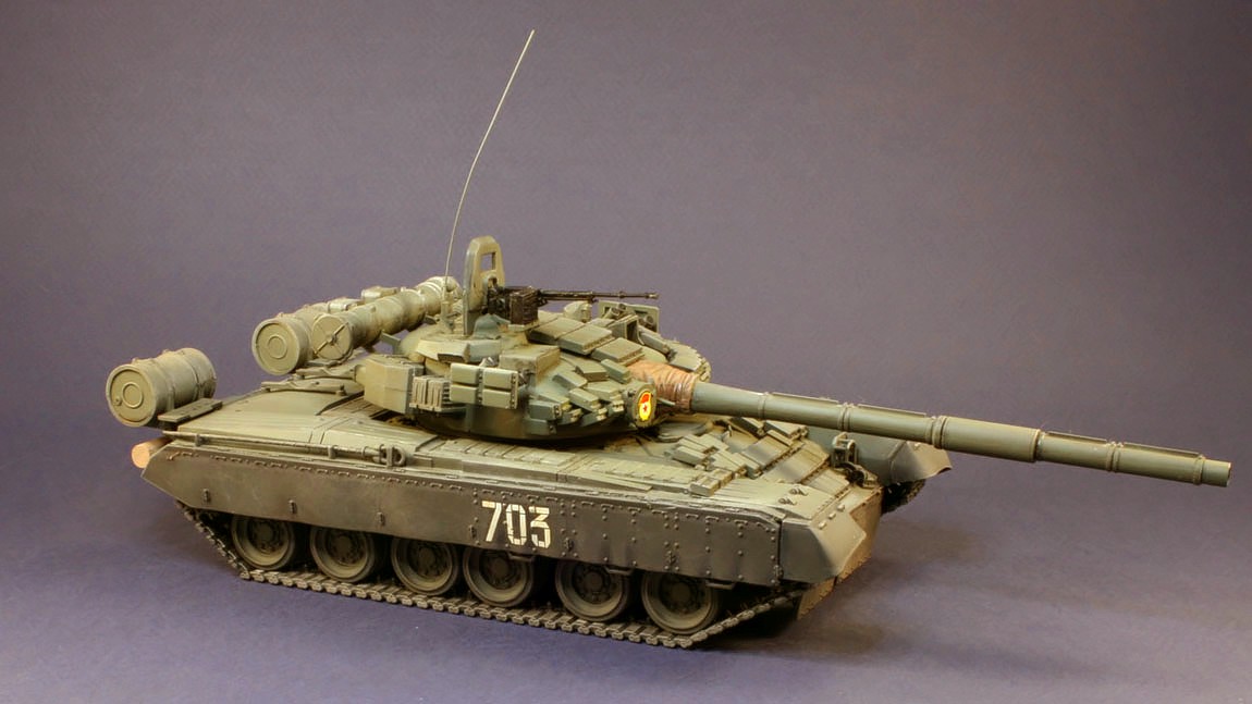 Танк Т-80УД поступил на вооружение в 1987 г. На нем установили динамическую защиту и дизельный двигатель. Новый комплекс ракетного вооружения 9К119 \"Рефлекс\" с наведением ракет по лазерному лучу позволяет запускать их во время движения танка на любых скоростях. Улучшены возможности ведения как дальнего, так и ближнего огневого боя. Масса танка Т-80УД возросла до 46 т, но превосходные динамические качества сохранились.