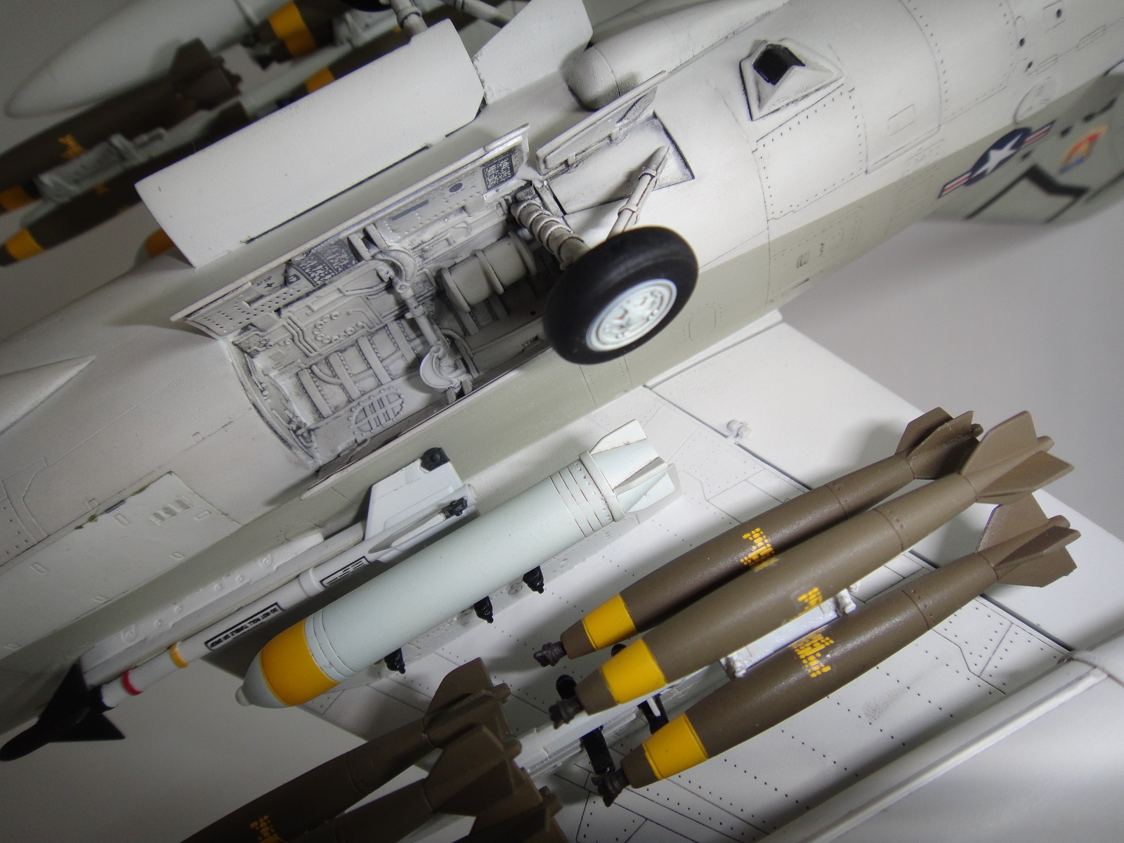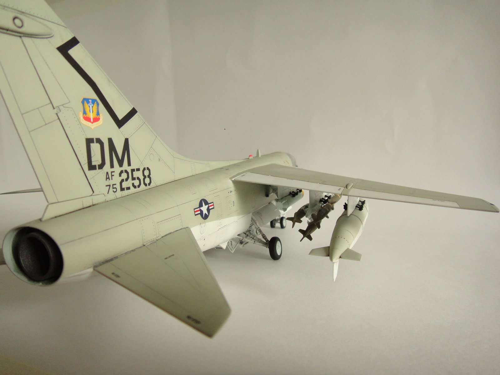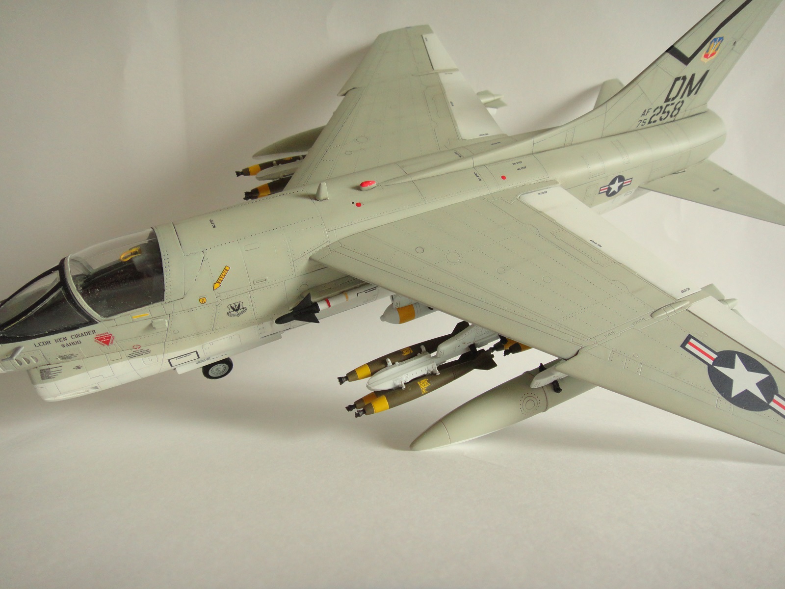 В процессе постройки не использовались дополнения. Окраска Мр.Хобби, смывка МИГ. Масляные точки сделал,но не сильно грязнил сам самолет. Декали половина из коробки, остальное просто придумка. Прототипа не было, отовсюду понемногу. Просто не понравилась коробочная модель по декалям. Сверху матовый лак.