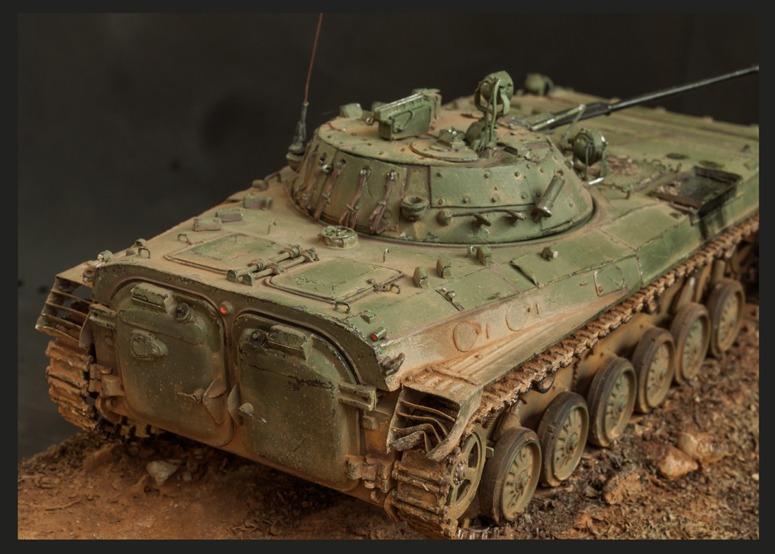 Если вкратце, поменял положение верхних люков десантного отсека, переделал дверь-баки полностью, правда петли не стал, направляющие аппараты заменил на жесть, заслонки амбразур переделал, убрал лишнюю, кое-где добавил сварные швы, полностью перепилил башню и надбой на ней, переделал узлы креплений осветительных приборов, смотровые приборы и колпаки прицелов, попытался сделать защитную крышку 1П3-3, переделал люк доступа к фильтру-поглотителю, переделал сетки над жалюзи их рамки, полностью заменил эжектор, переделал болты на панели вокруг них, убрал дыру под крыльями так как решил делать без них, ну и может чего забыл еще.