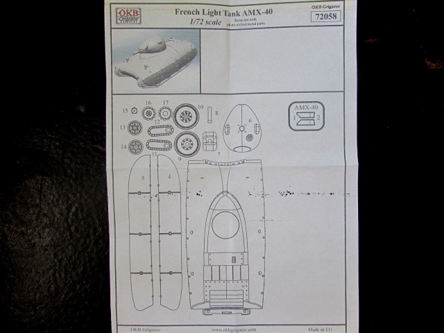 Модель упакована в стандартную для смолы небольшую коробочку. Загрузка - вертикальная. Внутри - несколько запечатанных пакетиков с деталями для сборки модели, набор фототравления и краткая инструкция.